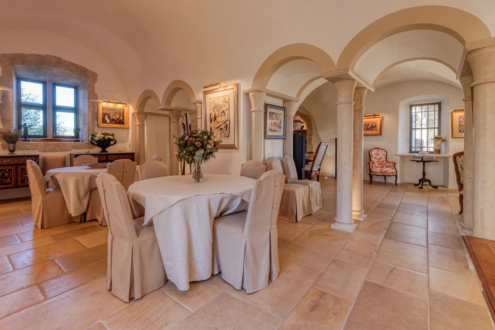 La commanderie, située à 1h de l’aéroport de Marseille, jouit d’une position dominante et d’une vue spectaculaire. L’habitation principale est chargée d’histoire et comporte plusieurs salons voutés. La maison compte 9 chambres dont deux sont aménagées dans une chapelle et une tour de guet, ce qui leur donne un caractère unique. Nous trouvons également une grotte transformée en cave a vin, une maison de gardien, une magnifique piscine surplombant le paysage et un large terrain paysagé complanté d’oliviers. L’authenticité et le charme de la Provence réunis.