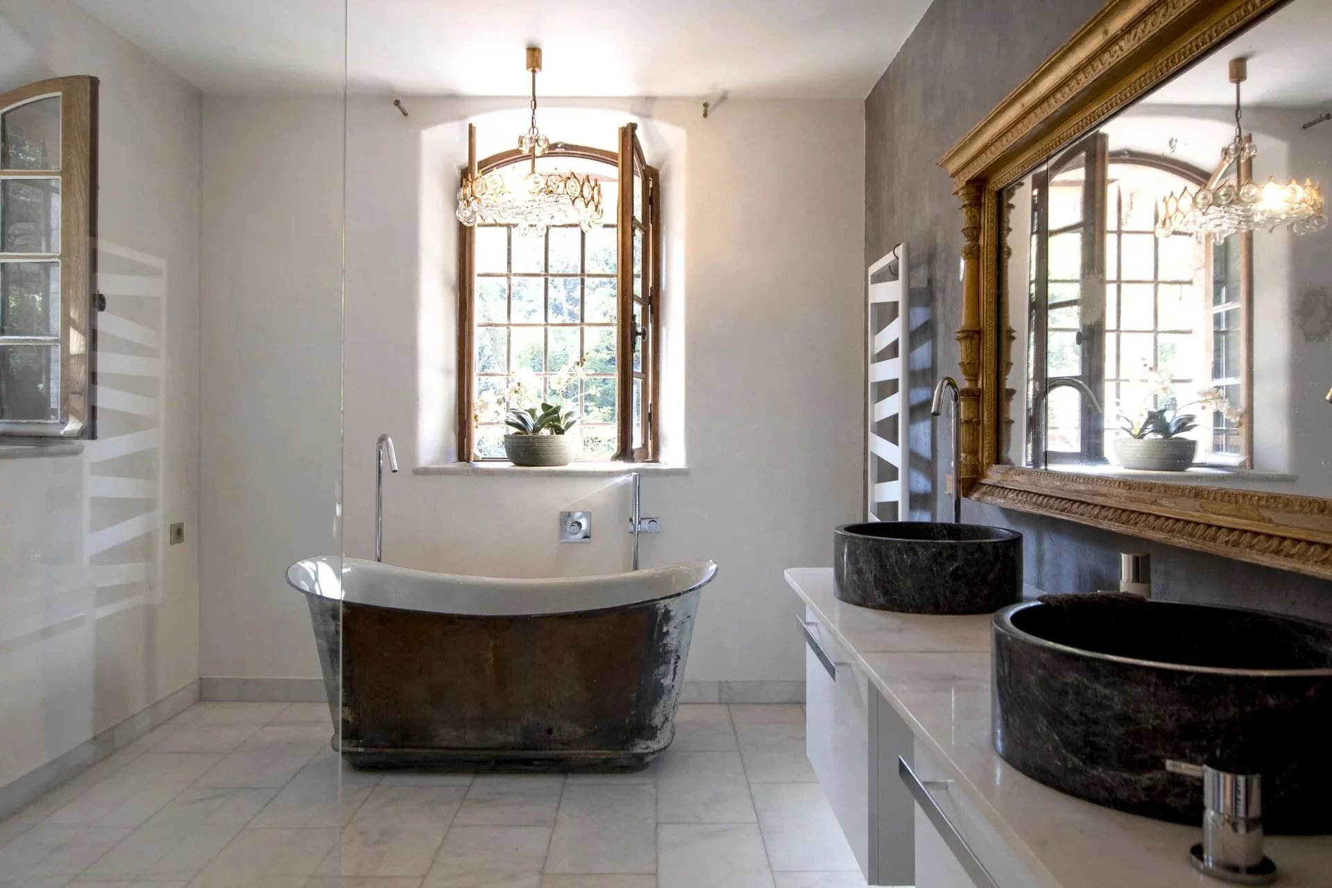 La maison principale inclut une grande cuisine, un grand espace séjour/salle à manger puis un second séjour, toutes ces pièces ayant leur propre cheminée. On y trouve également 5 charmantes suites et un appartement indépendant au niveau supérieur composé de 3 belles chambres avec salle de bain, d'un séjour/salle à manger et d'un balcon surplombant la forêt. Au niveau inférieur, on découvre un bar et une cave à vins avec de jolis plafonds voûtés et des murs en pierres apparentes. En complément, on dispose d'un sous-sol de 100 m² qui pourrait être transformé par exemple en salle de sport et 4 chambres supplémentaires.