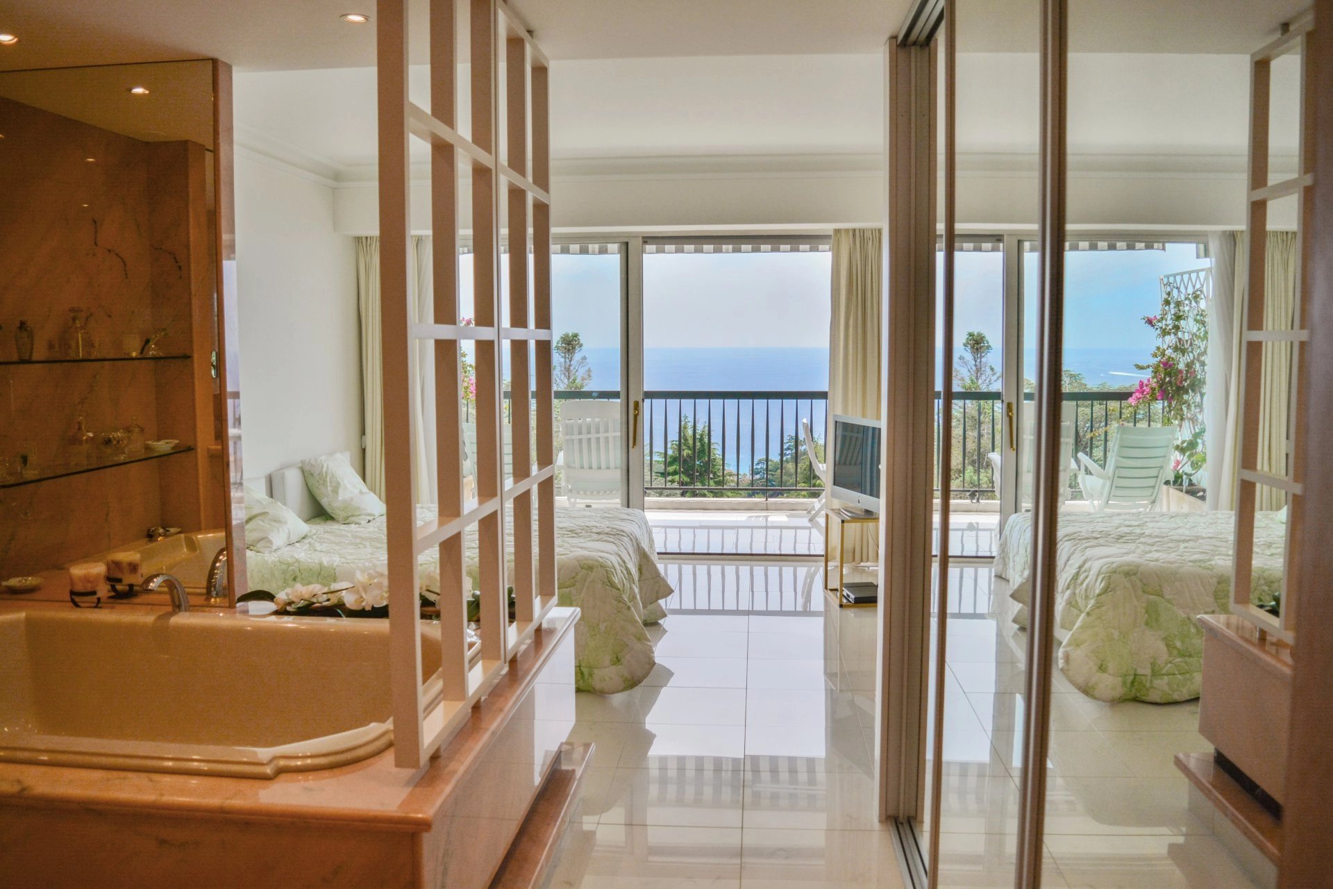 Au coeur du secteur de la Croix des Gardes, dans une résidence sécurisée de grand standing avec gardien, piscine, tennis et un parc. L'agence Jacari vous propose cet appartement au 4ème étage. Composé d'un lumineux séjour et donnant sur une terrasse offrant une vue mer panoramique. Une cuisine séparée et équipée, deux chambres et leurs salle de bains, ainsi qu'un dressing et une buanderie. Un parking fermé et une cave viennent compléter ce bien.