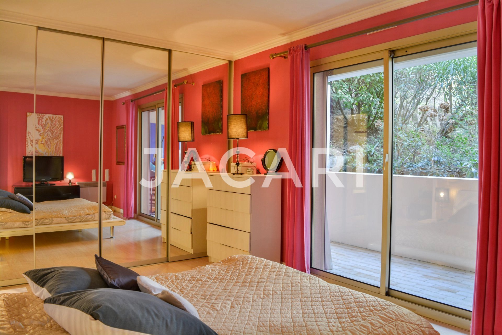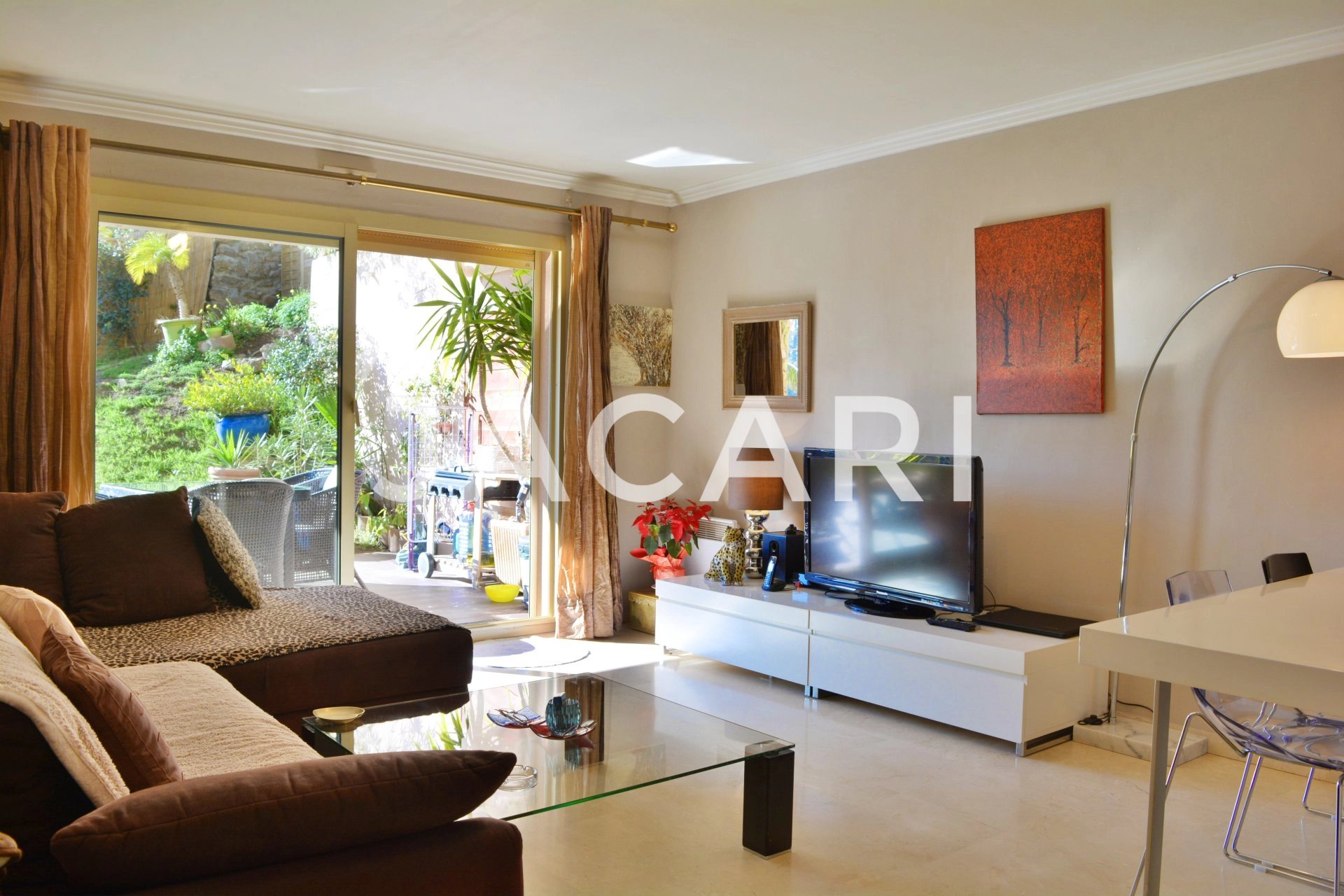 Dans une petite résidence de 10 lots avec piscine, située dans le quartier résidentiel de la Croix des gardes et au fond d'une impasse. L'agence Jacari vous propose ce superbe appartement T3 traversant de 65m2 en rez-de-jardin surélevé avec une vue dégagée sur les collines environnantes et un aperçu mer. Il se compose de deux chambres dont une parentale de 16m2 avec salle de bains et balcon, toilettes séparées et un spacieux salon/salle à manger avec cuisine américaine rénovée donnant sur une large terrasse et un joli jardin exposé plein sud d'environ 70m2. Un garage en sous-sol complète ce bien d'exception. Votre contact : Gregory Magnier 06 17 82 66 76