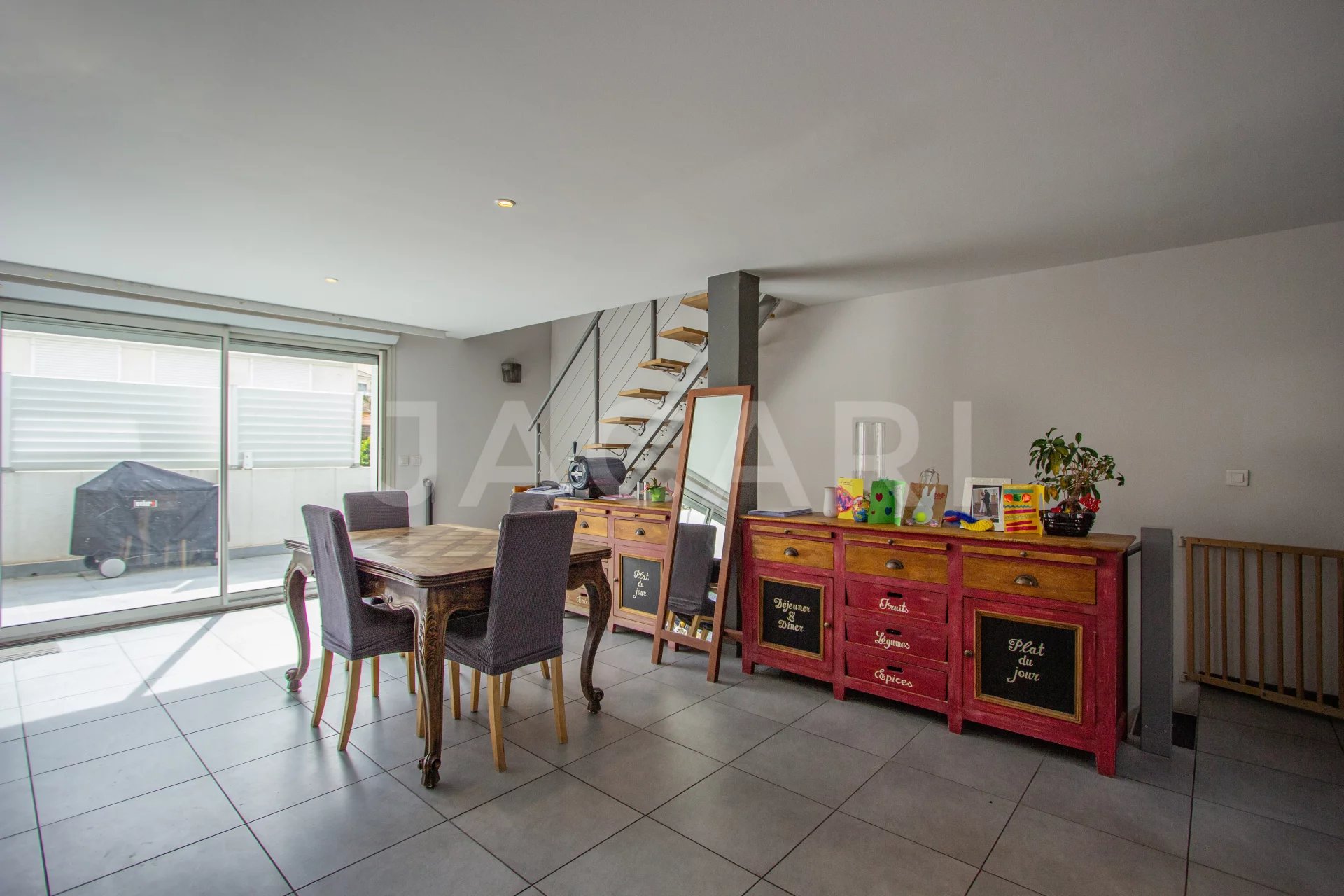 Cannes Anglais, Jolie maison de ville contemporaine jouissant d’un garage double, idéalement situé au calme en retrait d’une impasse, à quelques minutes à pied de toutes commodités et des écoles. Composé d’un spacieux séjour avec cuisine équipée ouvrant sur une terrasse de 22 m² exposé sud. Trois chambres dont une en suite avec salle de bains, une salle d’eau et un toilettes séparé. Une seconde terrasse couverte de 44 m² ainsi que de nombreux rangements grâce à une grande mezzanine de 28 m². Votre contact : Kevin Bourgeois - 06 47 79 35 79
