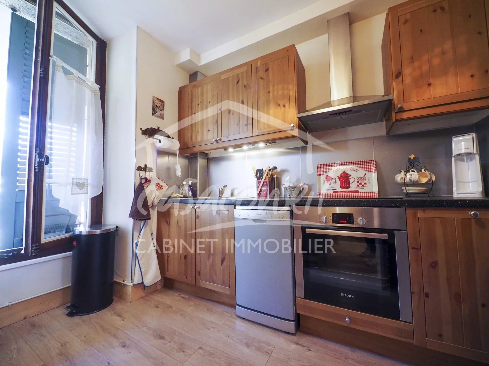 EN EXCLUSIVITE- Dans une résidence de charme à quelques pas du centre, appartement côté ouest comprenant: entrée, salle de bains avec douche, toilettes séparés, 1 chambre, 1 séjour et une cuisine. Vue sur le jardin et la chaine des Aravis. Complètement réhabilité et vendu avec 1 cave. parfait pour un usage de résidence principale ou secondaire.