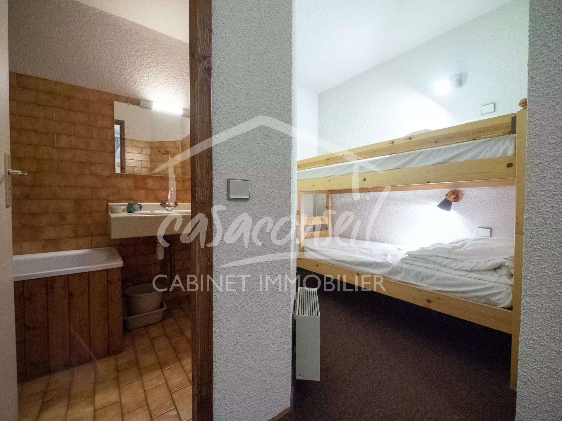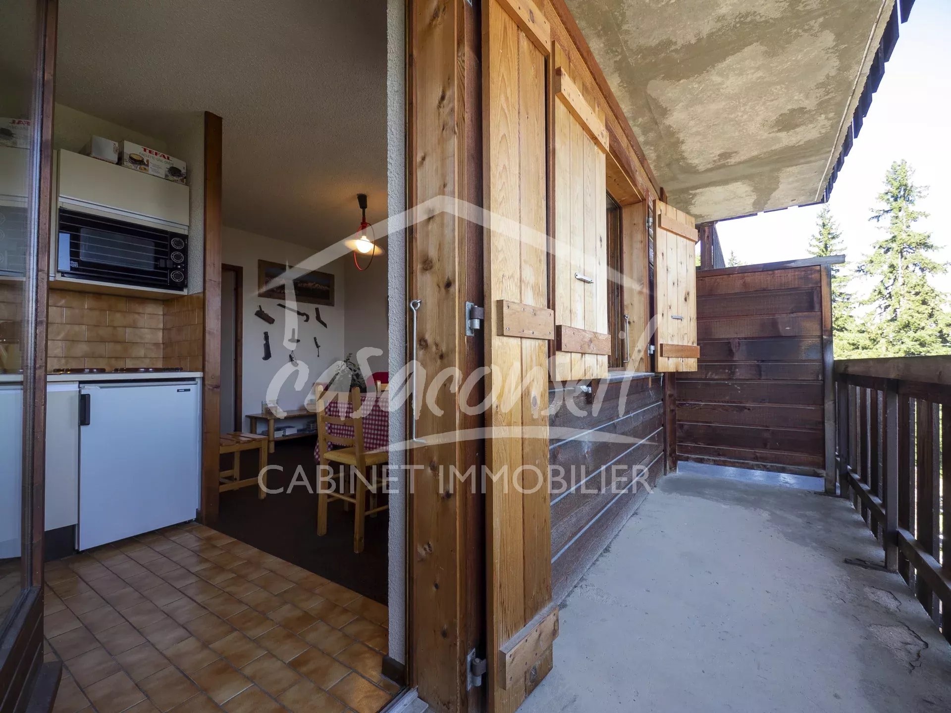 EN EXCLUSIVITE Ce studio + coin nuit bénéficie d'un accès direct aux pistes de skis (domaine Évasion Mont Blanc) en hiver, et d'une piscine extérieure ainsi que deux courts de tennis en été. Sur 25,86m² parfaitement aménagé, il vous offre : une entrée avec placard, un coin nuit, un séjour avec coin cuisine ouvrant sur un grand balcon (5,35m²), une salle de bains avec toilette. Il est vendu meublé et dispose d'une cave et d'un casier à skis.