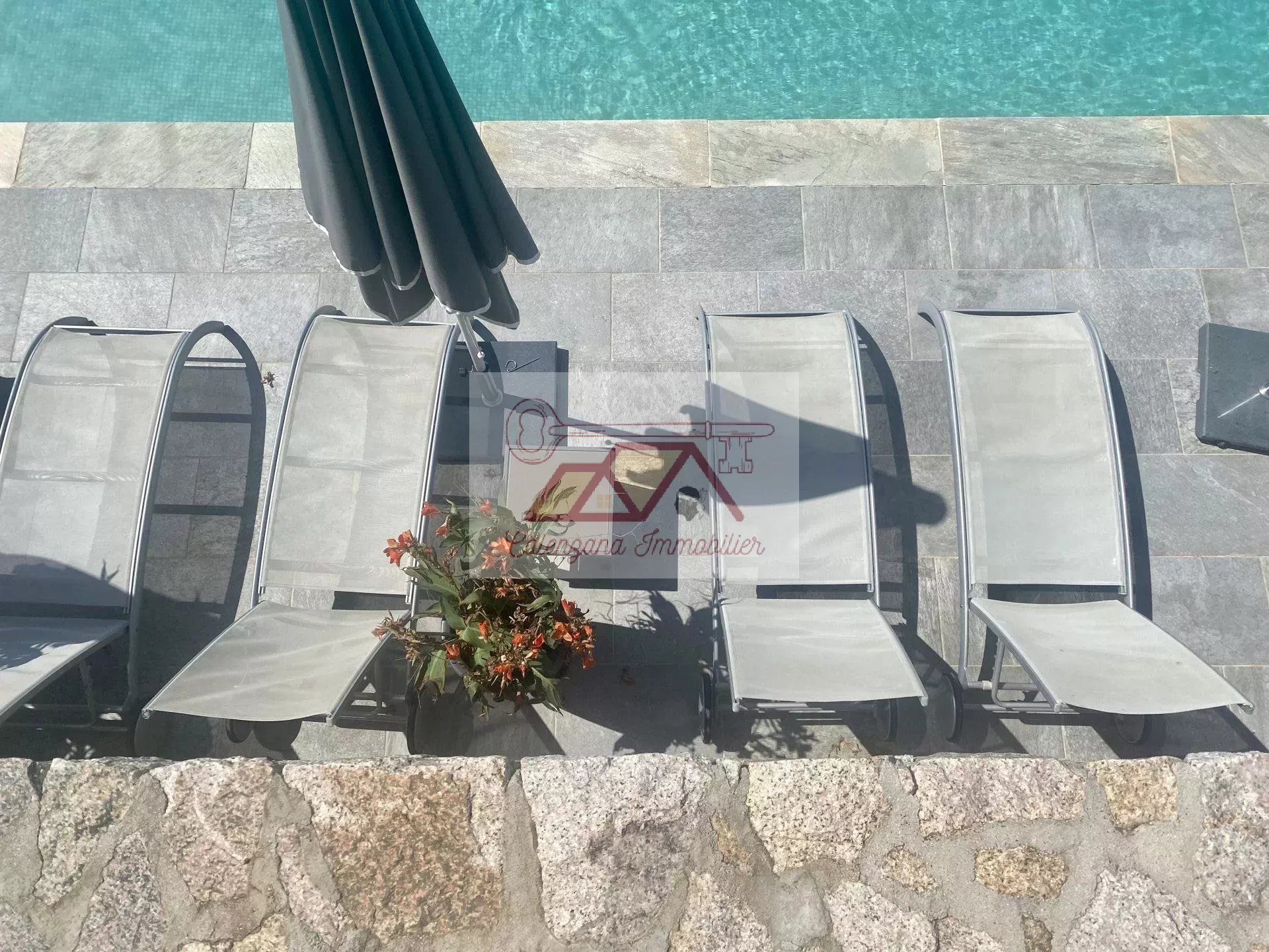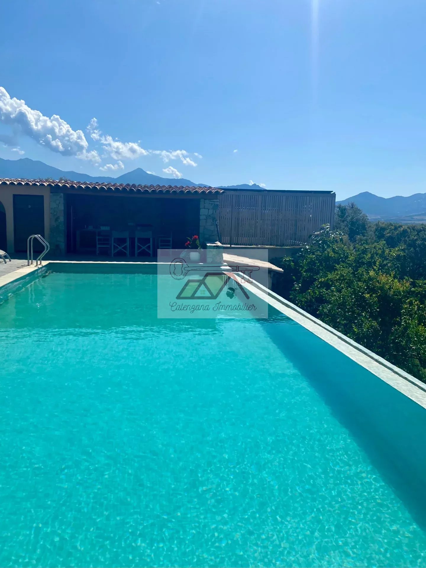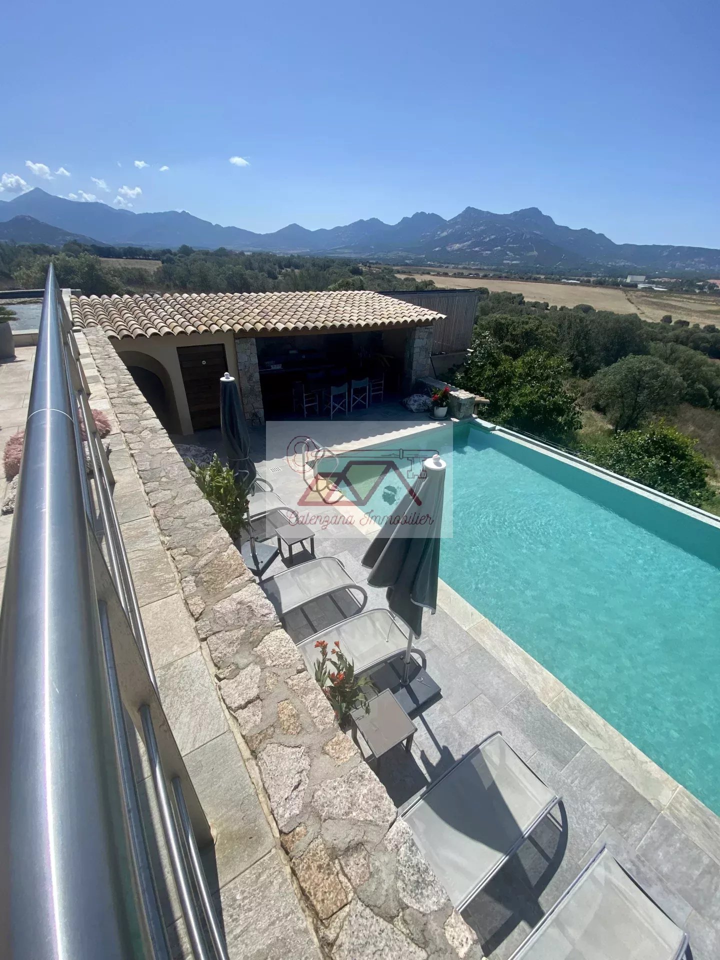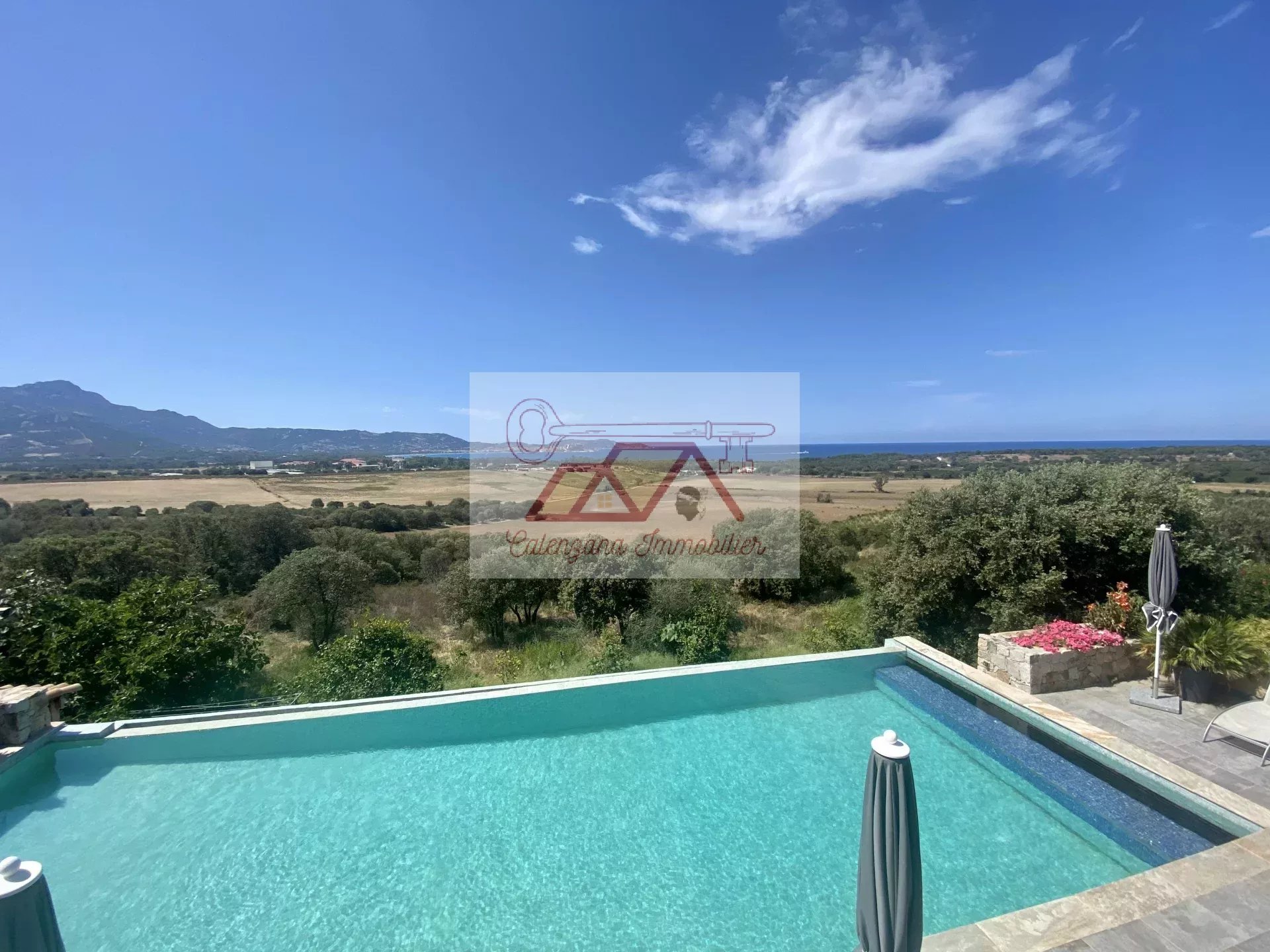 Villa d'architecte d'environ 367 m² avec piscine située au calme absolu dans un quartier très prisé et résidentiel à 10 minutes de Calvi entouré de terrains agricoles.