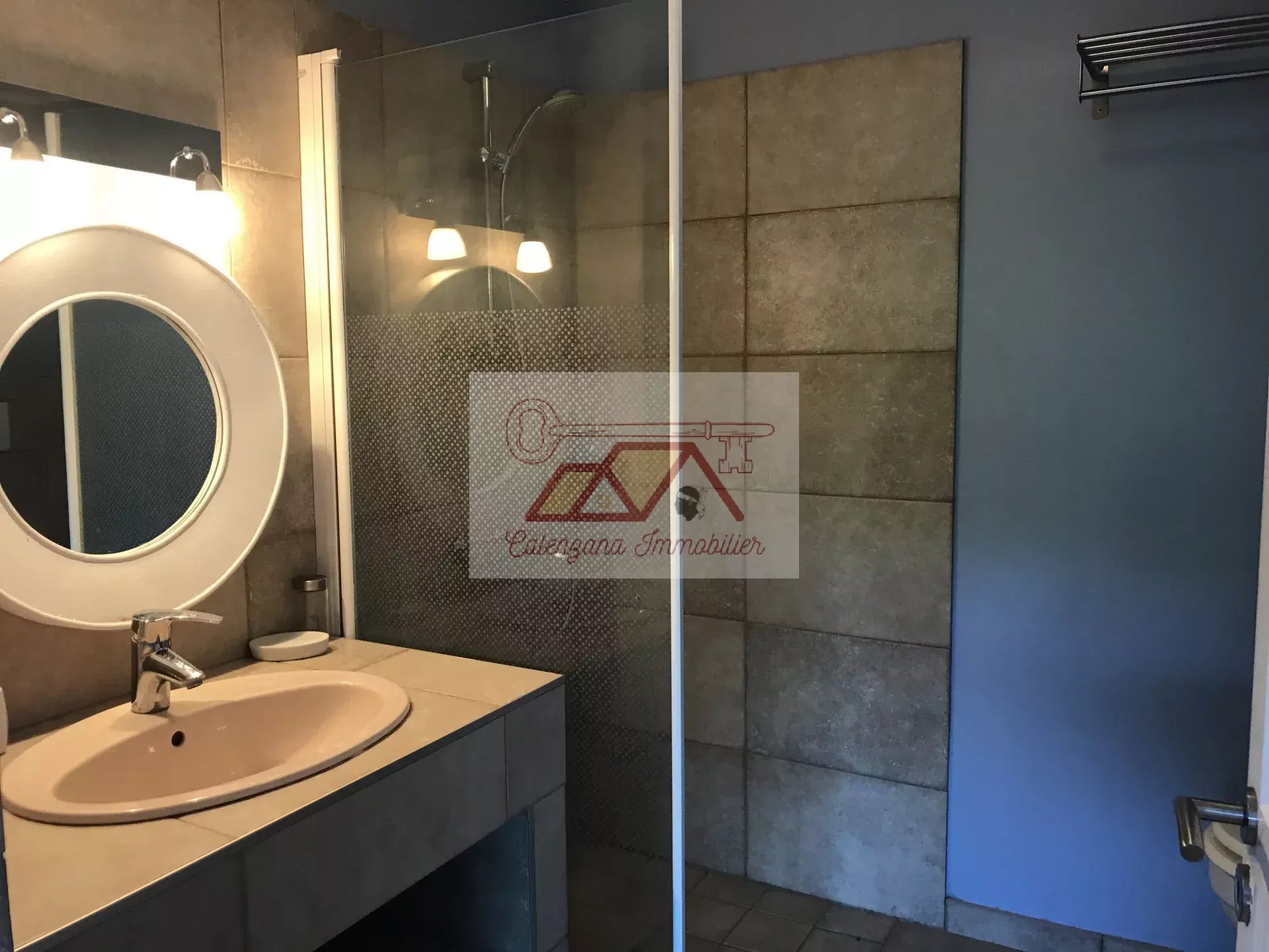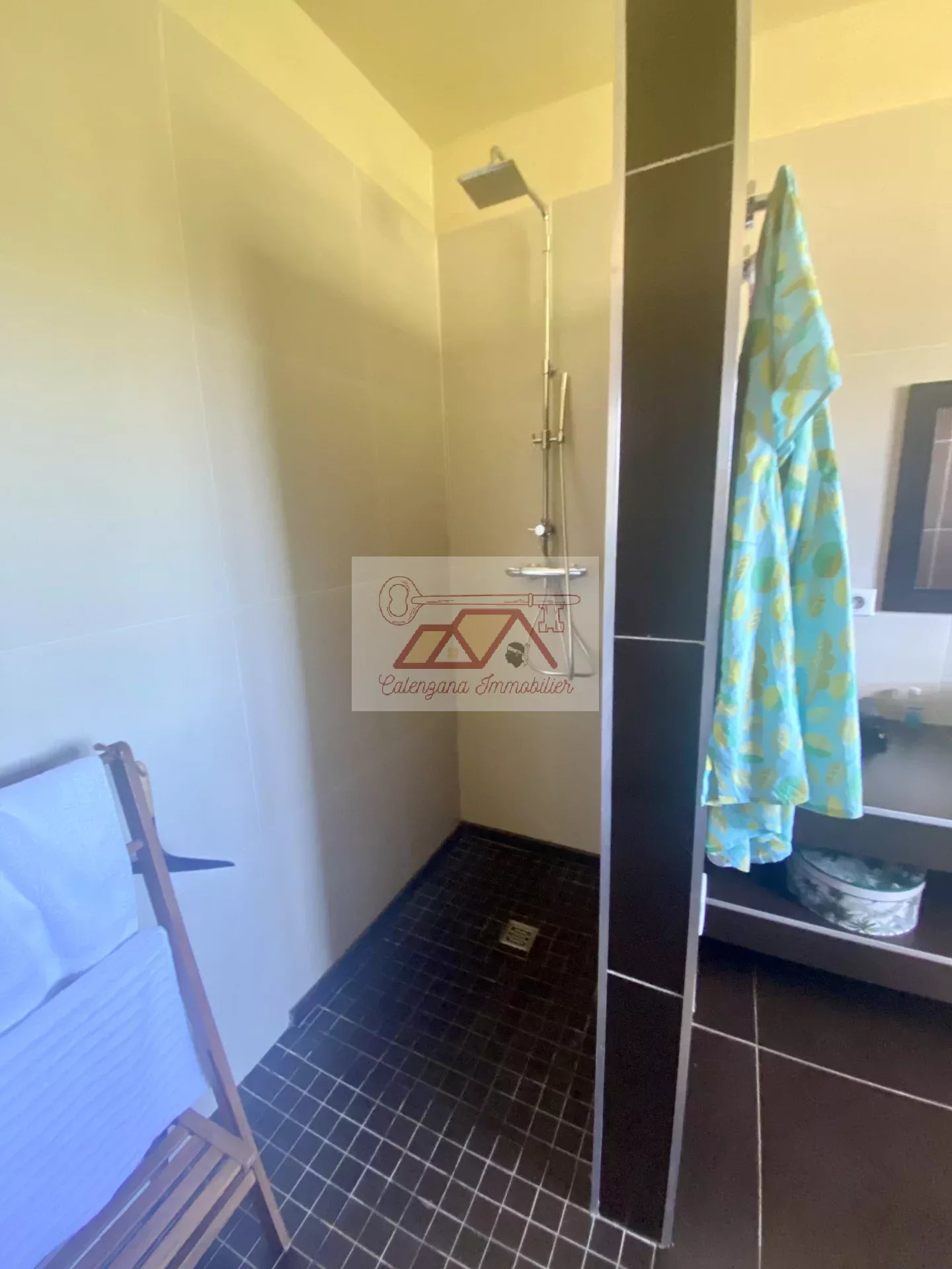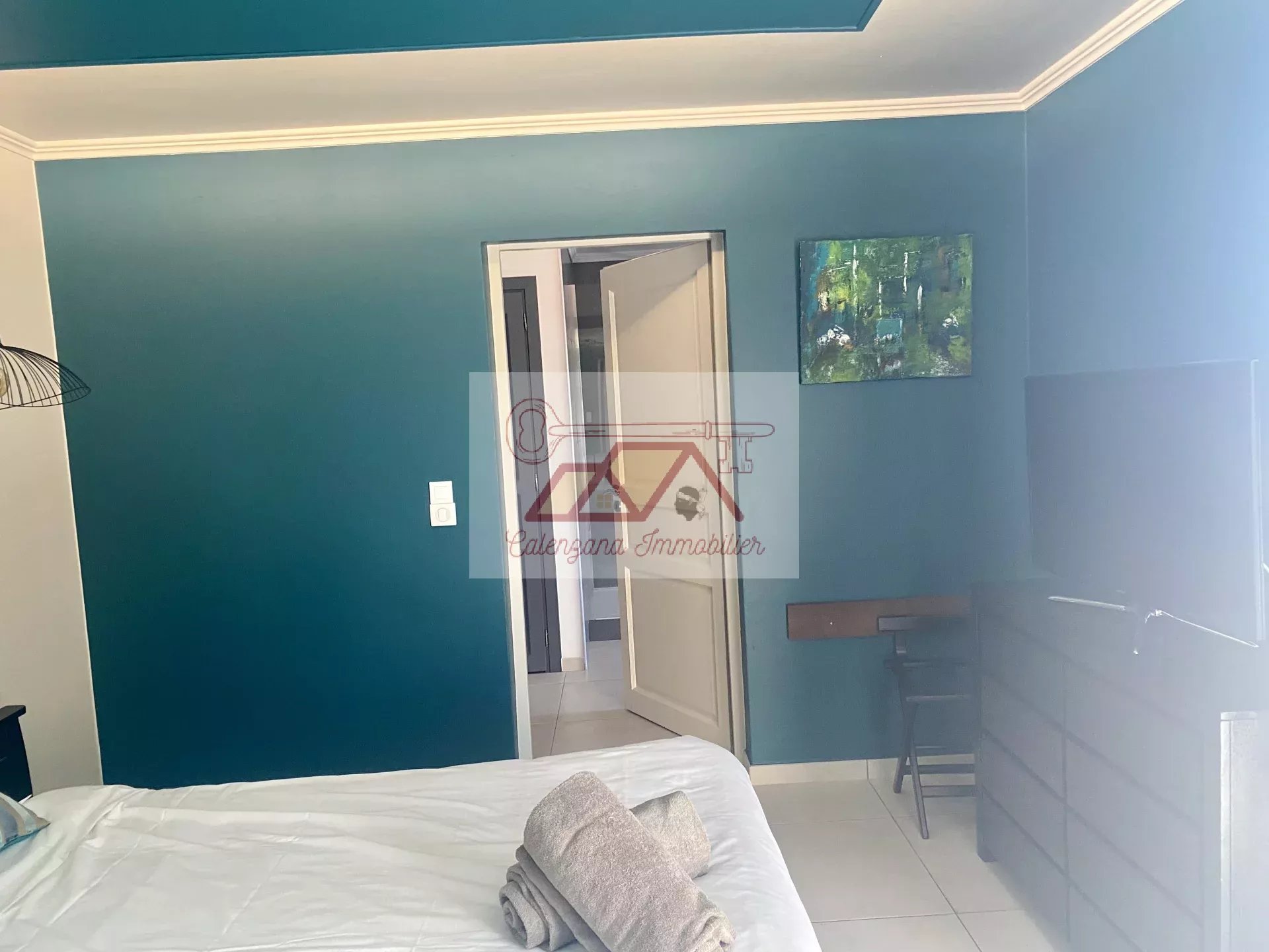 En rez-de-jardin, un grand T2 design et indépendant avec belle terrasse vue mer, une buanderie, un home cinéma avec salle d'eau attenante et un grand bureau.