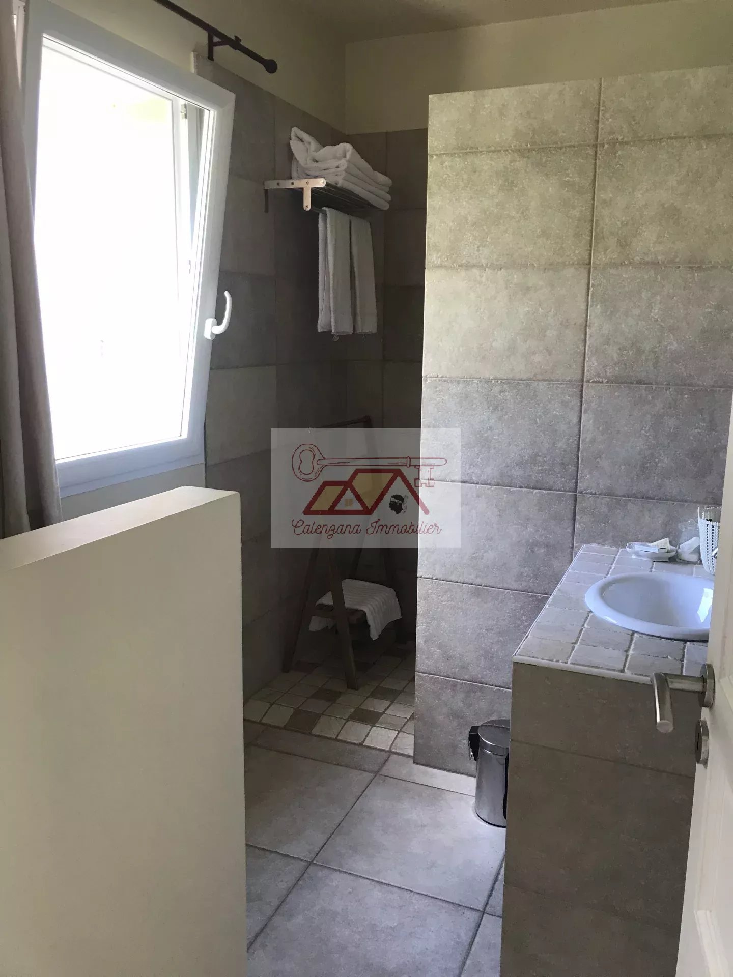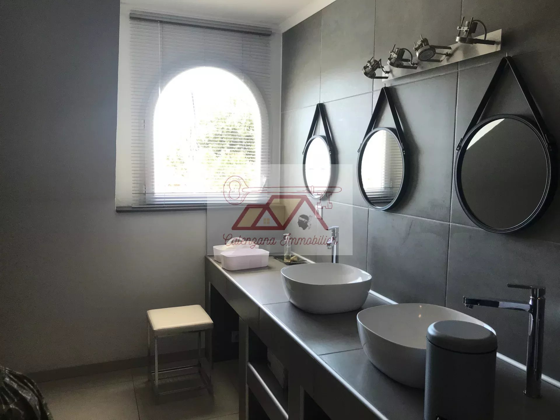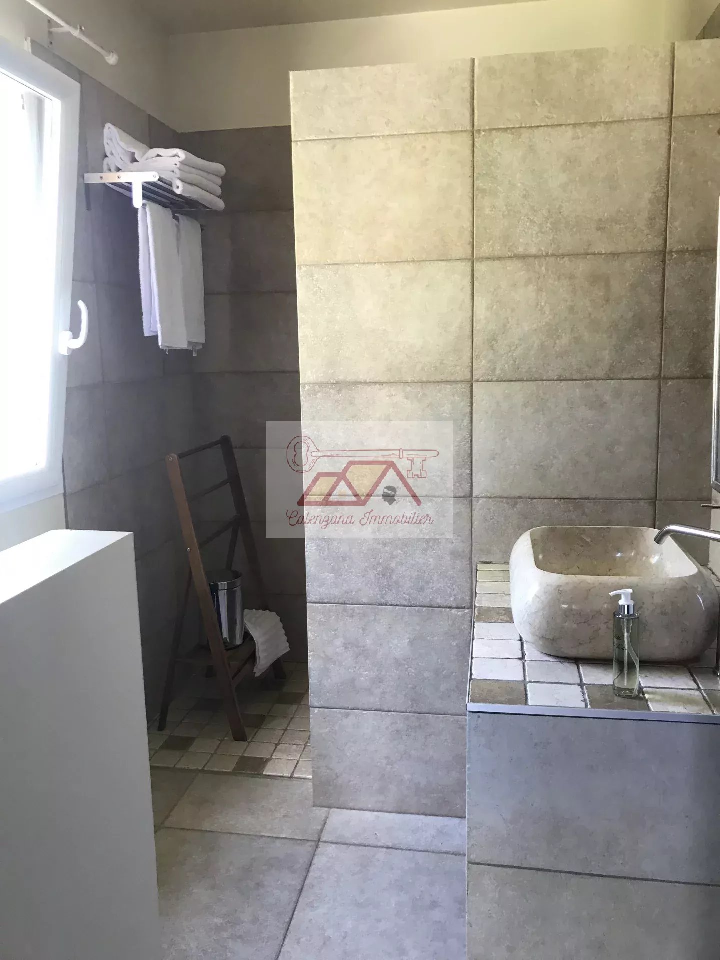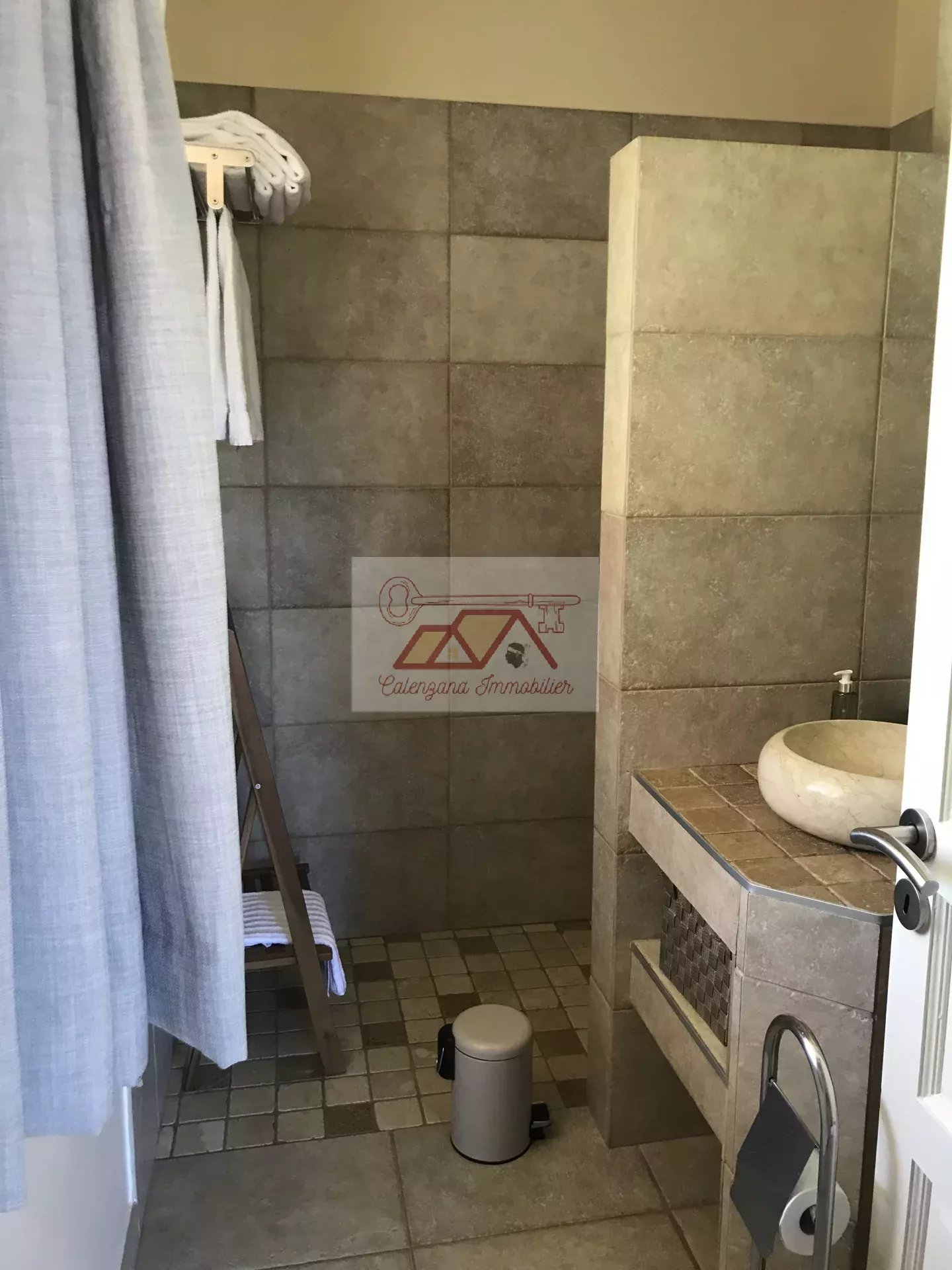 En rez-de-jardin, un grand T2 design et indépendant avec belle terrasse vue mer, une buanderie, un home cinéma avec salle d'eau attenante et un grand bureau.