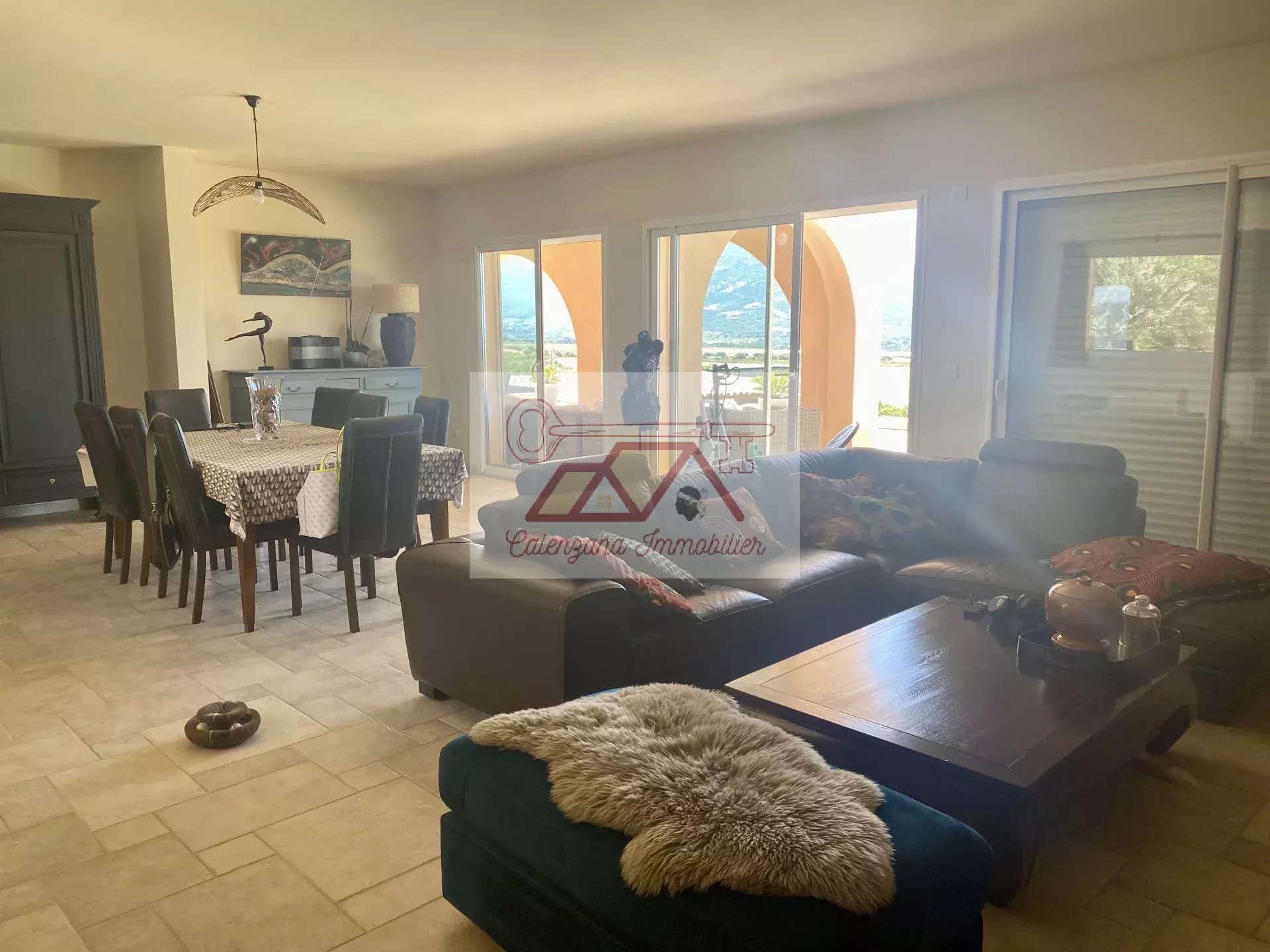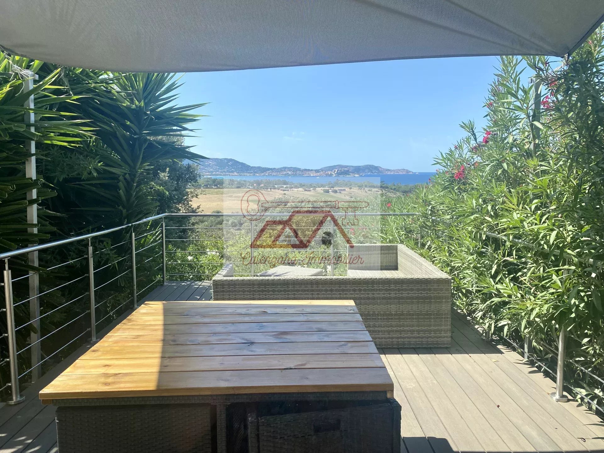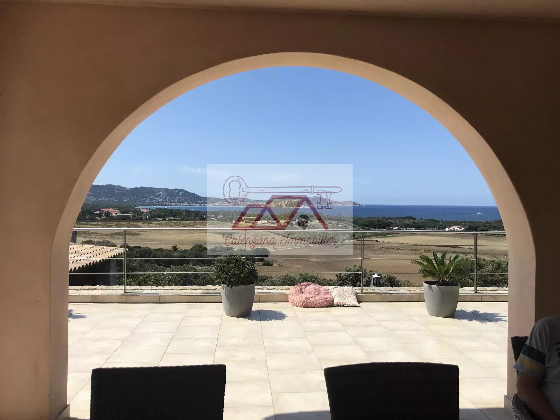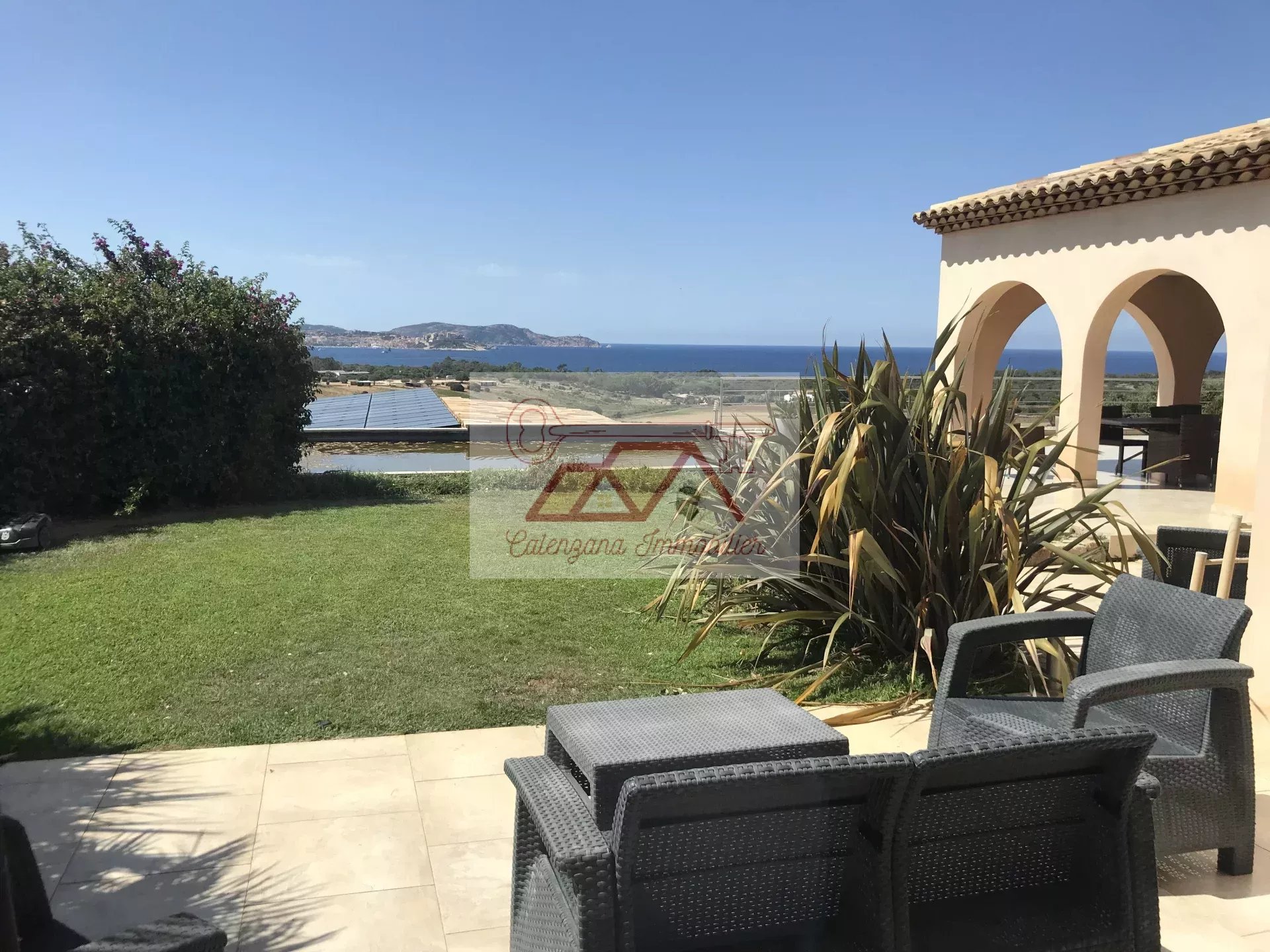 Cette propriété d'exception, bénéficie d'un vaste séjour lumineux disposant de très grandes baies vitrées donnant sur la mer, une grande cuisine indépendante aménagée et équipée avec cellier attenant, avec possibilité d'accès au garage par l'installation d'un ascenseur. Le tout ouvert sur une magnifique et spacieuse terrasse semi-couverte avec bassin à poissons rouges, surplombant la mer ainsi que la citadelle de Calvi.