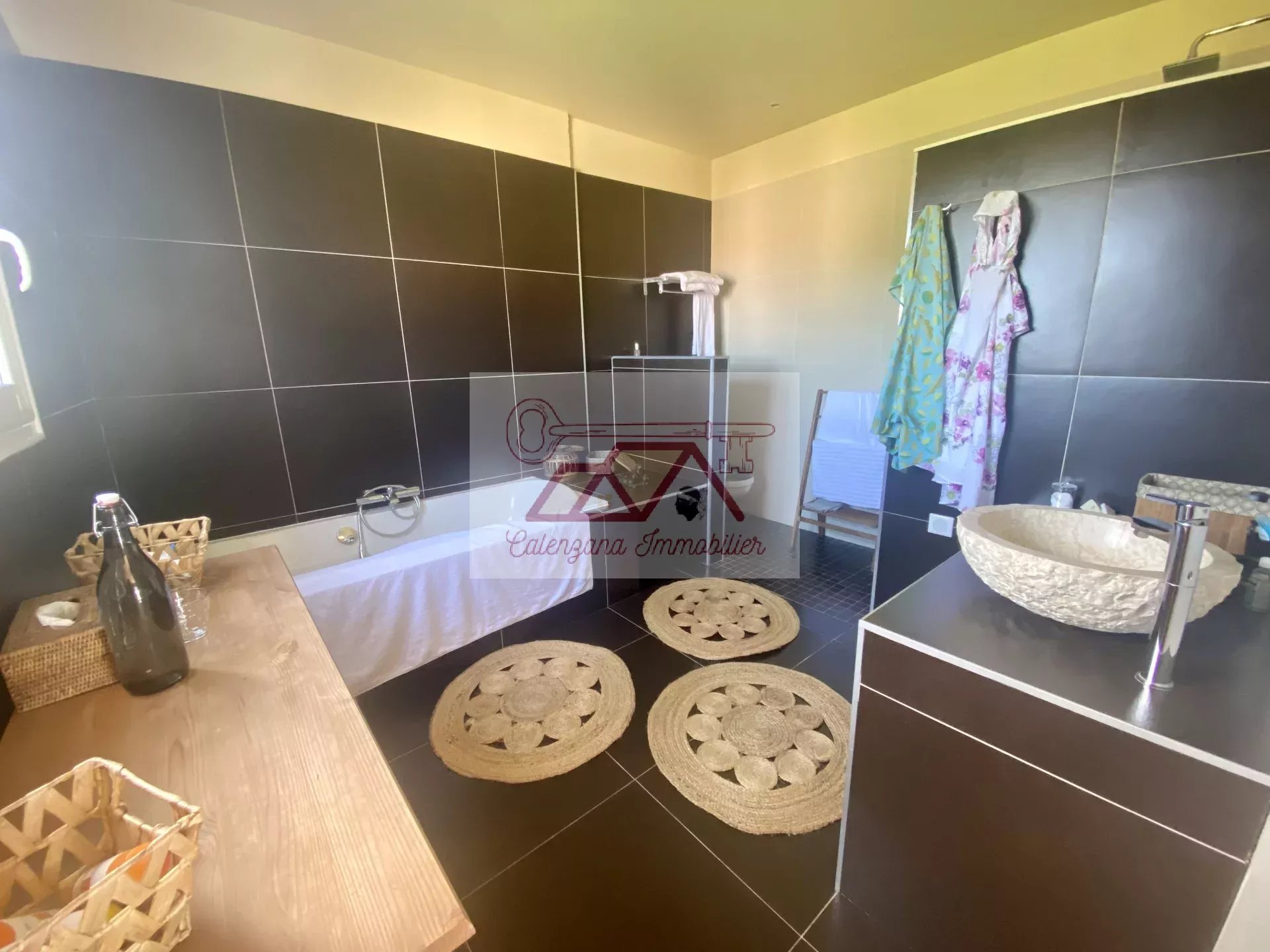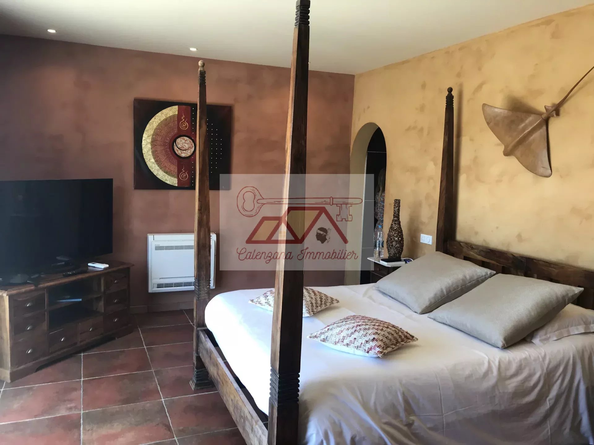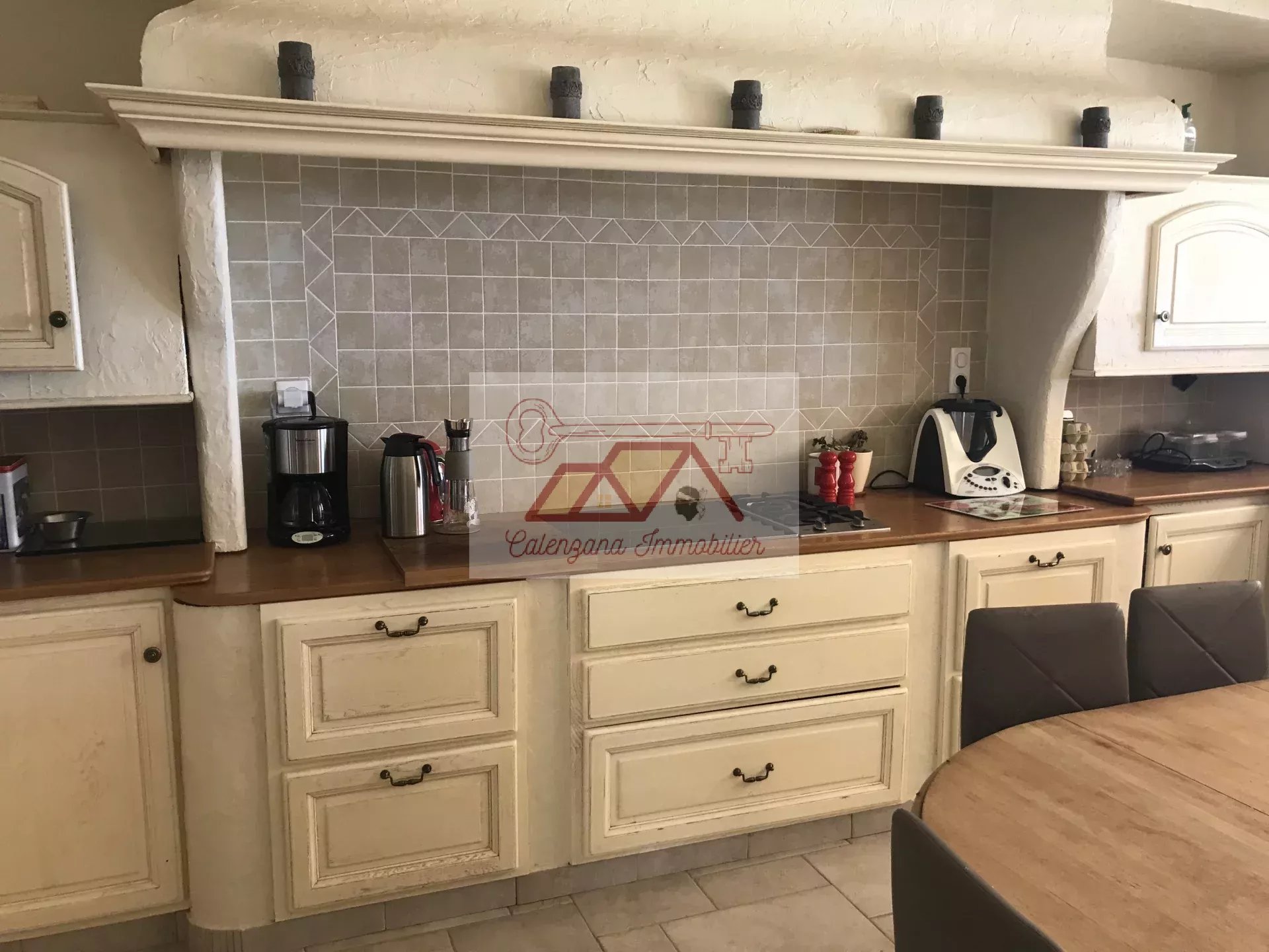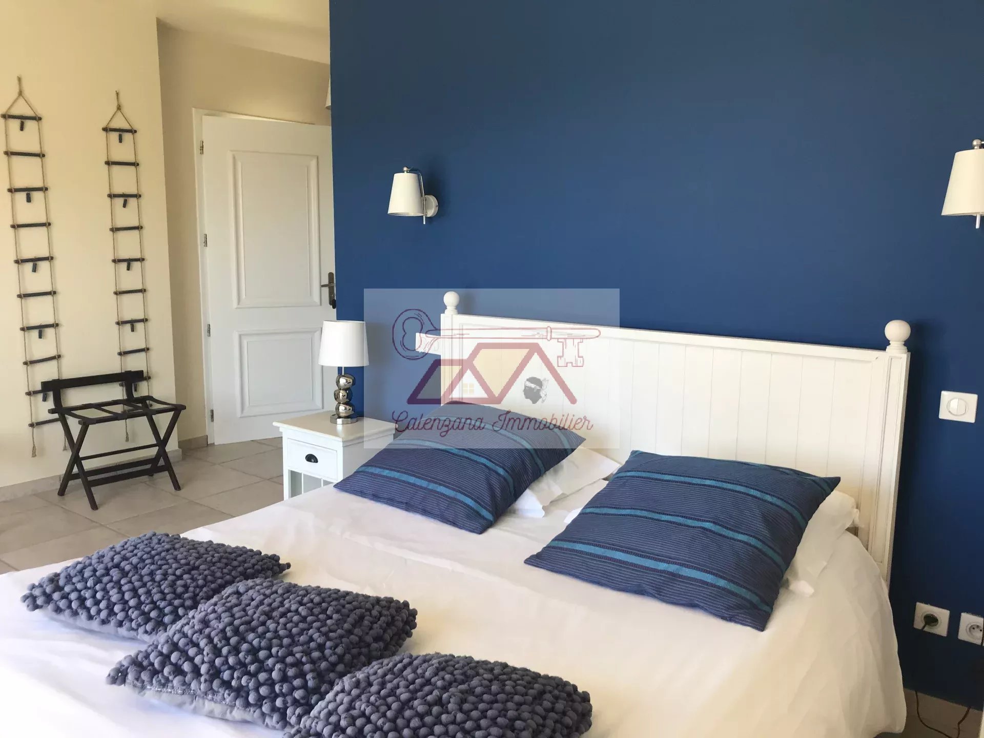 Cette propriété d'exception, bénéficie d'un vaste séjour lumineux disposant de très grandes baies vitrées donnant sur la mer, une grande cuisine indépendante aménagée et équipée avec cellier attenant, avec possibilité d'accès au garage par l'installation d'un ascenseur. Le tout ouvert sur une magnifique et spacieuse terrasse semi-couverte avec bassin à poissons rouges, surplombant la mer ainsi que la citadelle de Calvi.