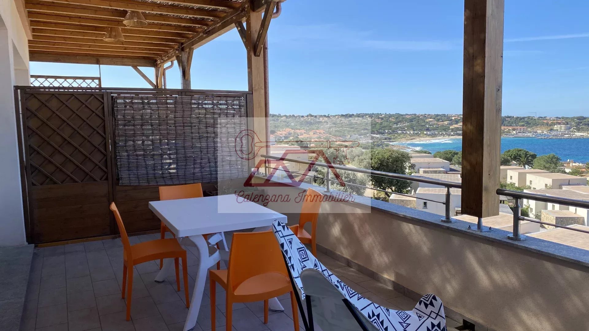 Exclusivité. Situé à seulement trois minutes à pieds du bord de mer, cet appartement saura vous séduire, car absolument parfait. Bel agencement, séjour climatisé avec canapé convertible, écran plat, cuisine design complètement équipée. Belle chambre avec lit en 160 et nombreux rangements, une salle d'eau-wc. Terrasse couverte avec une vue imprenable sur la mer et le Cap Corse. Place de parking privative.