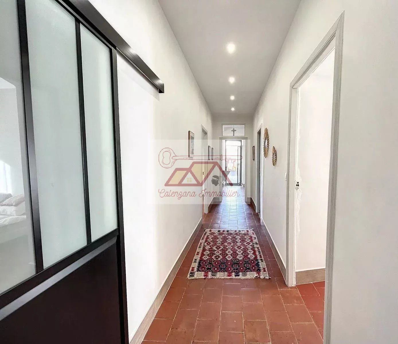 A Calenzana.Idéalement situé dans le centre-village à proximité immédiate des commerces et école, superbe appartement de type 4 avec agréable et spacieuse terrasse d'environ 55 m2 vue mer. D'une superficie d'environ 106 m2, il se compose d'une cuisine moderne ouverte sur un séjour avec cheminée, petit coin salon, un couloir distribuant trois chambres dont une suite parentale avec cheminée et dressing ainsi que de deux salles d'eau wc. Un grenier aménageable d'environ 27 m2 complète ce bien rare.