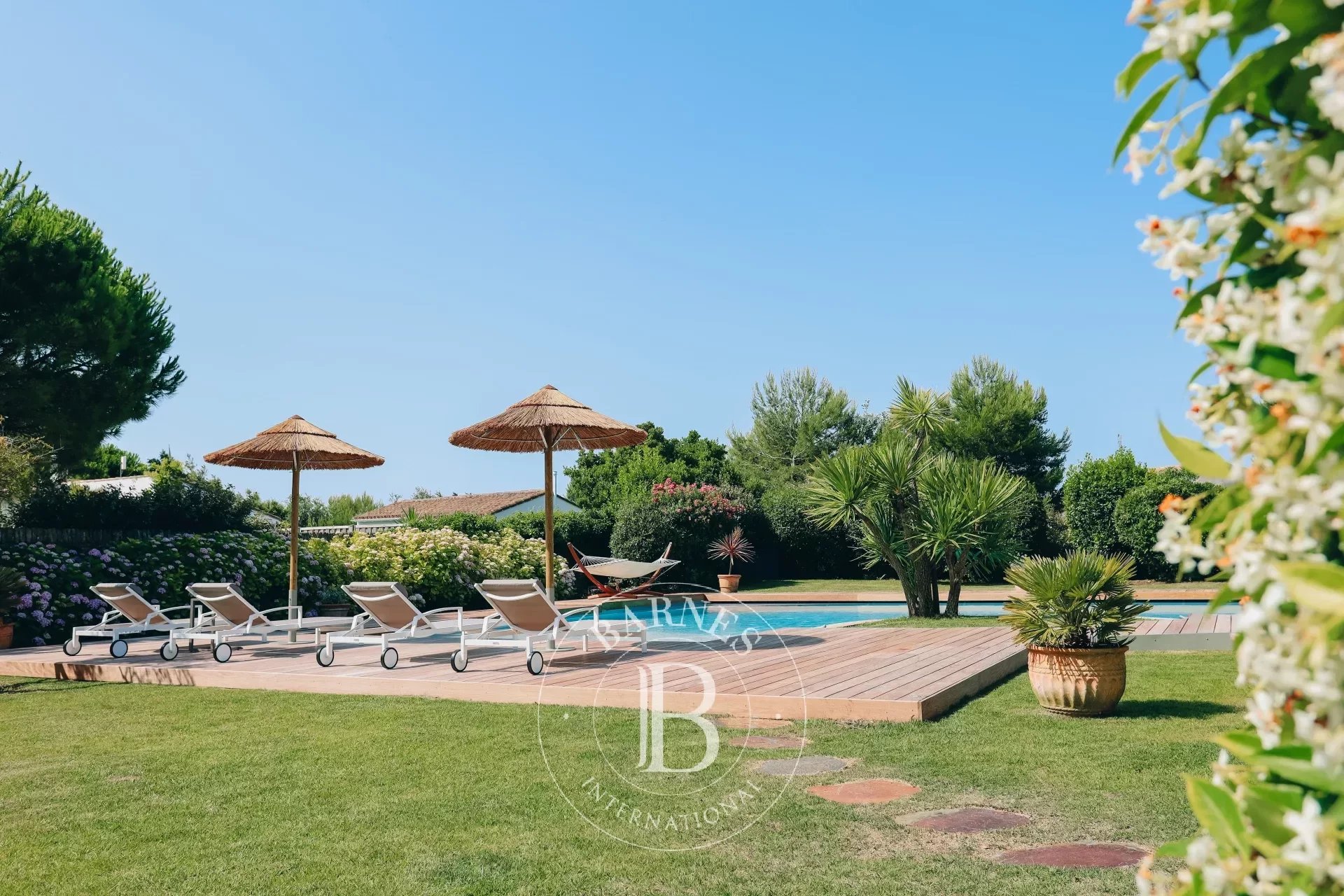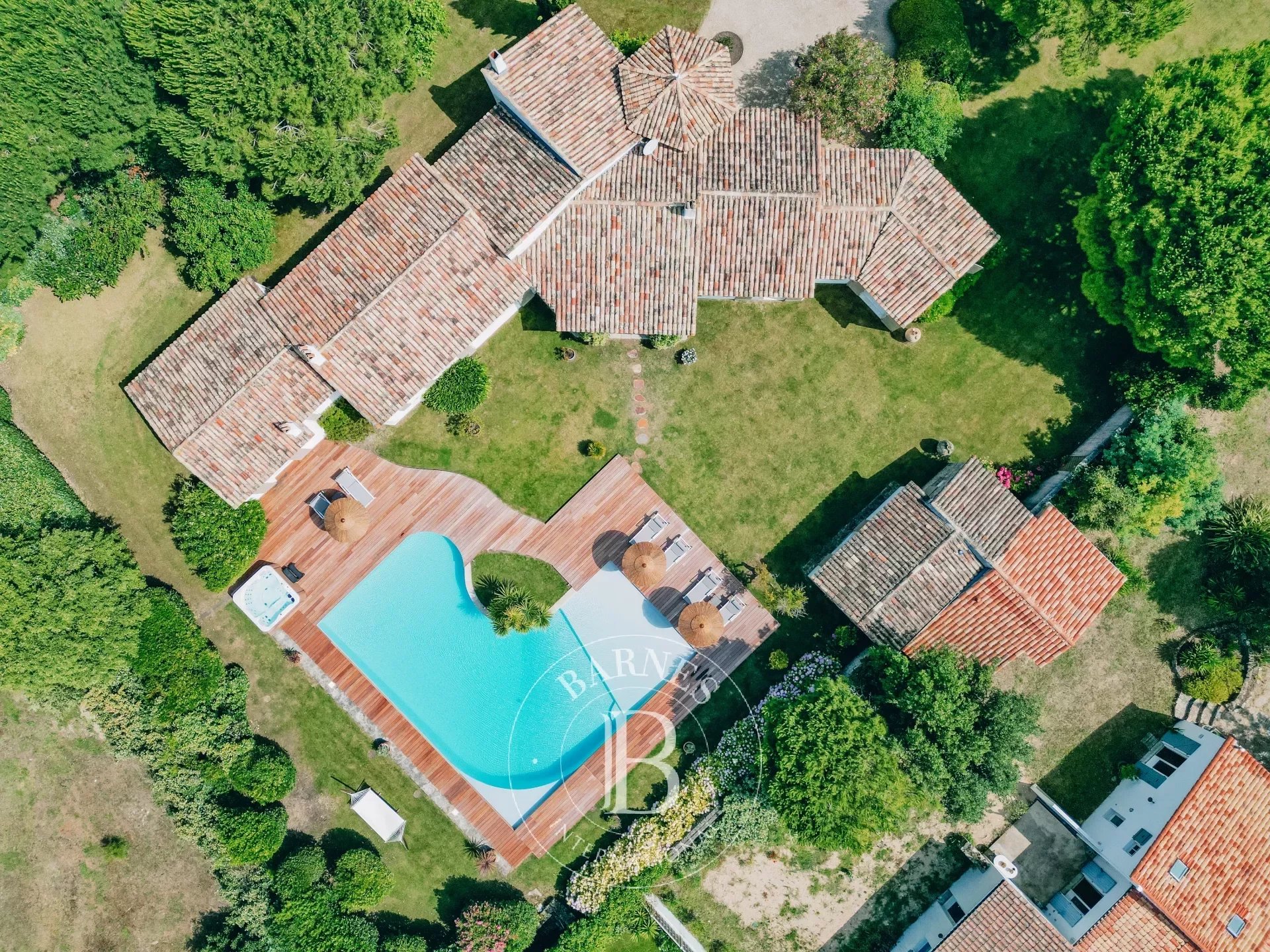 Laissez-vous séduire par la luminosité exceptionnelle de la villa, exposée plein sud, qui baigne ses espaces de vie de lumière du matin jusqu’au soir. Profitez de ses vastes extérieurs, avec une grande piscine extérieure à la forme unique, idéale pour des moments de relaxation. À côté de la piscine, un jacuzzi vous attend pour une expérience de détente ultime. Le terrain clos de 2 500m², magnifiquement arboré, vous permettra de vous immerger dans la nature tout en préservant votre intimité.