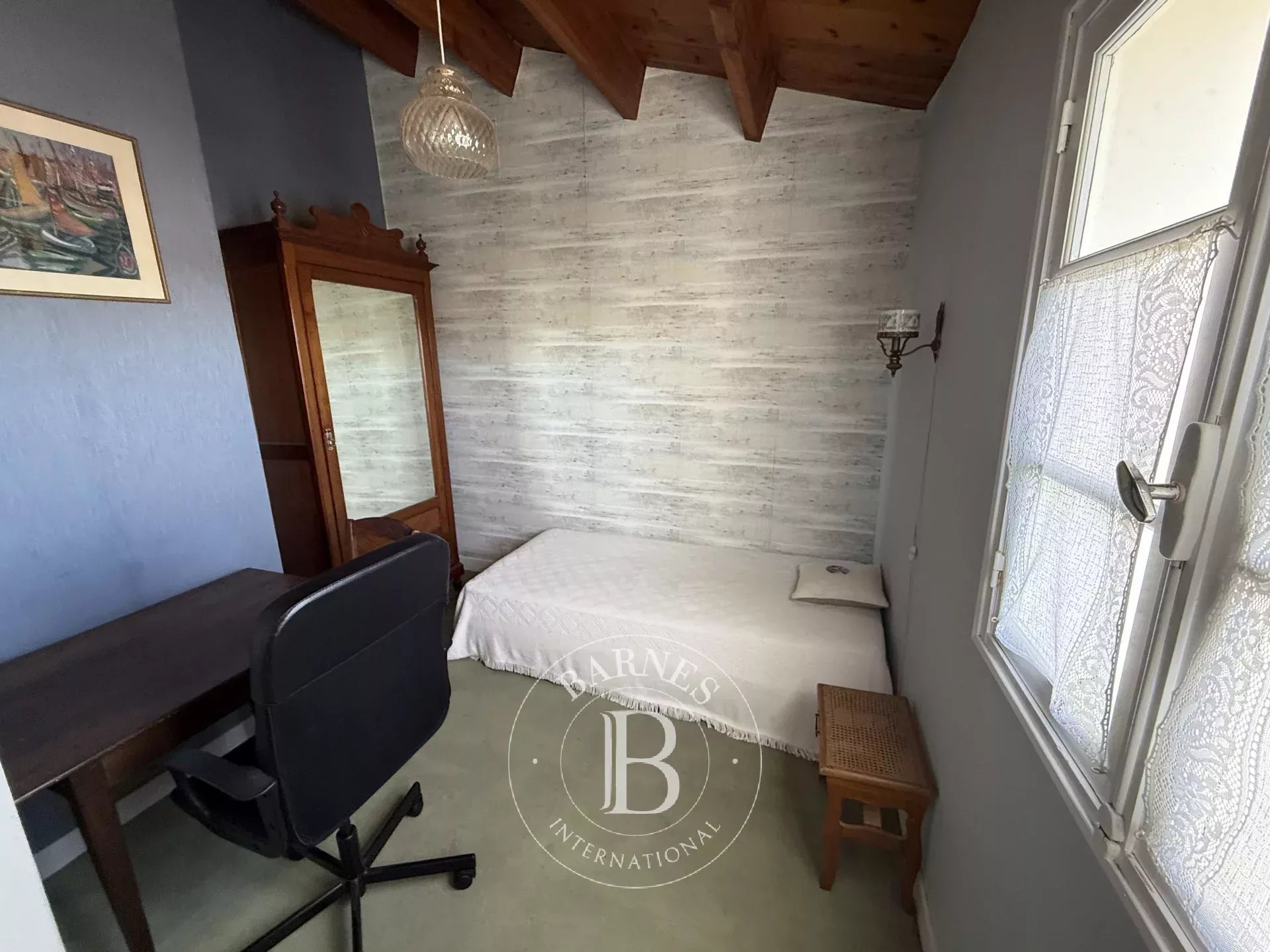 Située au cœur d’un village, dans une impasse piétonne sans circulation, cette maison construite dans les années 60 offre une surface habitable d’environ 103 m². Elle se compose au rez-de-chaussée d’un salon avec cheminée, d’une cuisine, et d'un espace pour ranger les vélos. À l’étage, vous trouverez quatre chambres, une salle d’eau. Maison ancienne nécessitant des travaux de rénovation. La toiture a été refaite récemment. Au calme, à deux pas des commerces et restaurants et à 650m de la plage.