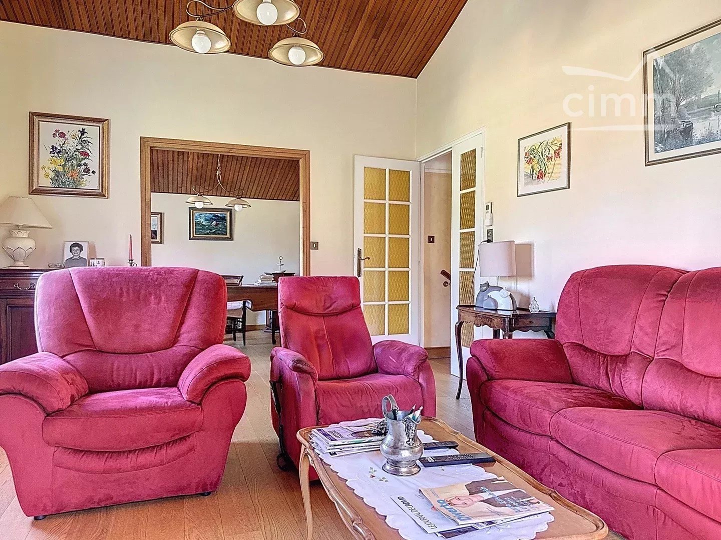Située dans un environnement paisible et verdoyant, cette charmante villa de 129 m² habitables offre de beaux volumes et des prestations de qualité. Édifiée sur un terrain plat, clos et arboré de 1355 m², elle se compose d’un lumineux séjour, d’une cuisine indépendante, de trois chambres dont une suite parentale. À l’extérieur, vous profiterez d’une belle piscine, d’un double abri voiture, d’un garage et d’un grand parking. Les + : • Terrain spacieux avec nombreuses possibilités d’agrandissement • Piscine • Espaces modulables Une opportunité rare à visiter sans tarder !