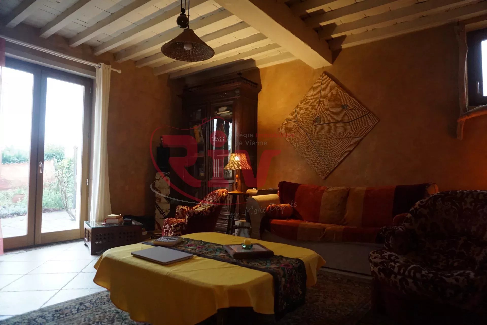 Dans un environnement calme et arboré, à 13 minutes du centre ville de Vienne, sur la commune de Chonas l'Amballan, l'agence RIV vous propose cette jolie maison mélangeant charme et authenticité. Vous trouverez au rez de chaussée, une cuisine, un salon, une pièce à vivre donnant sur le patio, et un bel espace (servant actuellement d'atelier d'artiste). au 1er étage, deux chambres (dont une avec Mezzanine), une salle de bains et un magnifique préau d'été ouvert sur la terrasse et le jardin et deux chambres au second étage.