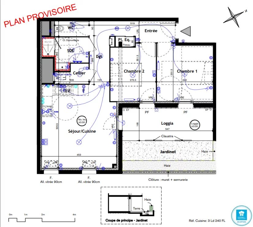 À deux pas du Vieux-Port et du centre-ville, la résidence se situe dans un quartier qui offre un cadre de vie empreint de douceur. La résidence opte pour la végétalisation de ses toitures, ce qui la rend bioclimatique. Bel appartement T3 d'environ 61m², offrant une entrée avec placard et dégagement, un cellier, un séjour-cuisine, 2 chambres, 1 salle d'eau et 1 WC séparé. 1 loggia ainsi que son jardinet viennent compléter ce bien. Une place de parking souterrain.