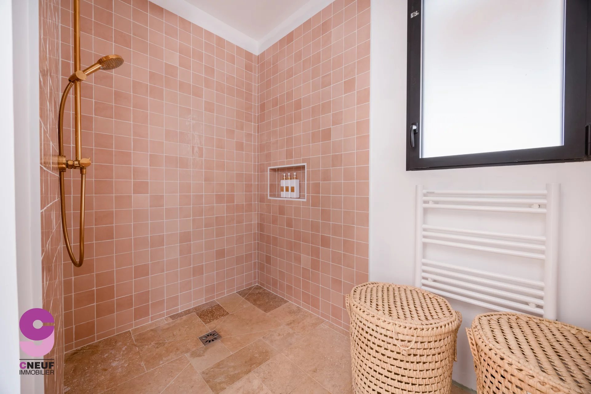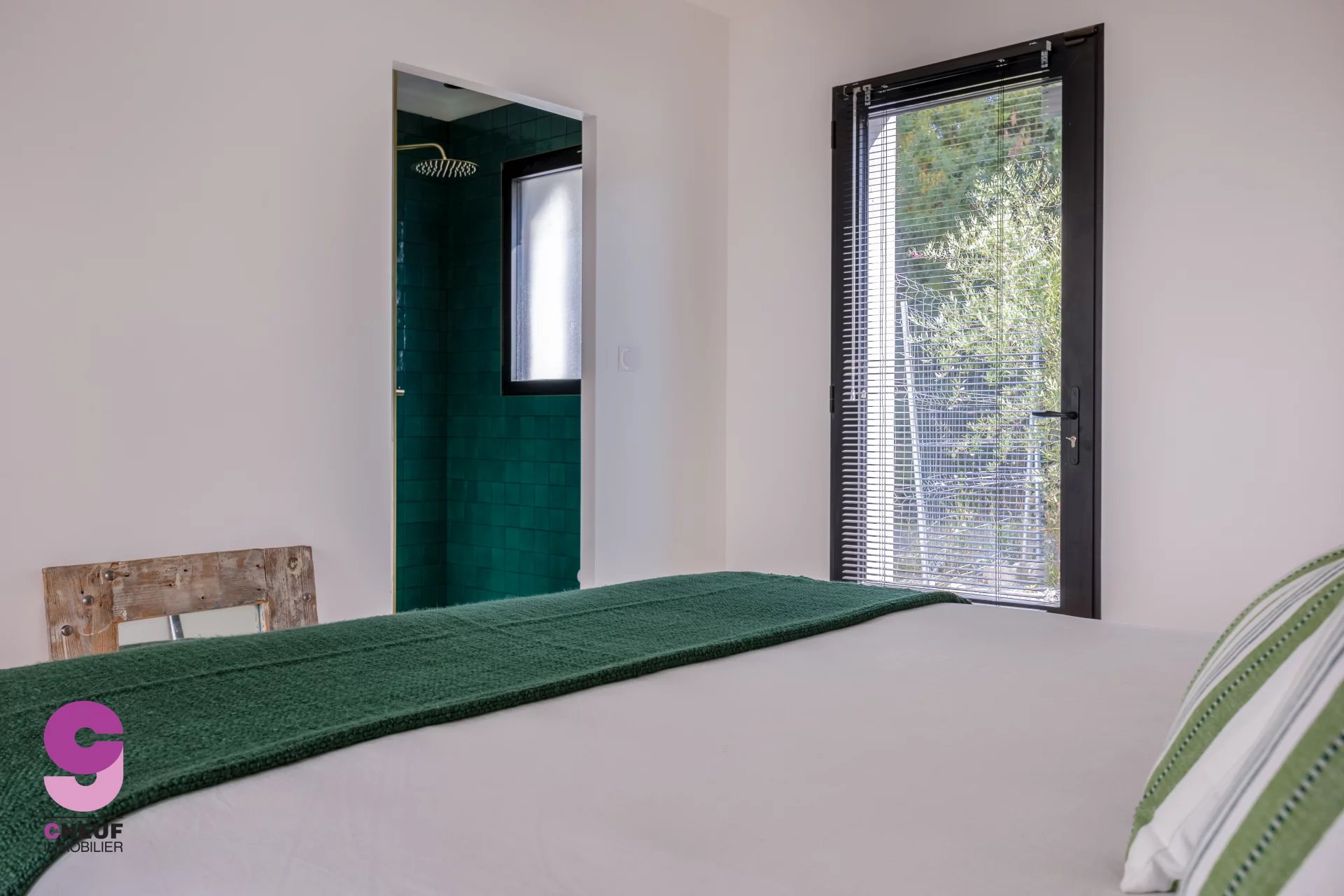 De l'autre côté de la maison, vous découvrirez deux autres chambres avec placard et leur salle d'eau privative dont une avec WC, un bureau/buanderie, et un WC indépendant avec lave-mains.