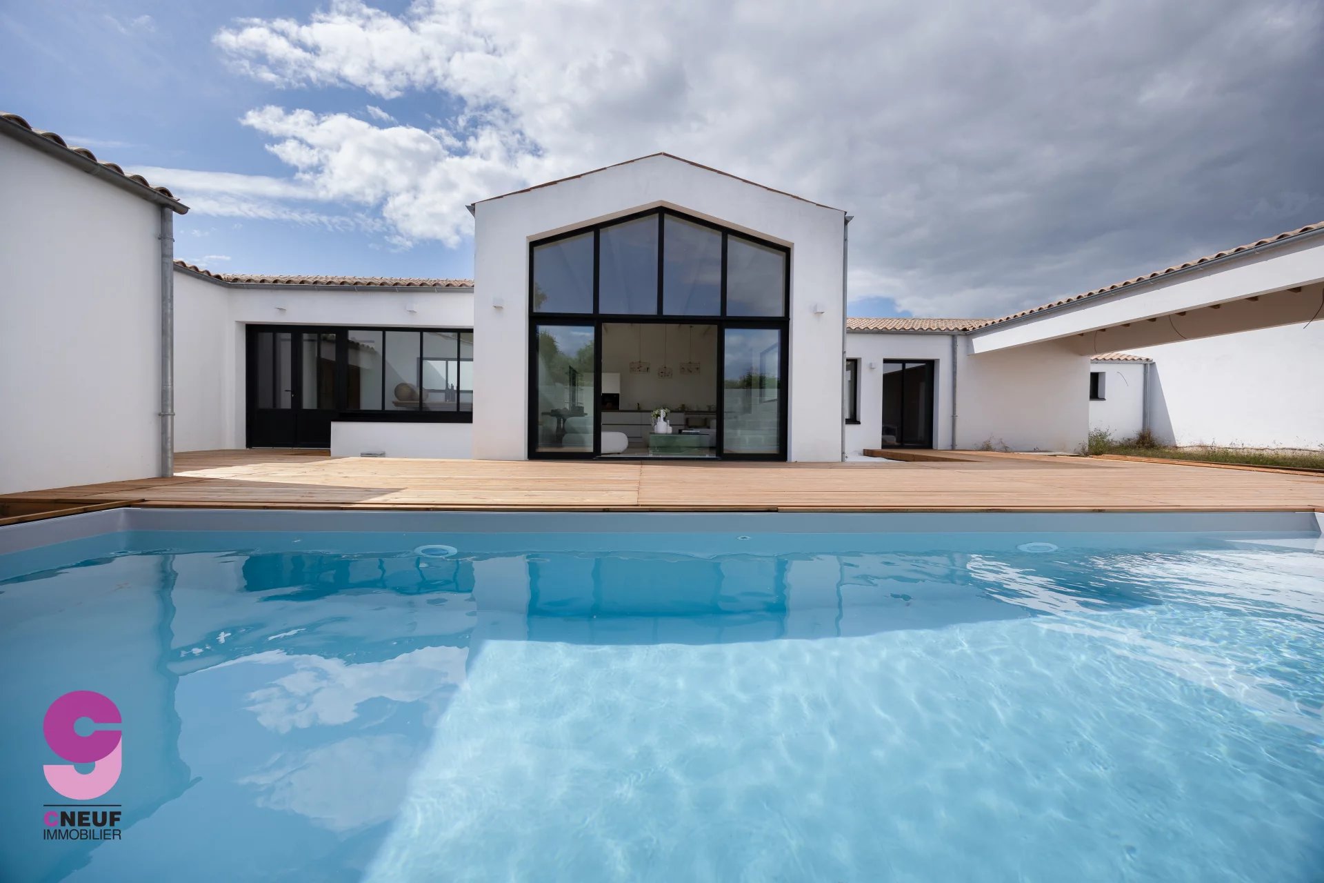 Maison d'architecte de plain-pied d'une surface habitable de 178m² en cours de finition (vendue finie) avec tous les commerces accessibles à pied, comprenant :
