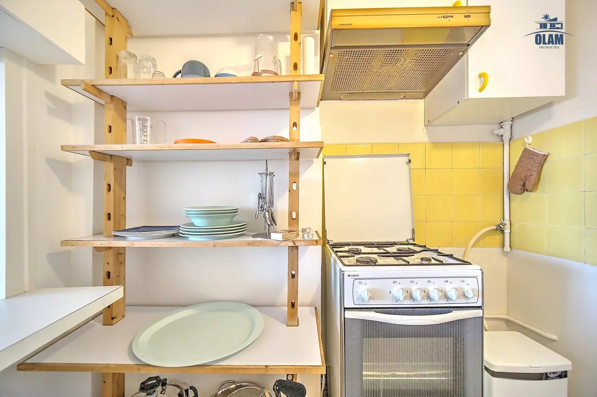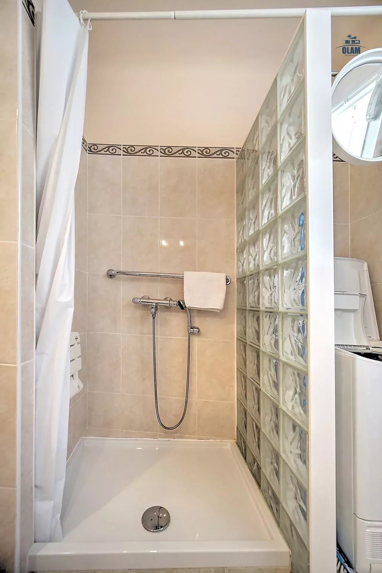 L'appartement se compose d'une belle chambre, d'une salle de douche indépendante, d'un WC, et d'un séjour avec cuisine semi ouverte attenante.