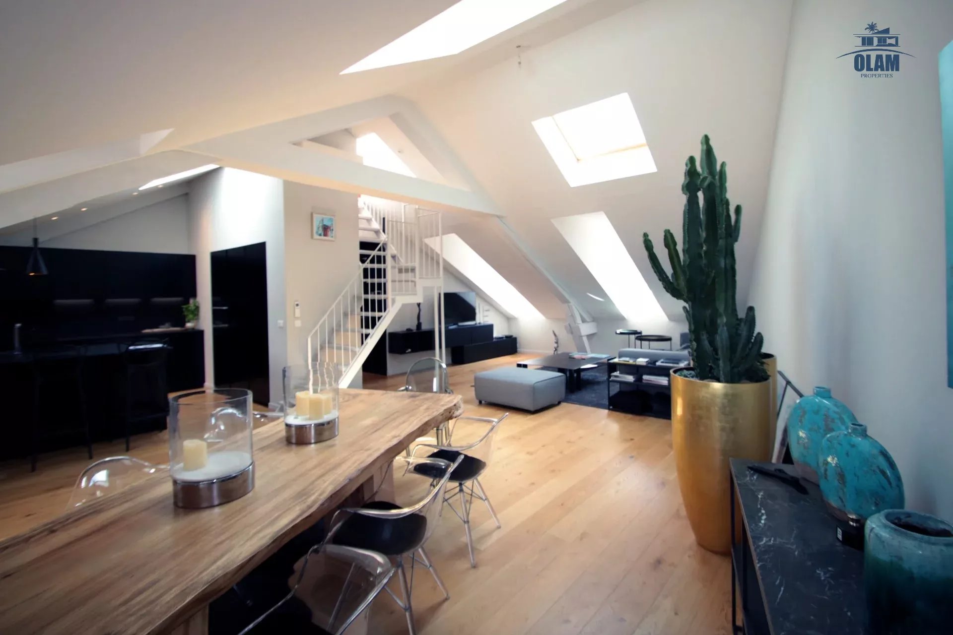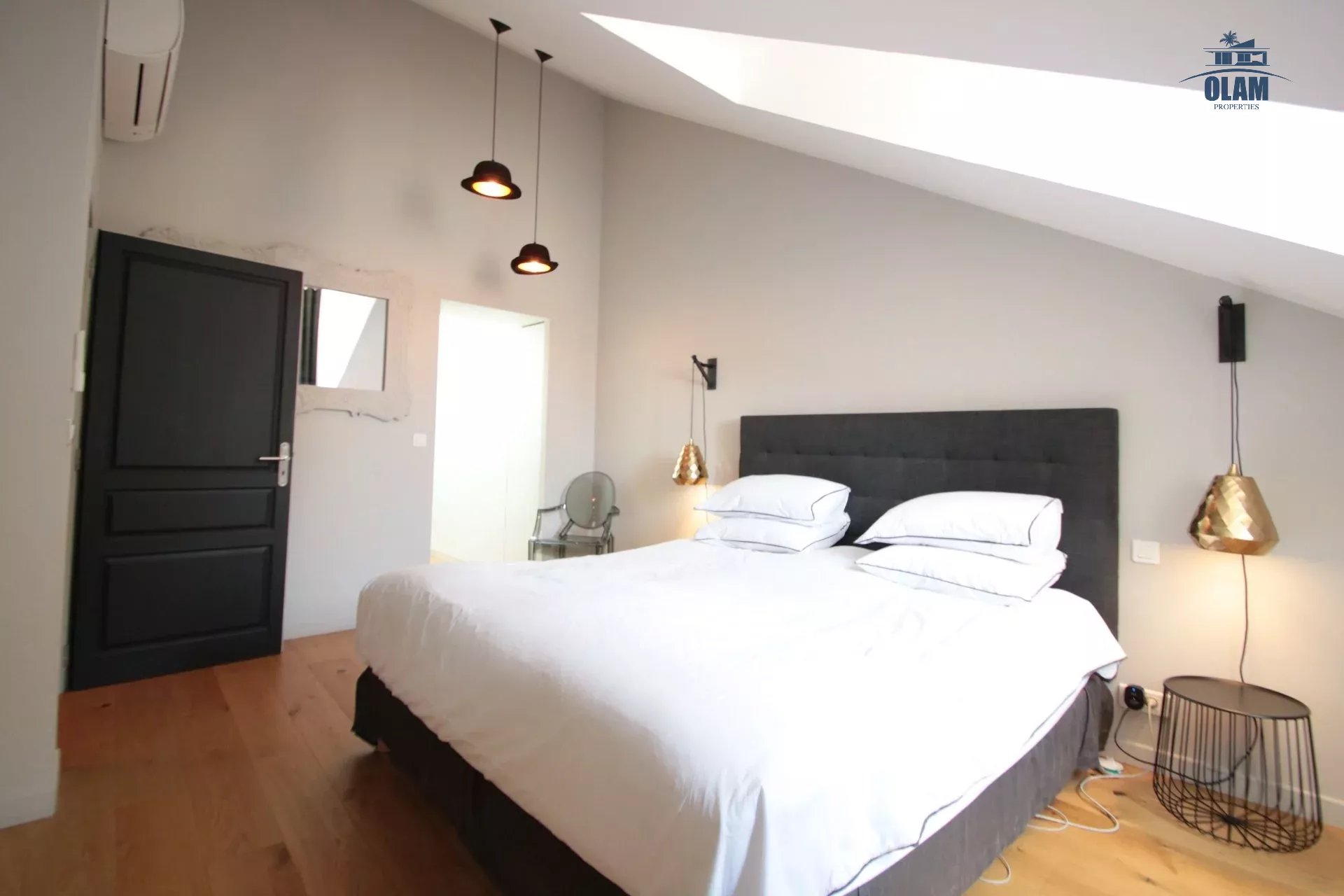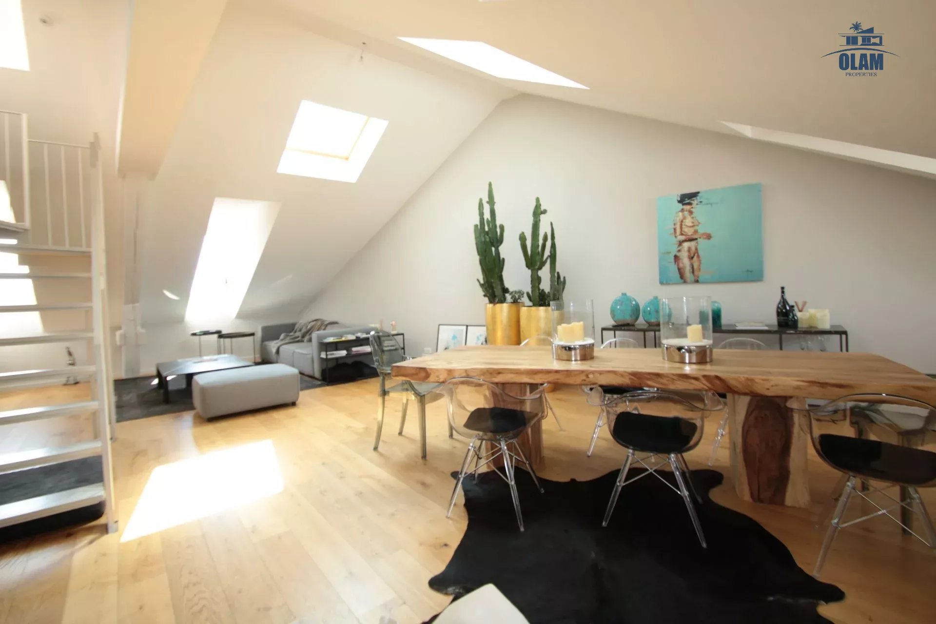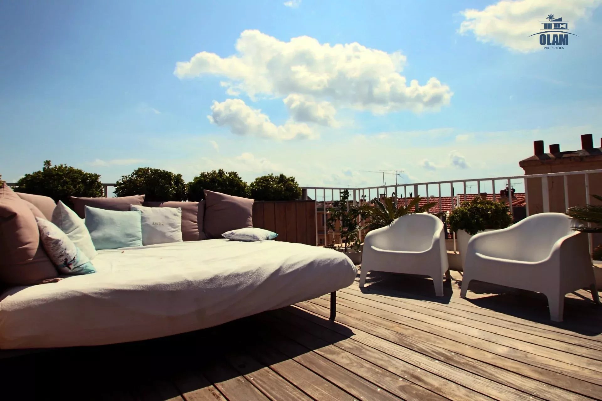 Magnifique 5P atypique et original sur Cannes. Situé au dernier étage d'un immeuble, cet appartement de 181m² vous offrira une vue incroyable sur le toit. Profitez d'un bain de soleil grâce à son solarium et les transats mis à disposition.