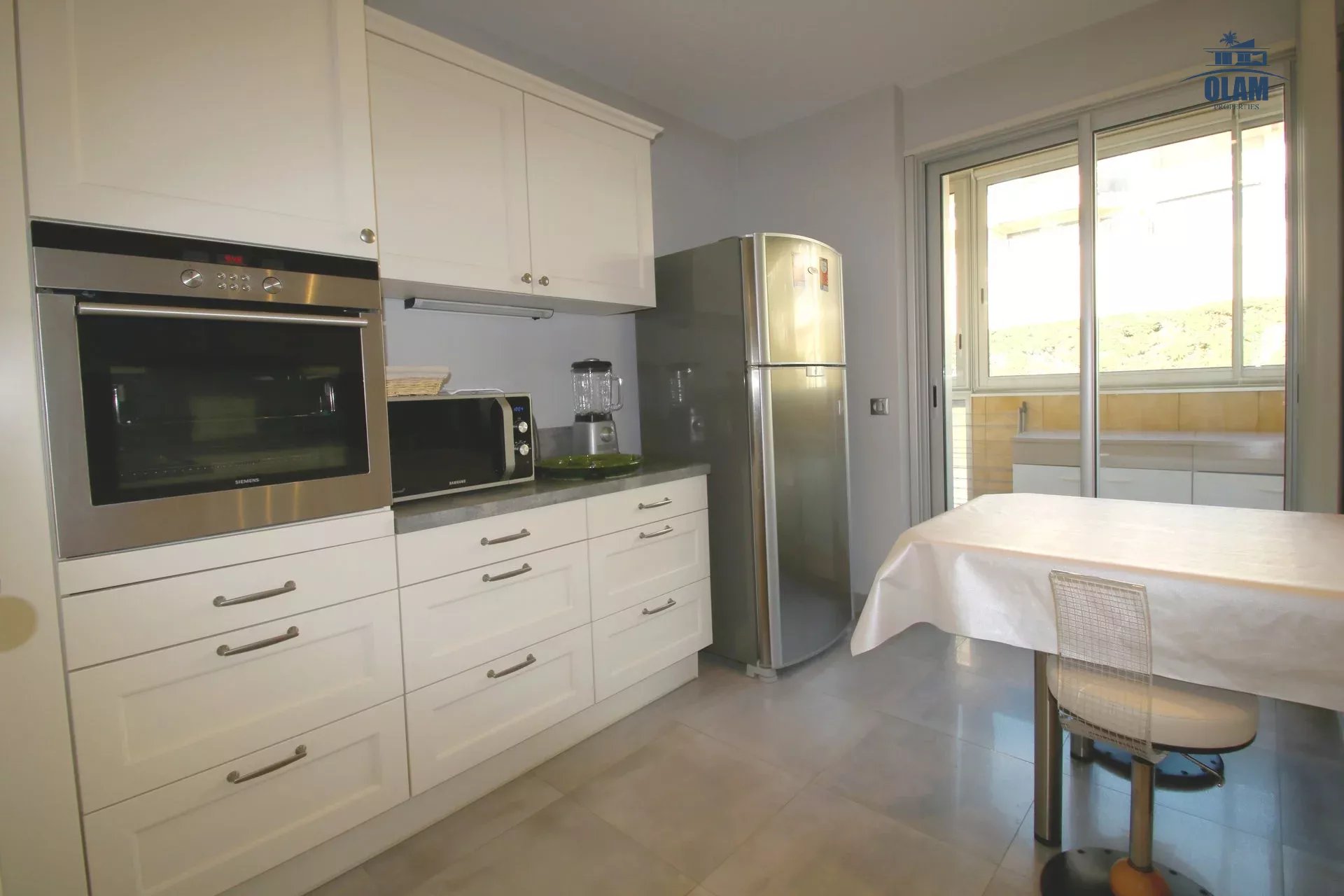 - Une cuisine tout équipée (four, frigo, four à micro-ondes, lave-vaisselle...) avec loggia