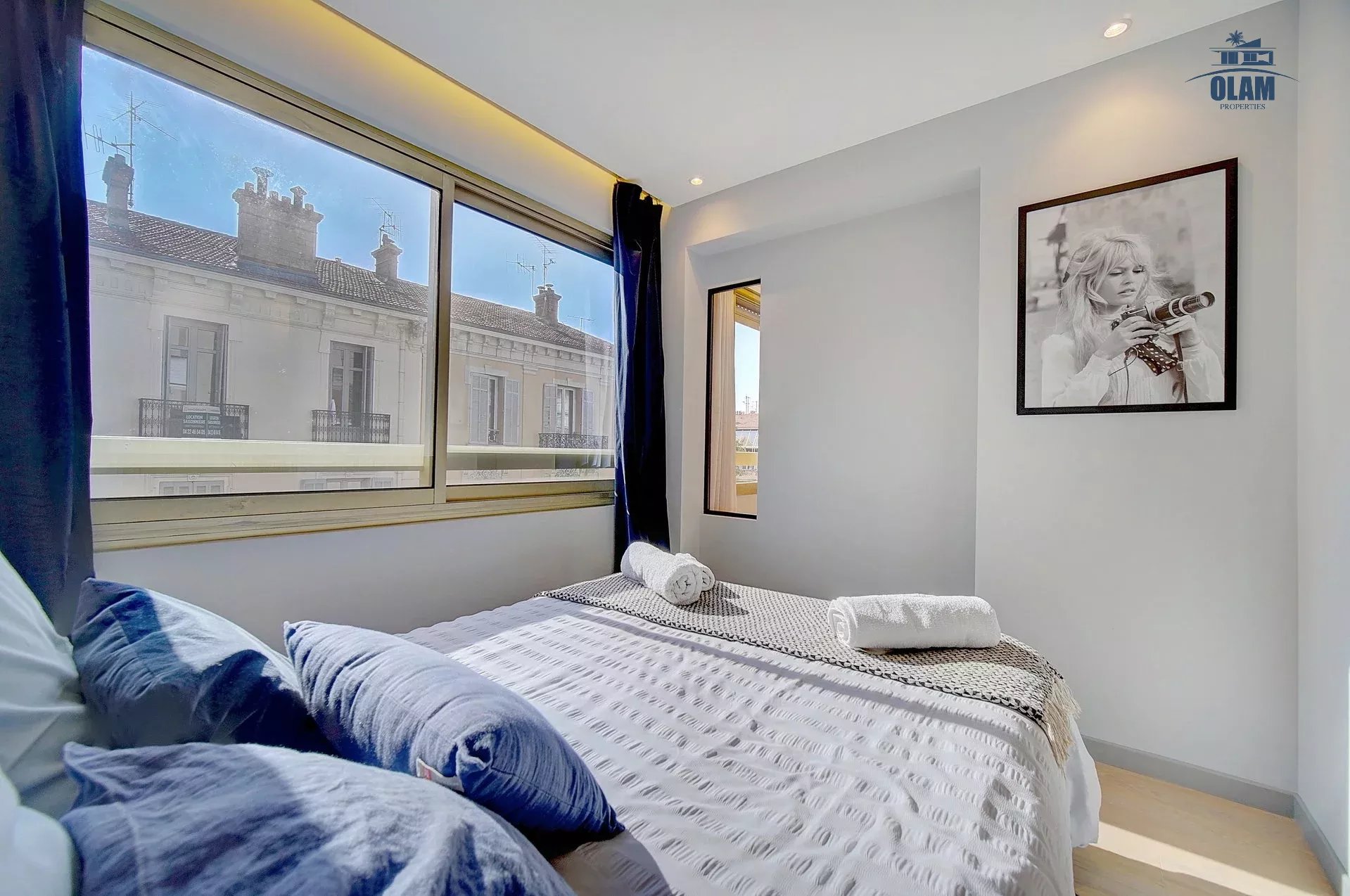 Superbe 3 pièces rénové avec goût en 2015 par un architecte d'intérieur. A proximité immédiate du centre ville de Cannes, de la Croisette et du Palais, rendant hommage à l'iconique Brigitte Bardot qui a longtemps illuminé la Croisette à l'occasion du Festival du Film!