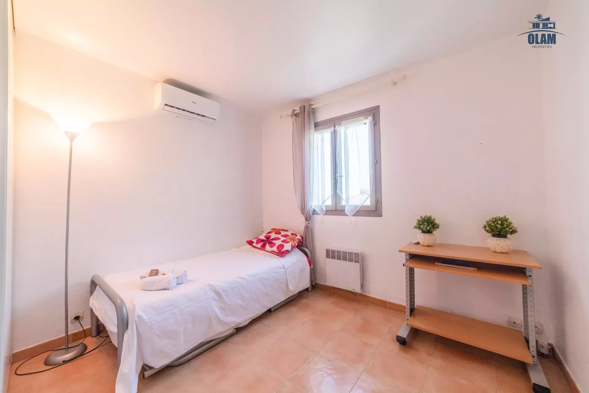 Organisée sur 2 niveaux, elle se compose au rez de chaussée d'une vaste chambre avec rangements et salle de bains attenante, d'une cuisine indépendante et d'un séjour avec coin repas, le tout ouvrant sur la grande terrasse et le jardin.