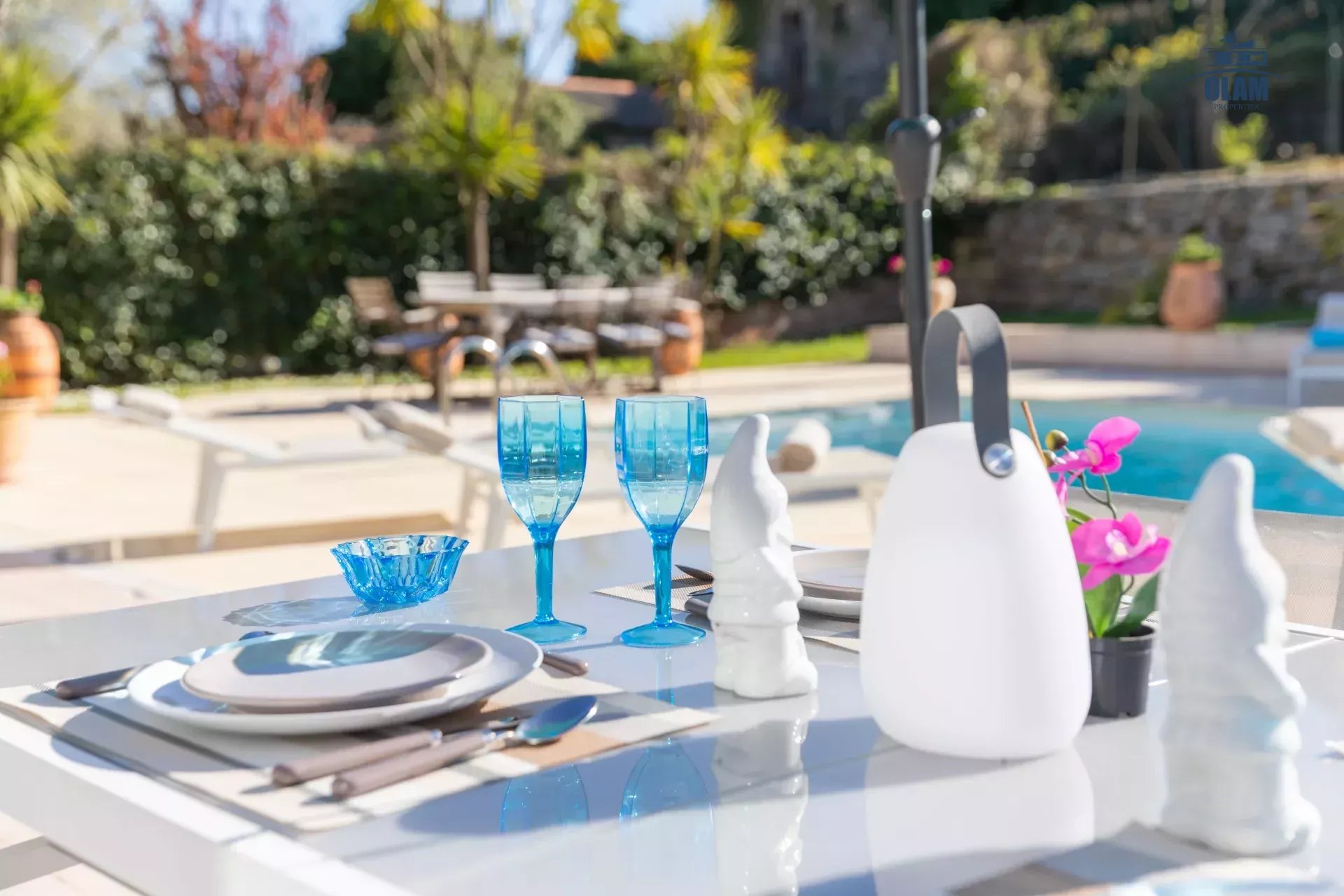 La piscine et le grand jardin avec mobilier d'extérieur, canapés, chaises longues, terrasse carrelée et les équipements complets de cette propriété sauront convaincre les clients les plus exigeants.