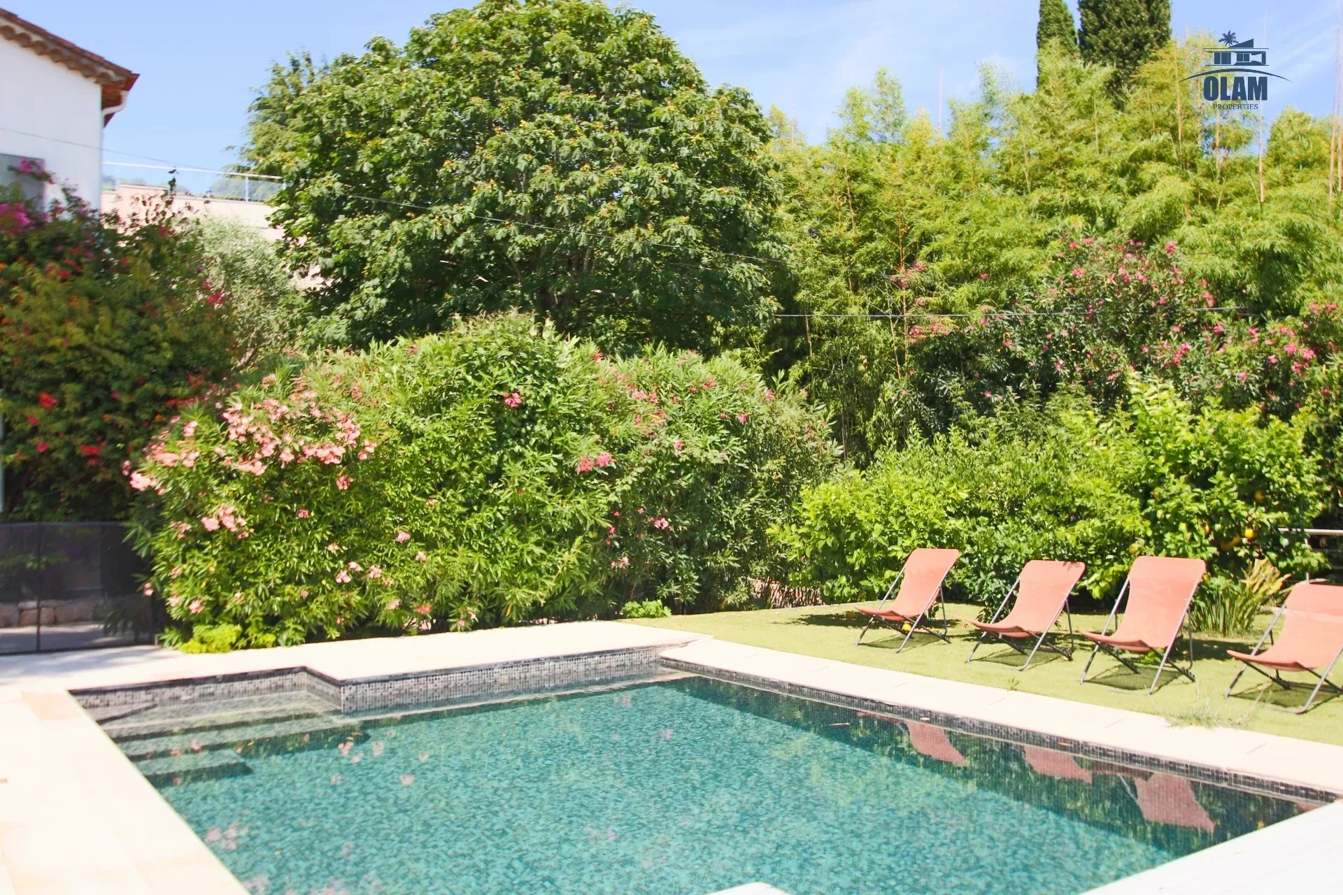 La propriété est totalement climatisée, toutes les fenêtres sont en double vitrage et ouvrent sur un très vaste jardin en restanques avec de nombreuses essences d'arbre, et bien sûr une splendide piscine 7 x 4 sécurisée.