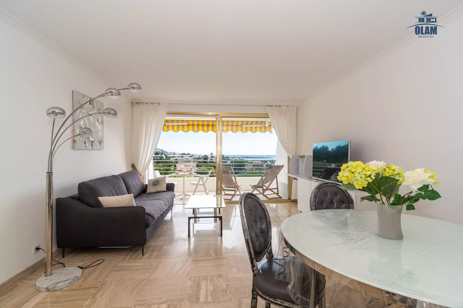 Vous serez charmé par ce bel appartement avec vue mer panoramique dans une résidence avec piscine, tennis et parc arboré présenté en exclusivité par Olam Properties, votre agence experte locations saisonnières à Cannes et alentours.