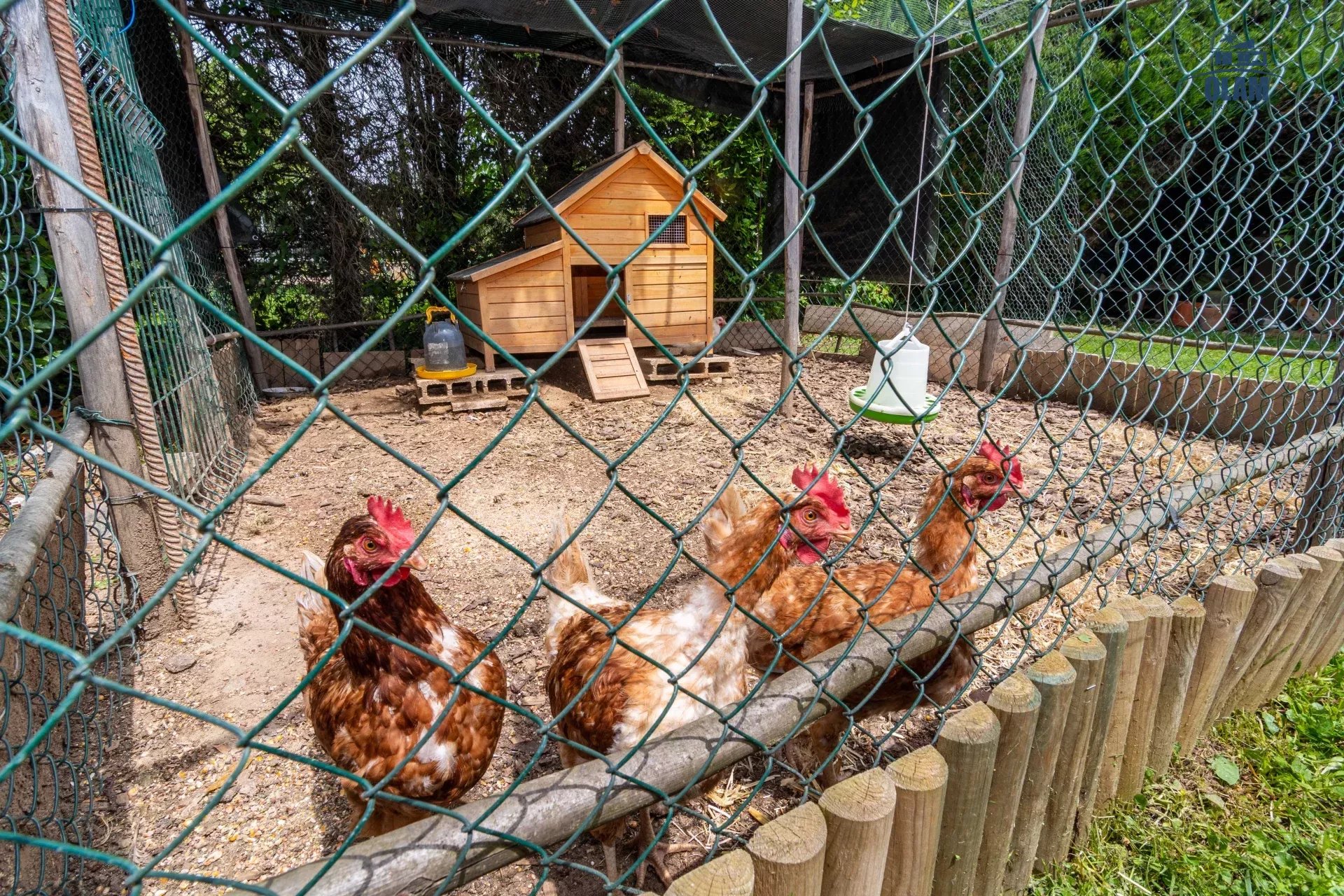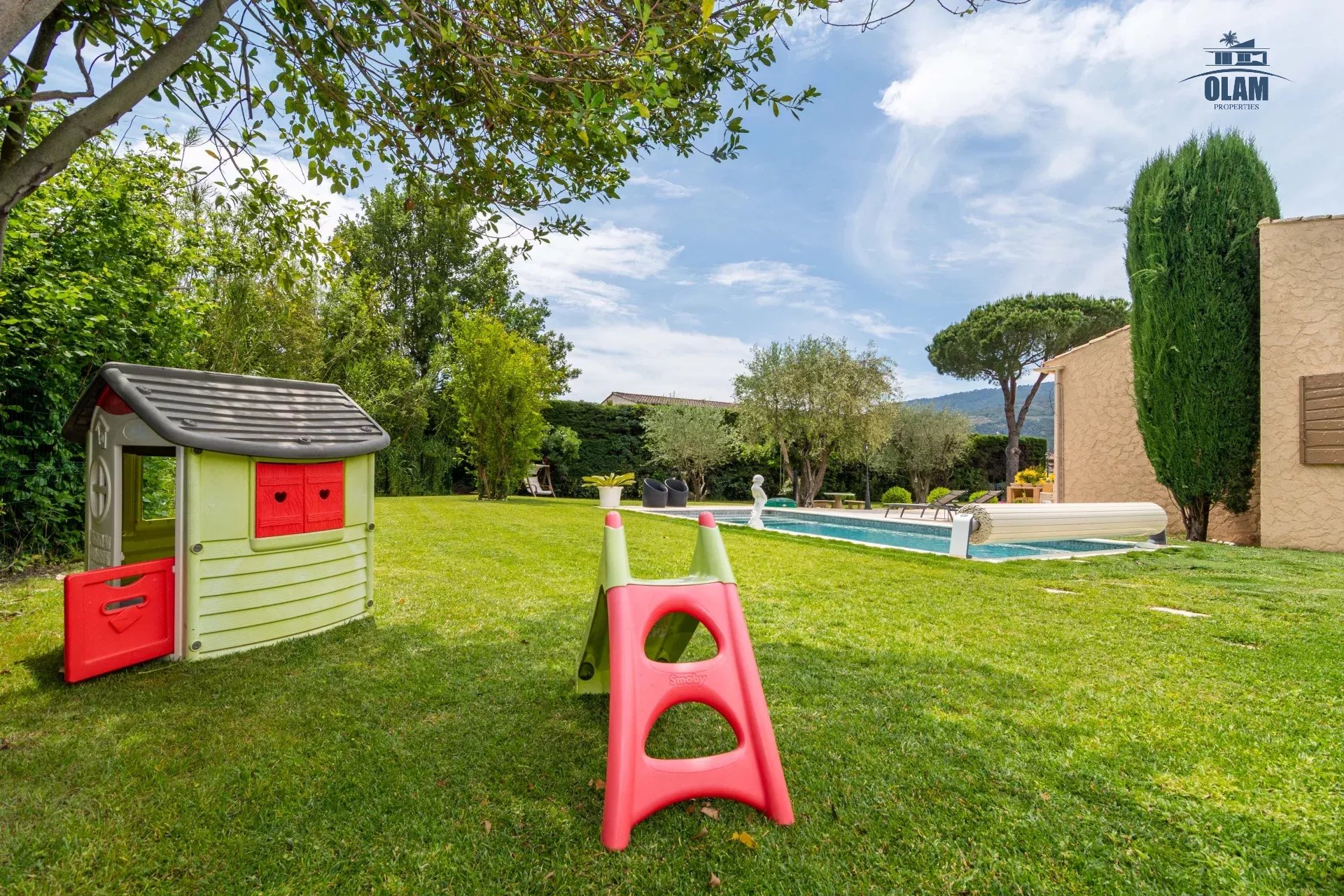 Extérieur : piscine 9 m x 4 m, jardin avec partie ombragée, balançoire, coin lounge, terrasse 100 m2, hamac, ...