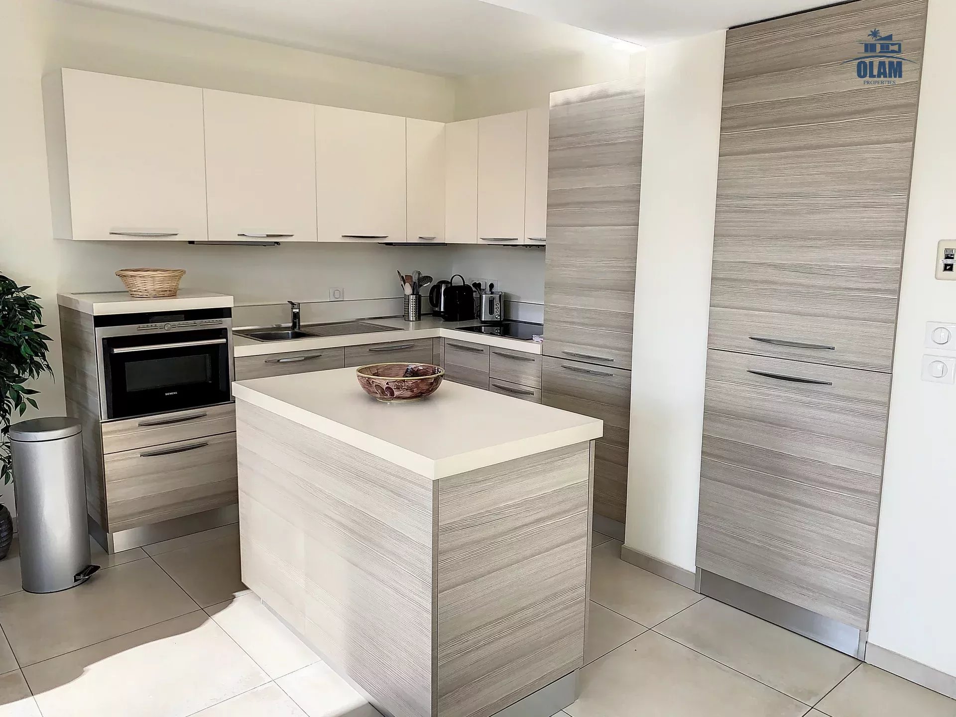 - 1 cuisine ouverte entièrement équipée et moderne, avec tout l'électroménager (four, micro ondes, plaque, lave linge, lave vaisselle, frigo, machine à café Nespresso)