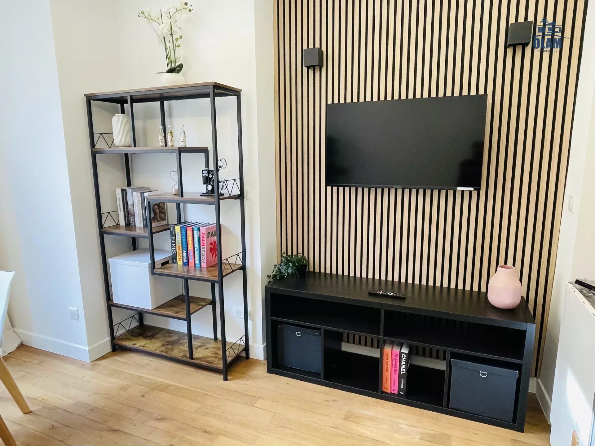 Logement climatisé pour votre confort, équipé de la fibre, de TV écrans plats, et situé dans un immeuble calme avec ascenseur.