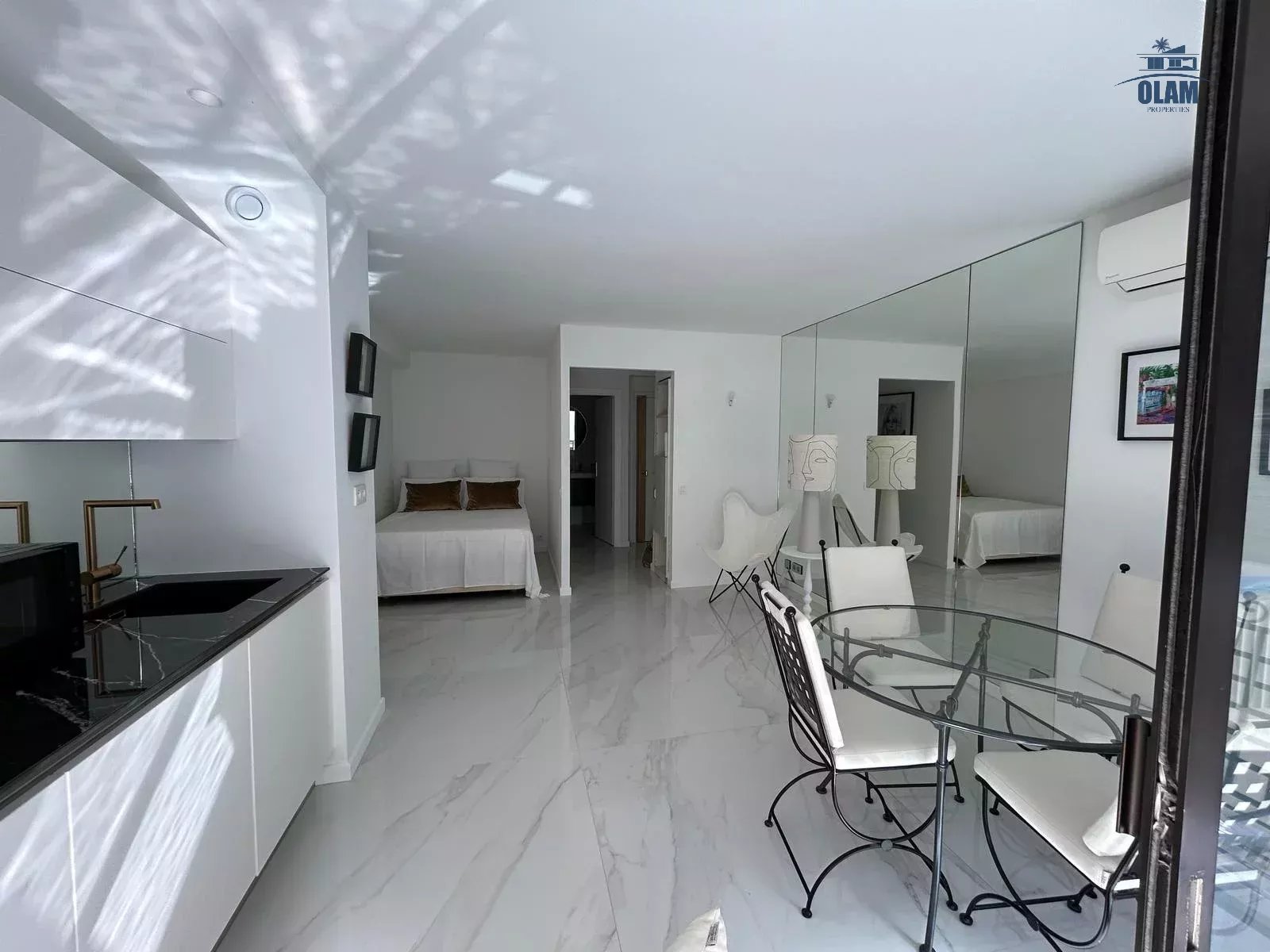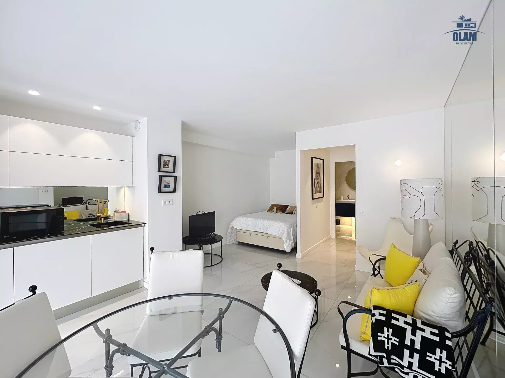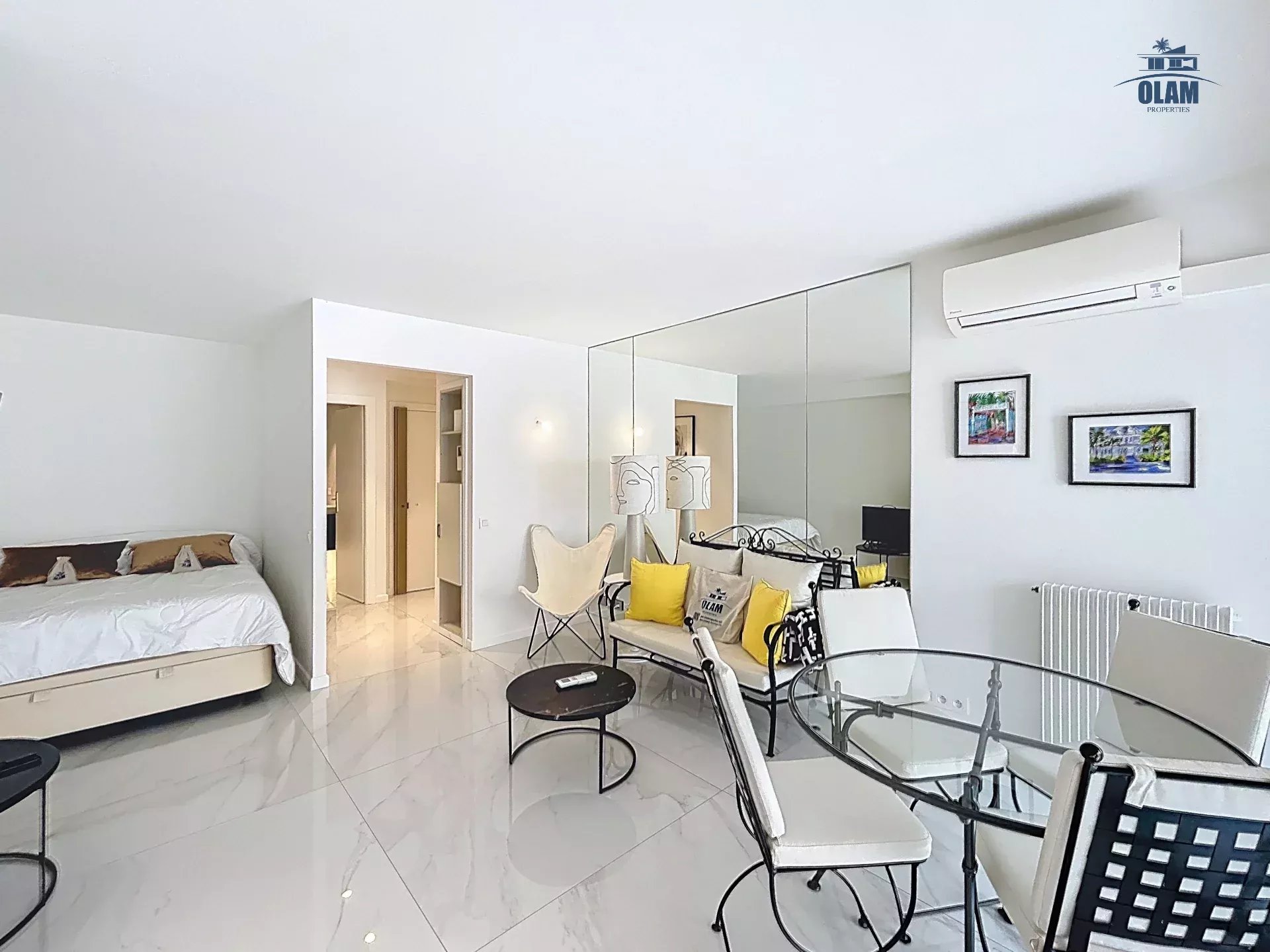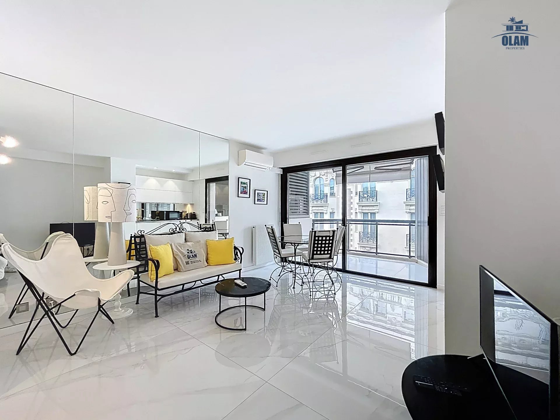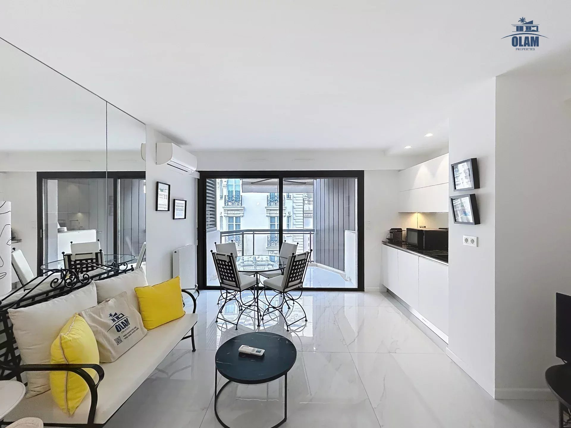 Situé entre la Croisette, et la rue d'antibes. L'appartement est situé au 6e étage (avec ascenseur) au sein d'une résidence sécurisée. Son emplacement permet de rejoindre le boulevard de la Croisette en moins d'une minute à pieds. Cet appartement de 35m2 est composé d'une pièce à vivre avec table pour les repas, une cuisine ouverte équipée (four, réfrigérateur, congélateur, plaque de cuisso, cafetière nespresso, bouilloire,...) un coin nuit (ouvert) avec un lit double (160cm), une salle de douche avec wc. Internet wifi - Climatisation dans le salon - Terrasse avec aperçu mer latéral. Cet appartement idéalement situé sera parfait pour les vacances ou séjours professionnels.