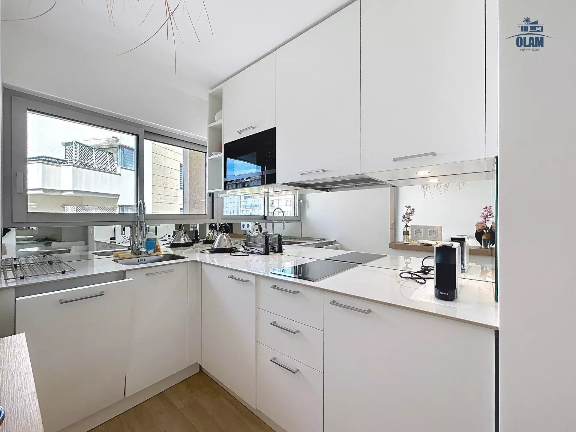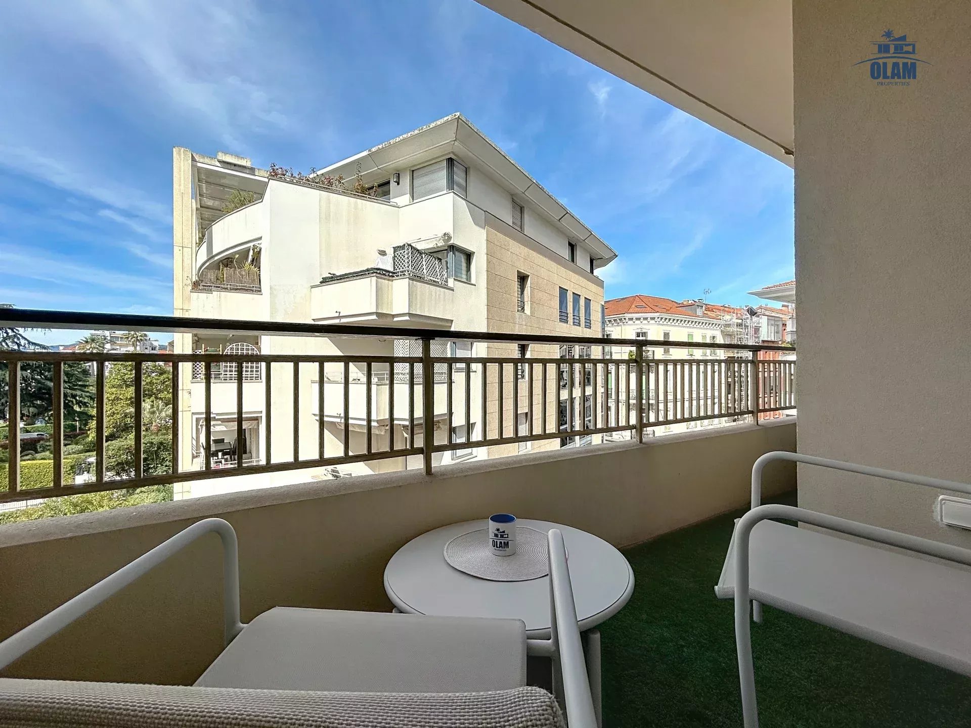 Situé entre la Croisette, et la rue d'antibes. L'appartement est situé au 4e étage (avec ascenseur) au sein d'une résidence sécurisée. Son emplacement permet de rejoindre le boulevard de la Croisette en moins de trois minutes à pieds.