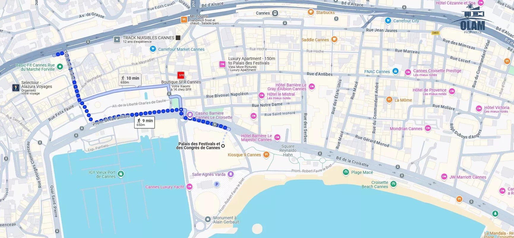 Le logement est situé dans le quartier du Marché Forville, à seulement quelques minutes à pied du Palais et des premières plages.
