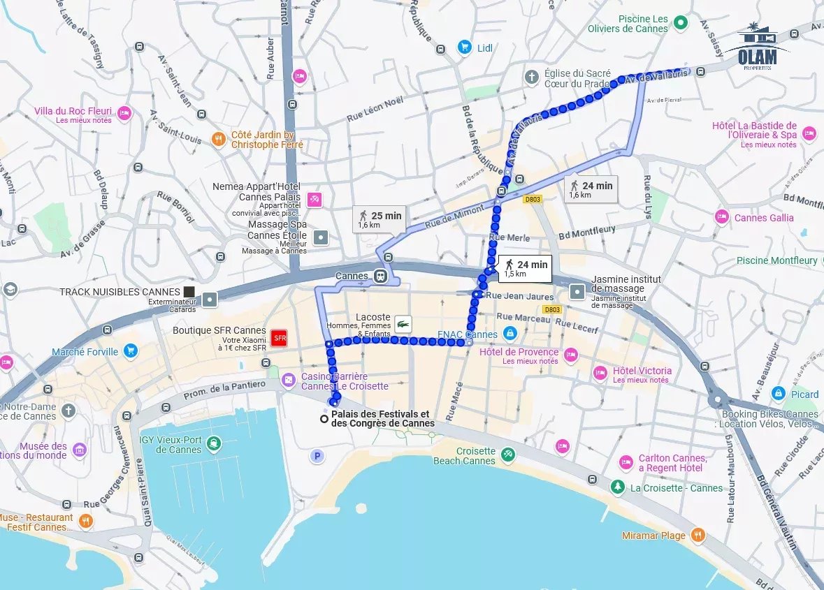 - À quelques minutes des plages de sable fin et de la mythique Croisette, où vous pourrez flâner le long de la mer et admirer les yachts majestueux.