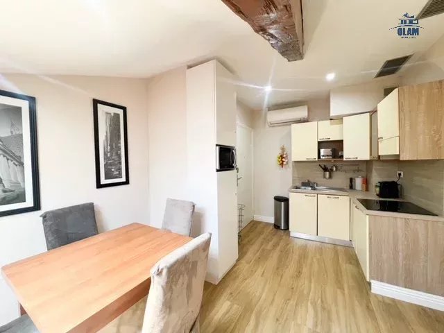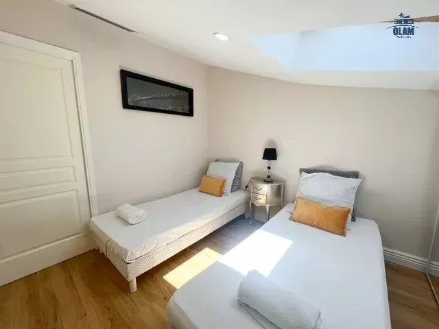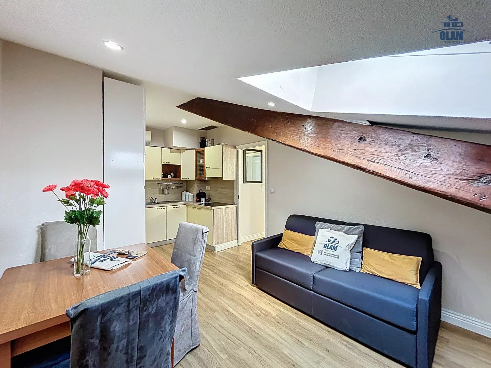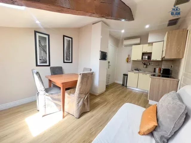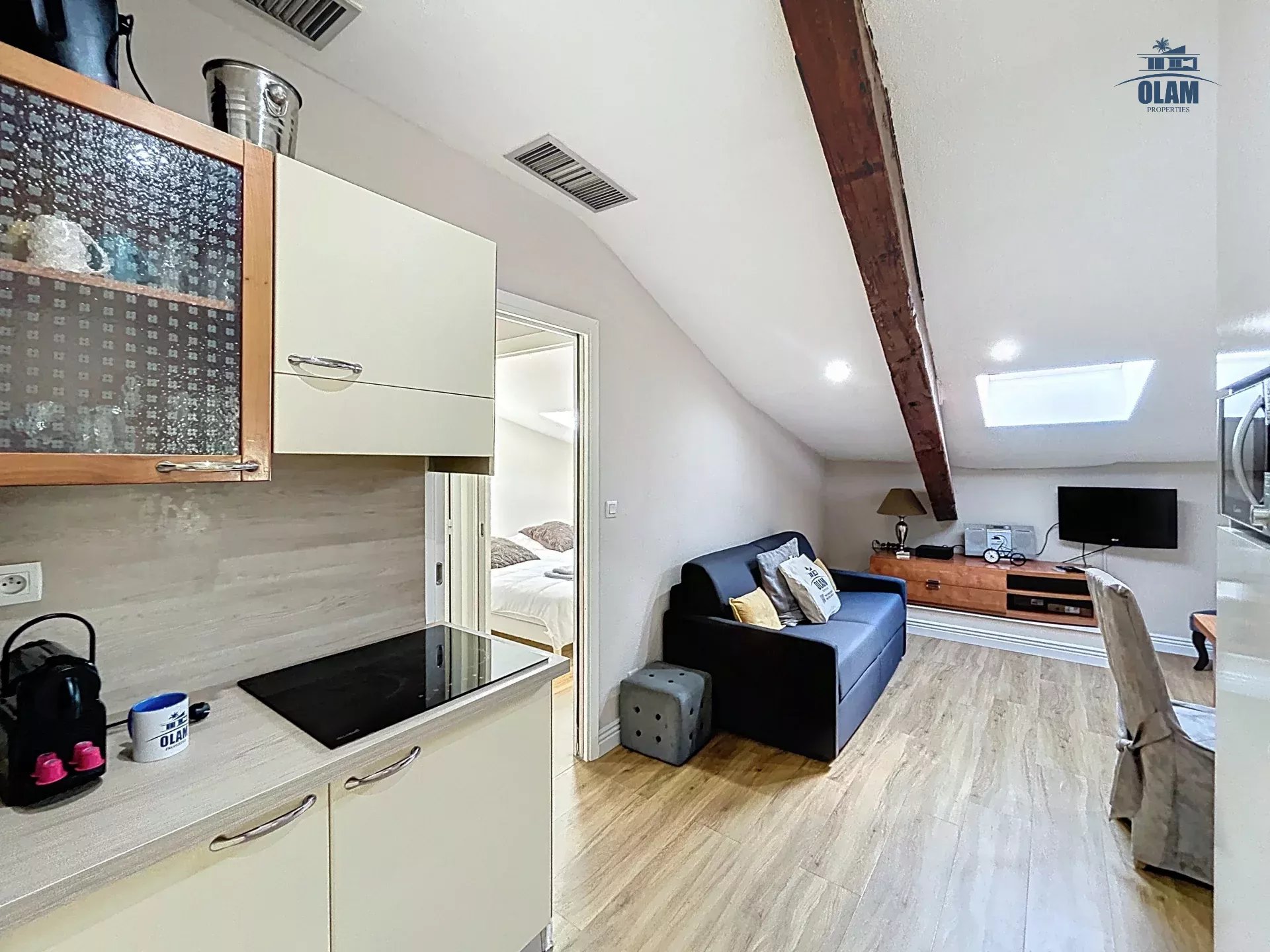 Ce logement est situé au 4ème étage (avec ascenseur jusqu'au 3e étage), d'une surface de 35m2. Il est composé d'une pièce de vie (canapé convertible pour 2 personnes), cuisine ouverte entièrement équipée (four, lave vaisselle, four micro-ondes, plaque de cuisson, réfrigérateur-congélateur, machine à café Nespresso,...). Dans la chambre un grand lit 180cm ou 2 lits simples 90cm, salle d'eau avec wc.