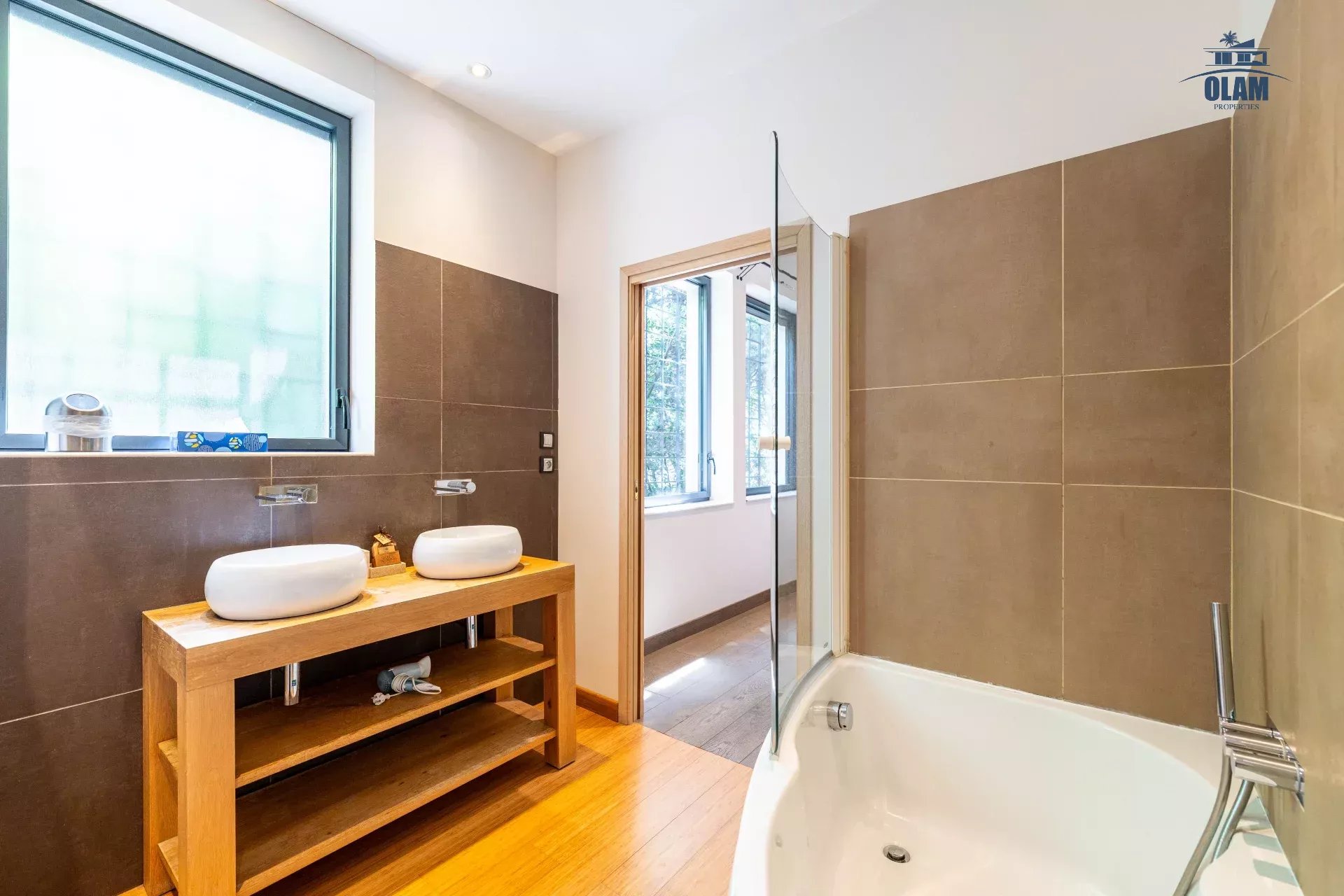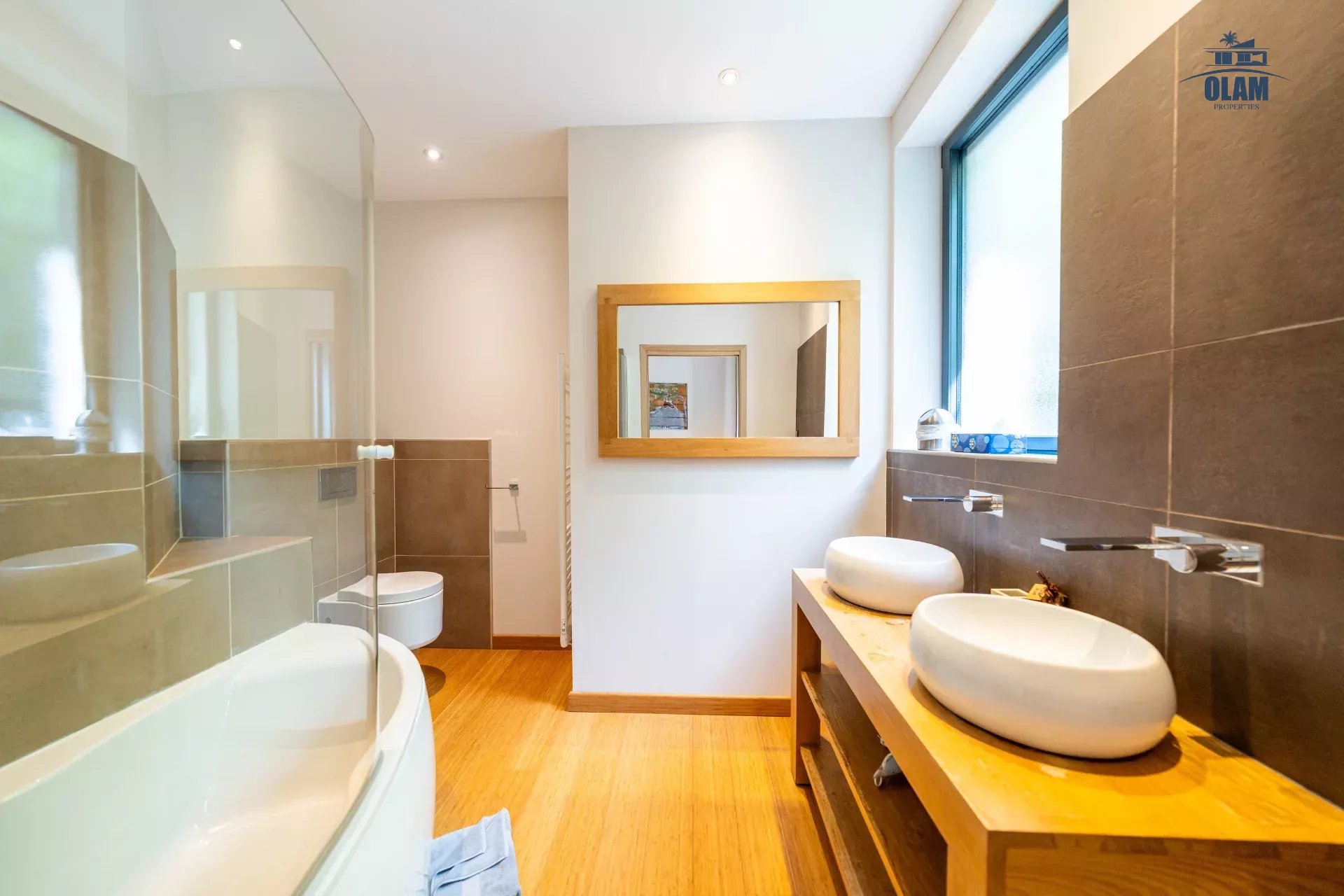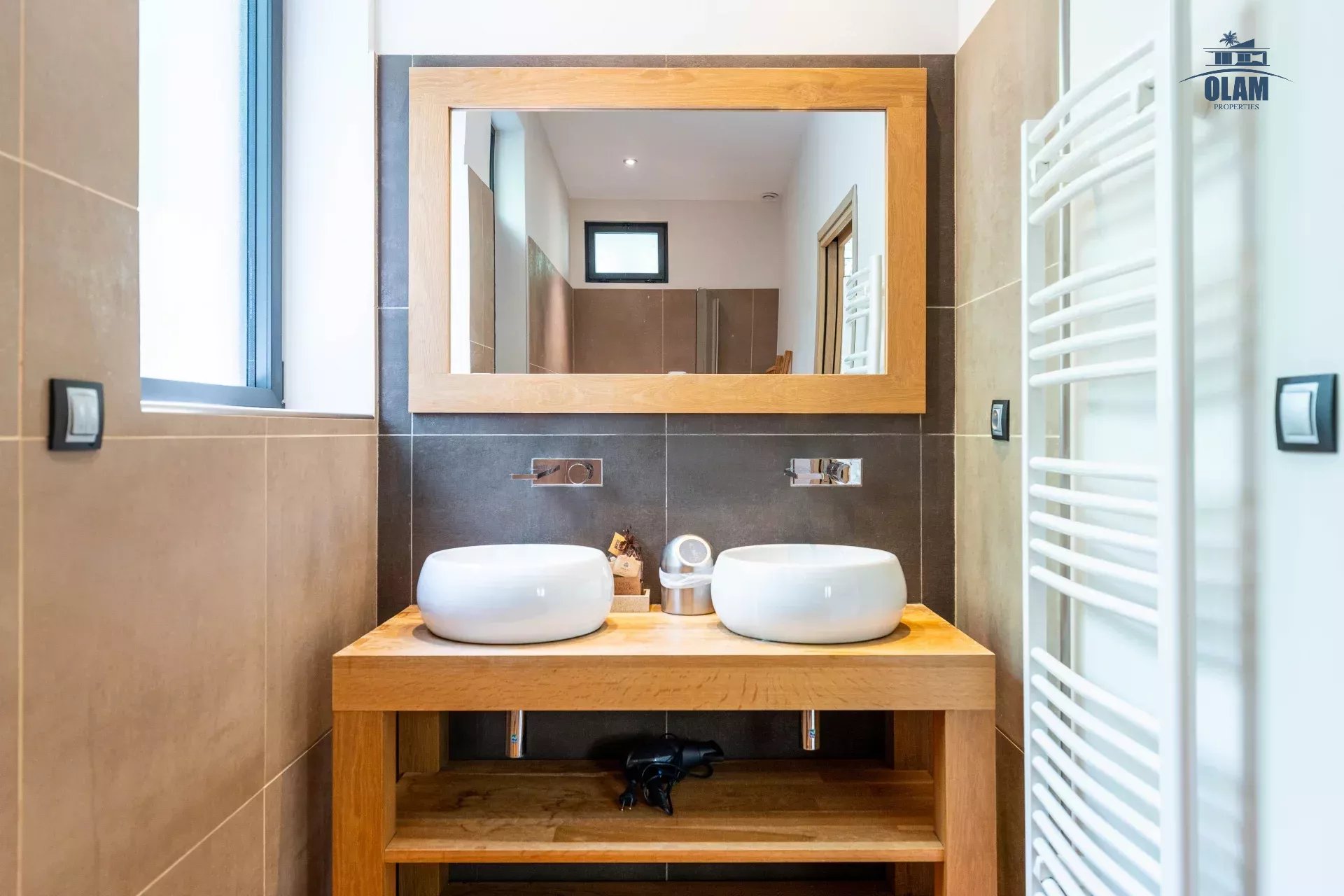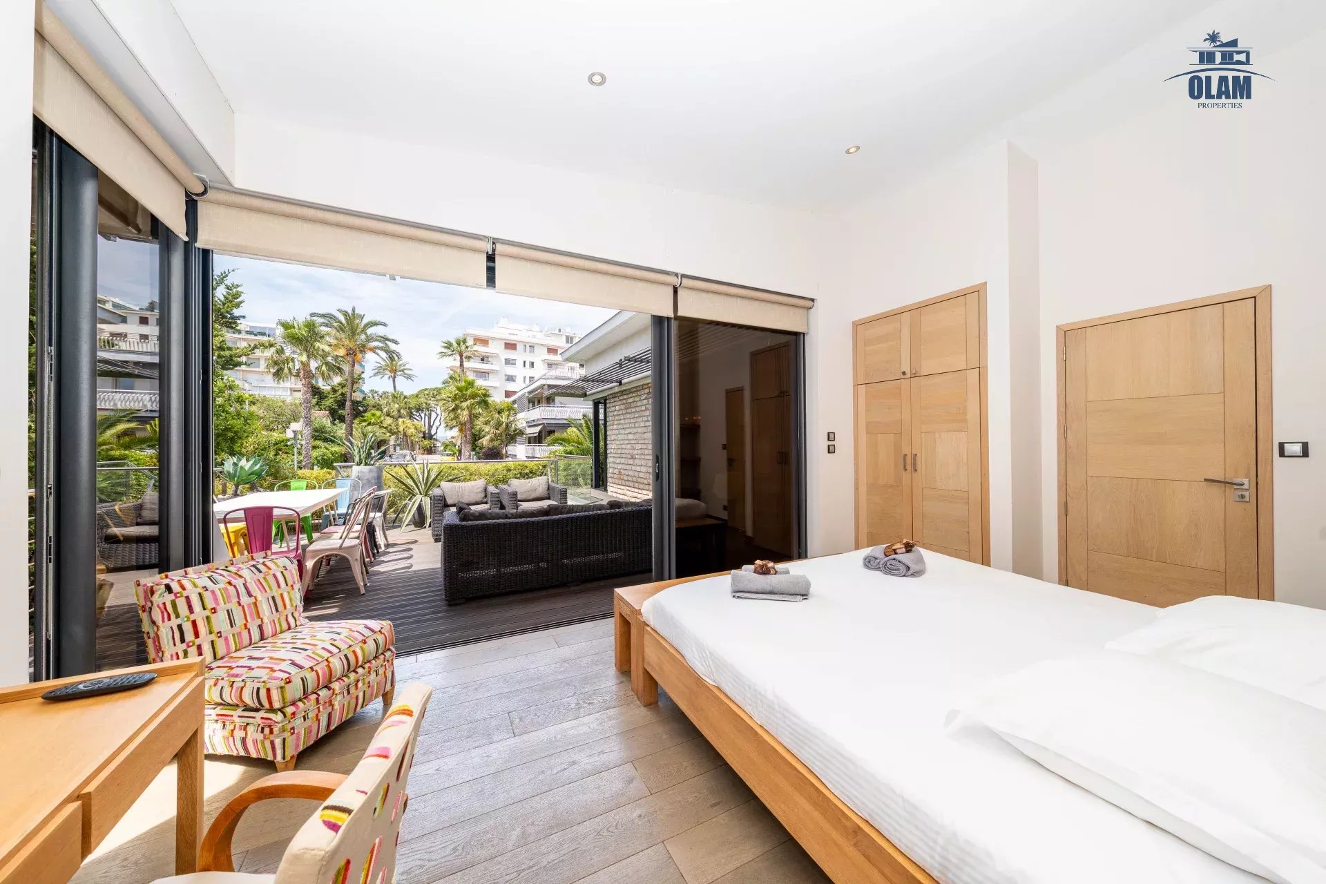 Pool level : junior bedroom #4 (2 single beds), junior bedroom #5 with double bed (180cm) with bathroom (bathtub) which can be shared with the junior, master bedroom #6 with double bed (180cm) with bathroom (bathtub), cinema room, laundry.