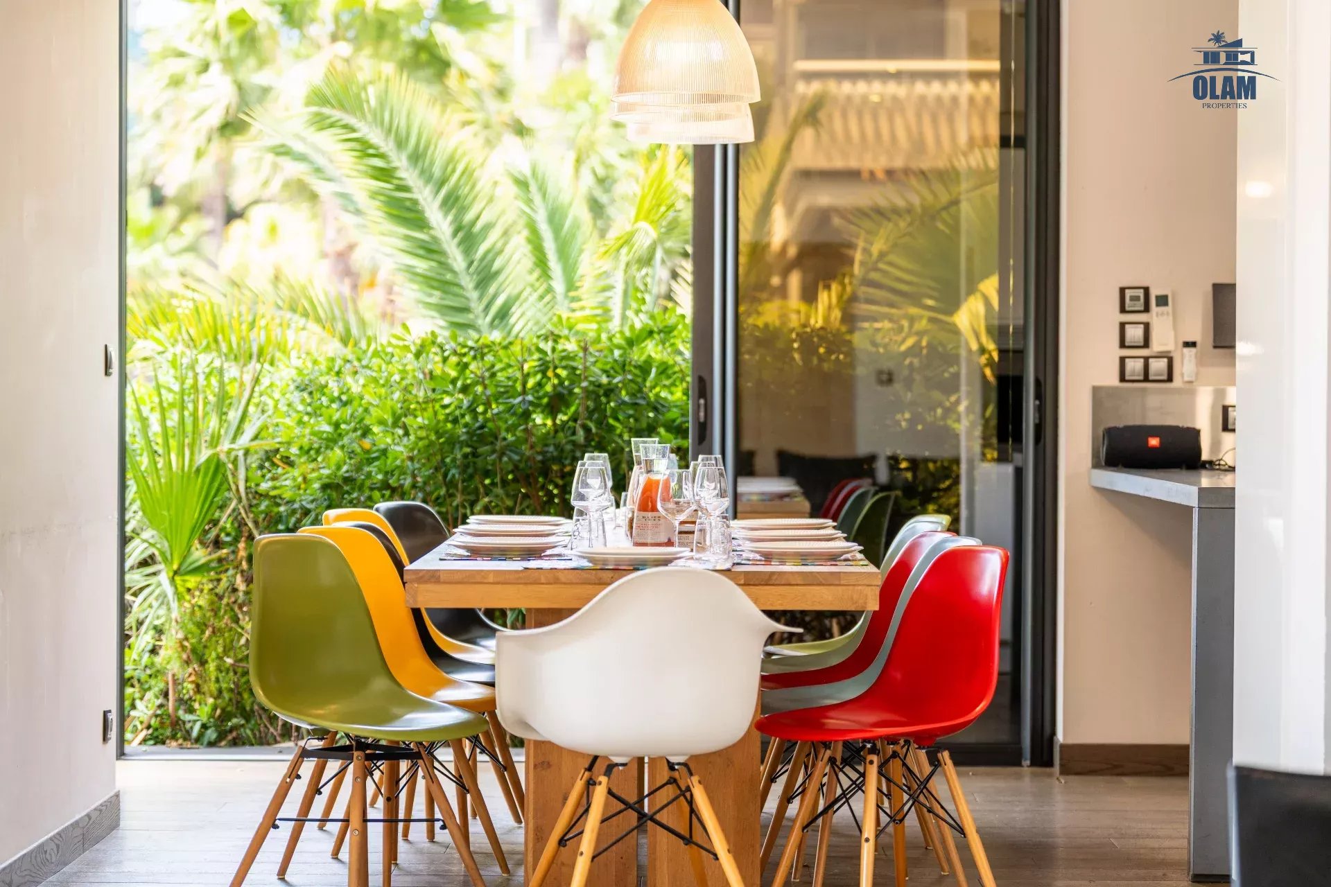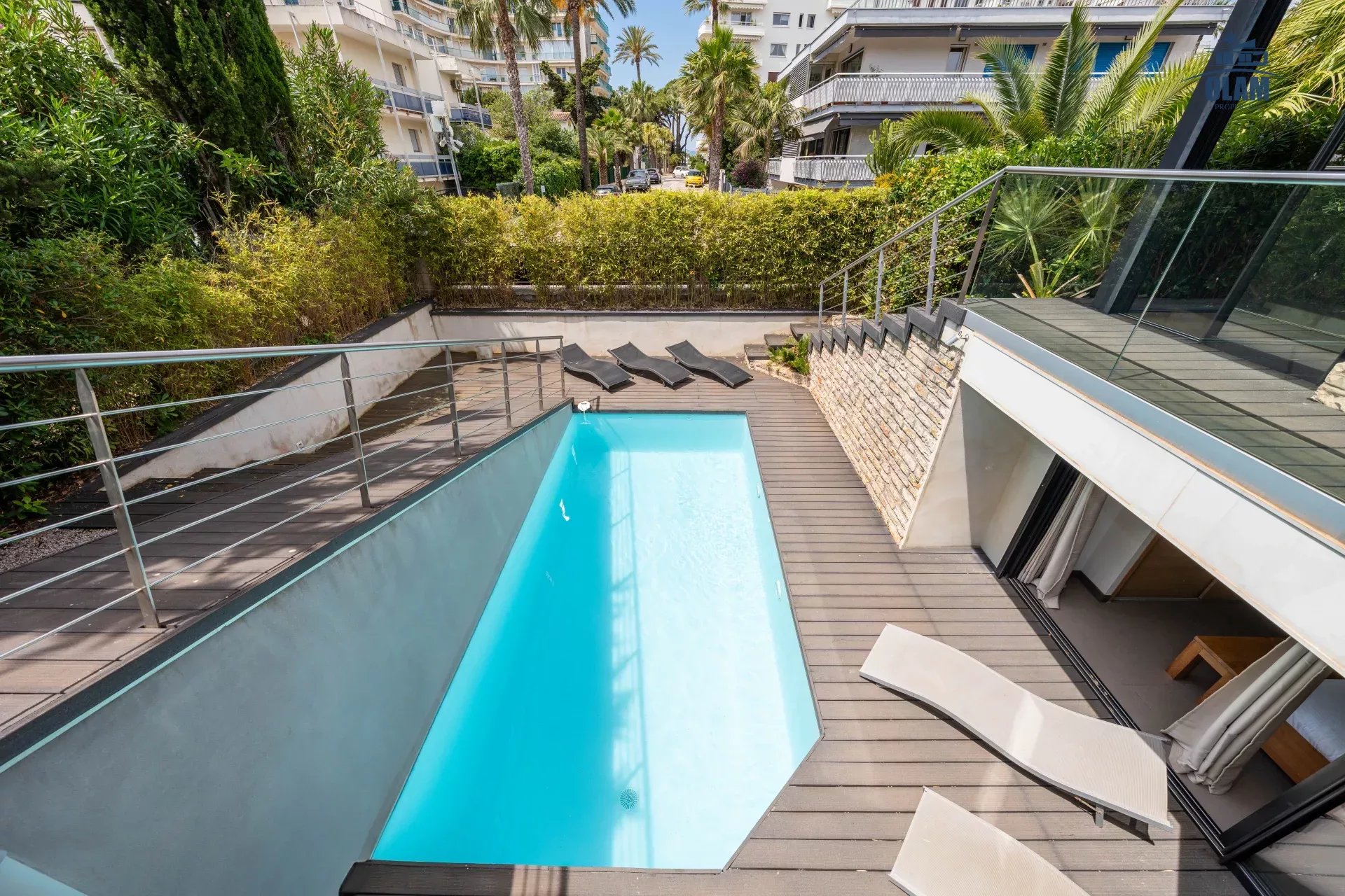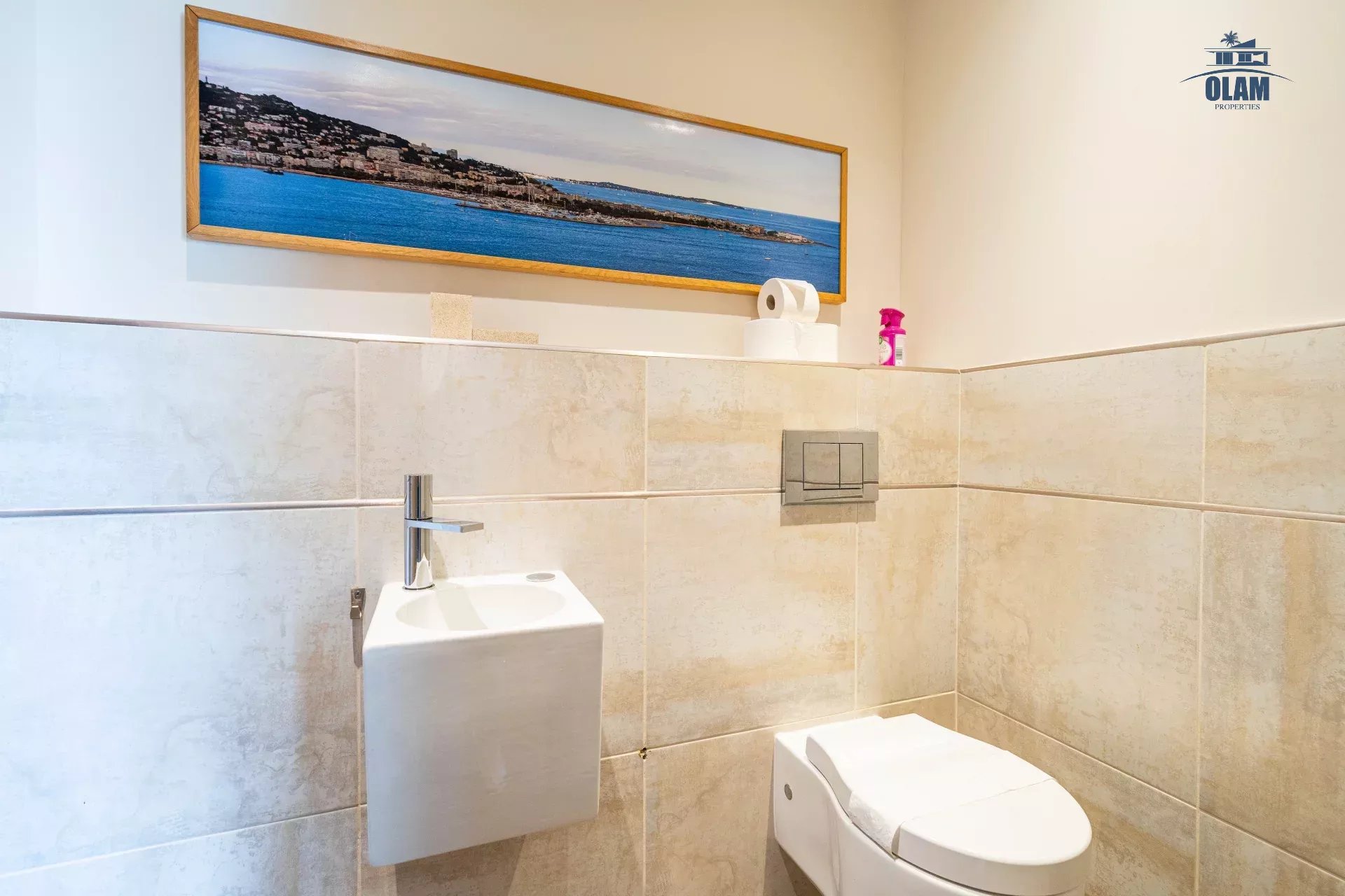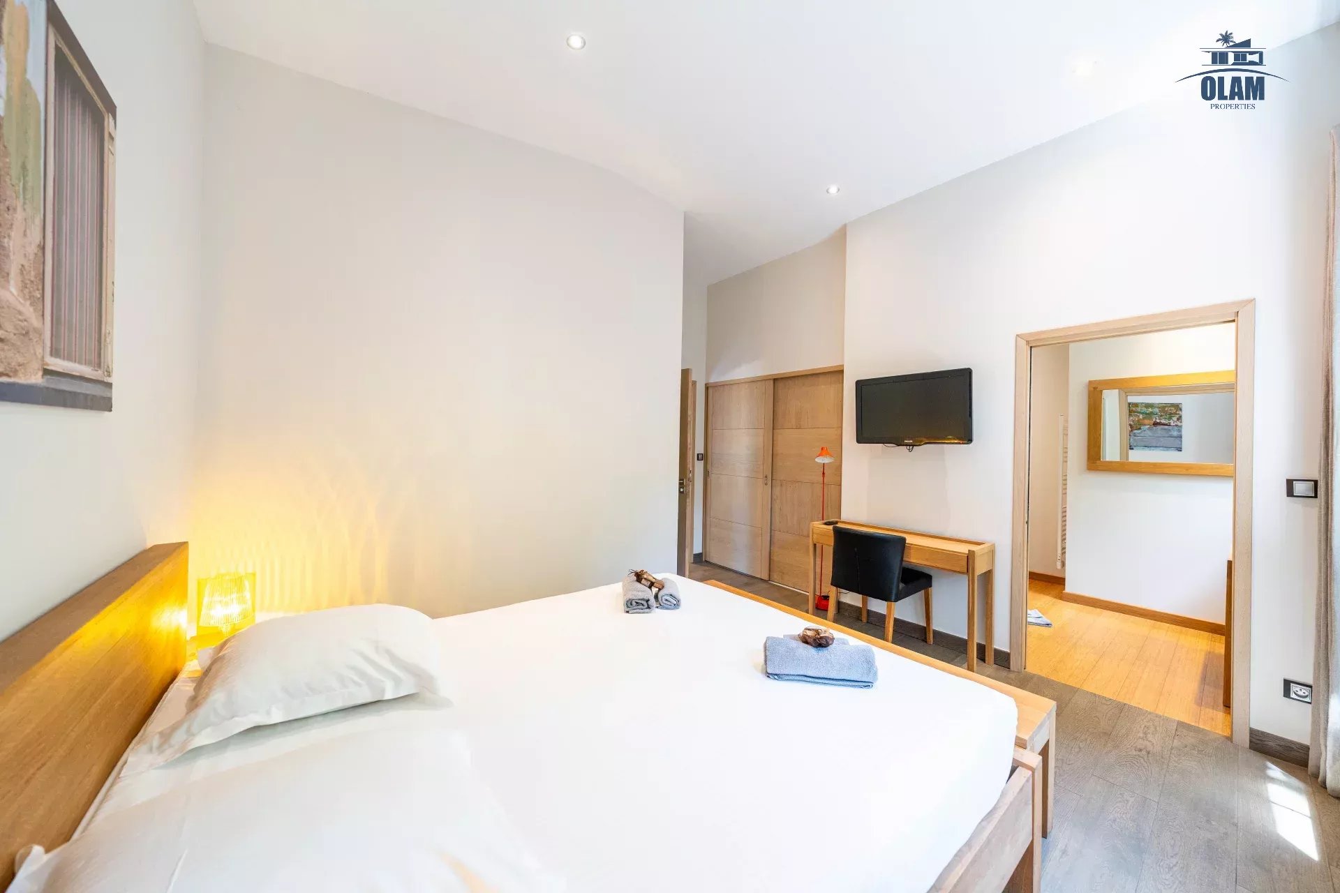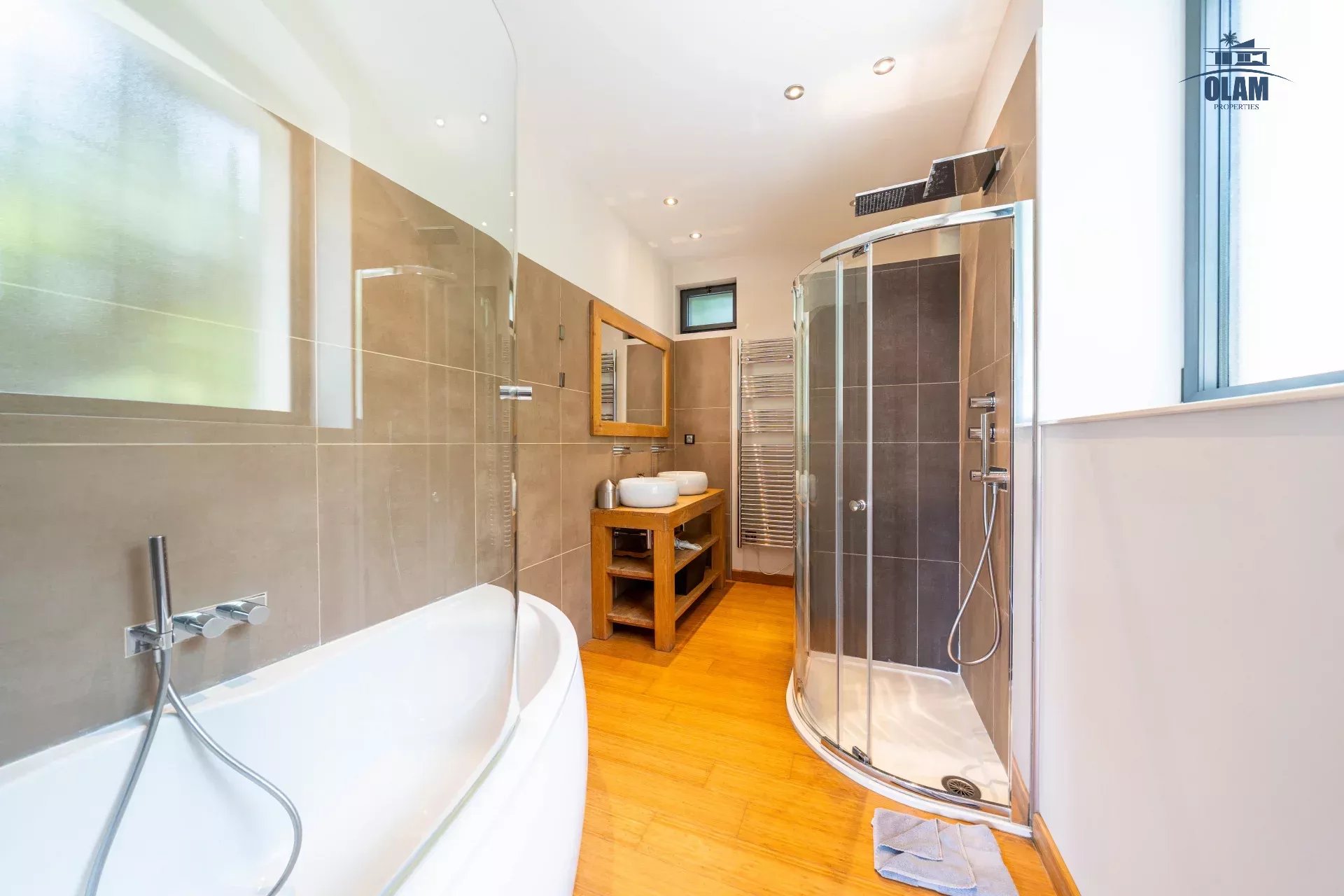 Pool level : junior bedroom #4 (2 single beds), junior bedroom #5 with double bed (180cm) with bathroom (bathtub) which can be shared with the junior, master bedroom #6 with double bed (180cm) with bathroom (bathtub), cinema room, laundry.