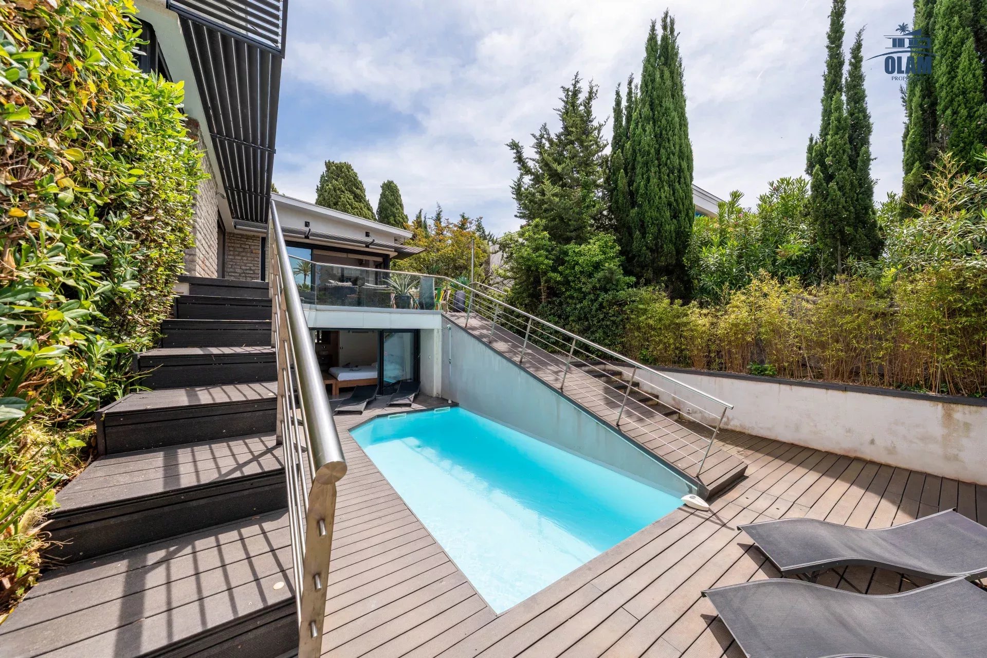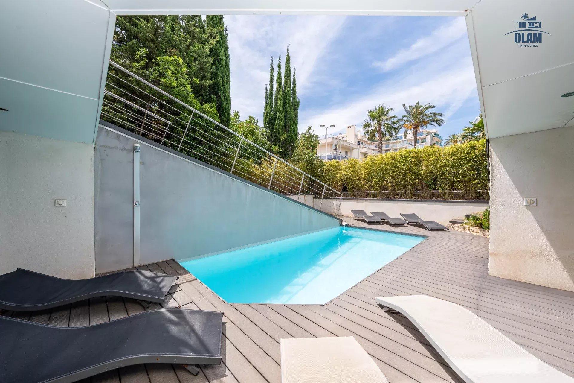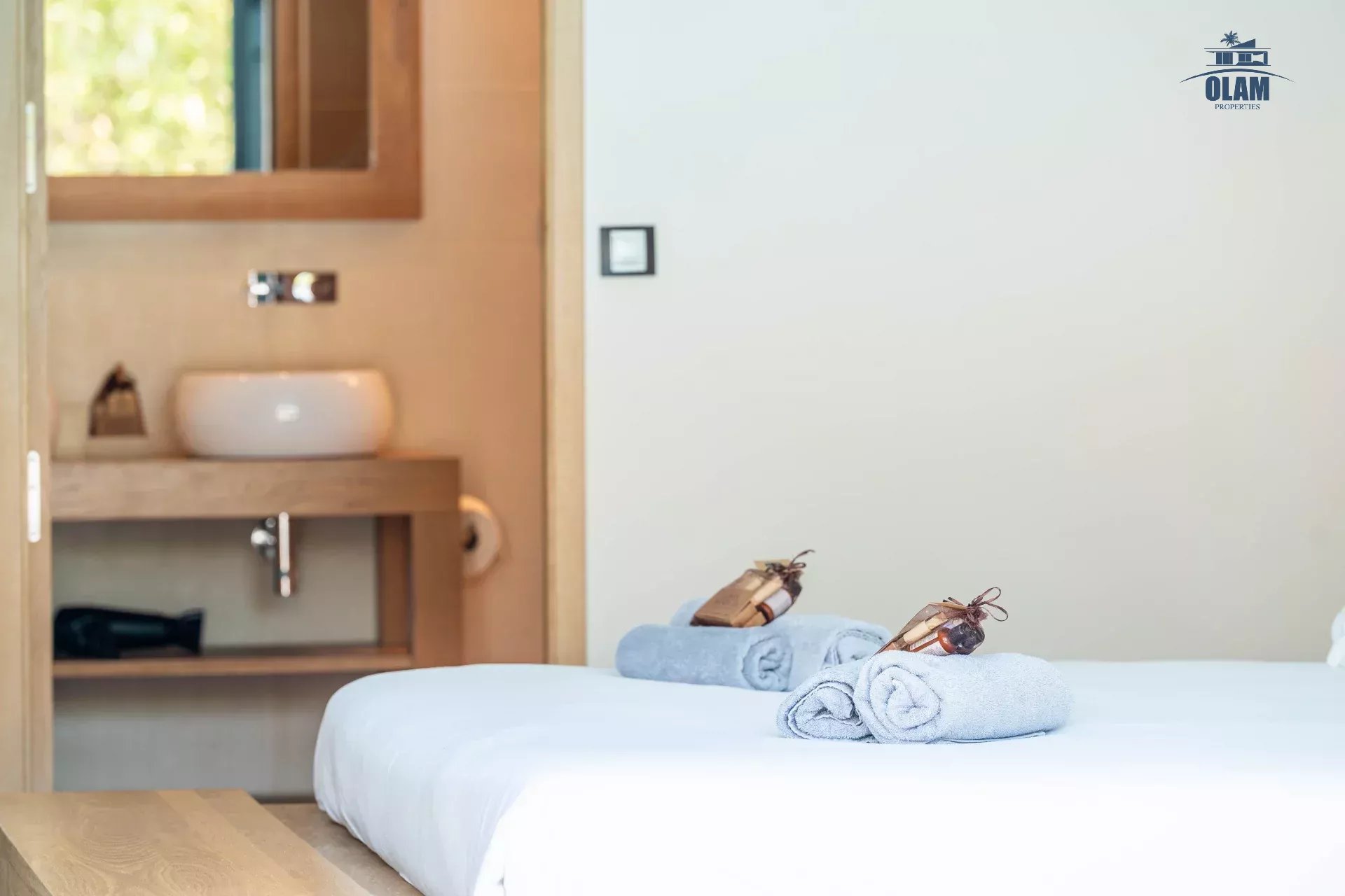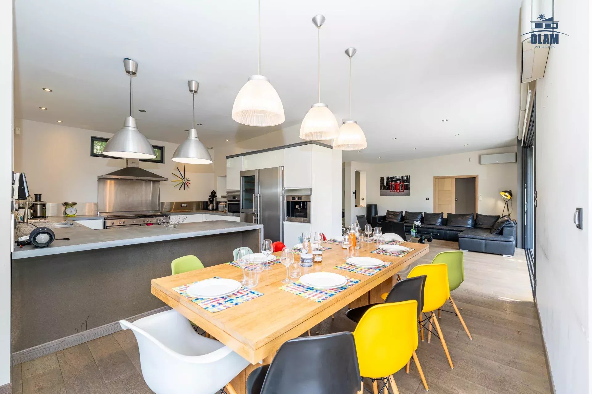 Pool level : junior bedroom #4 (2 single beds), junior bedroom #5 with double bed (180cm) with bathroom (bathtub) which can be shared with the junior, master bedroom #6 with double bed (180cm) with bathroom (bathtub), cinema room, laundry.