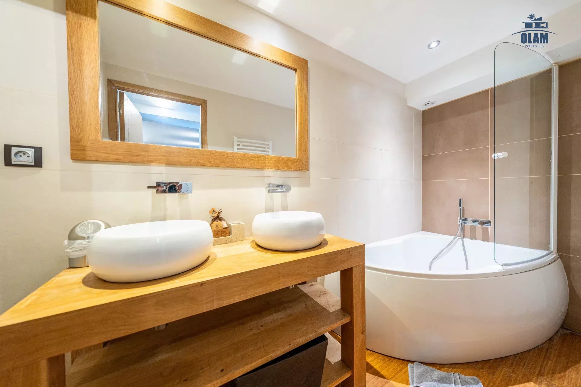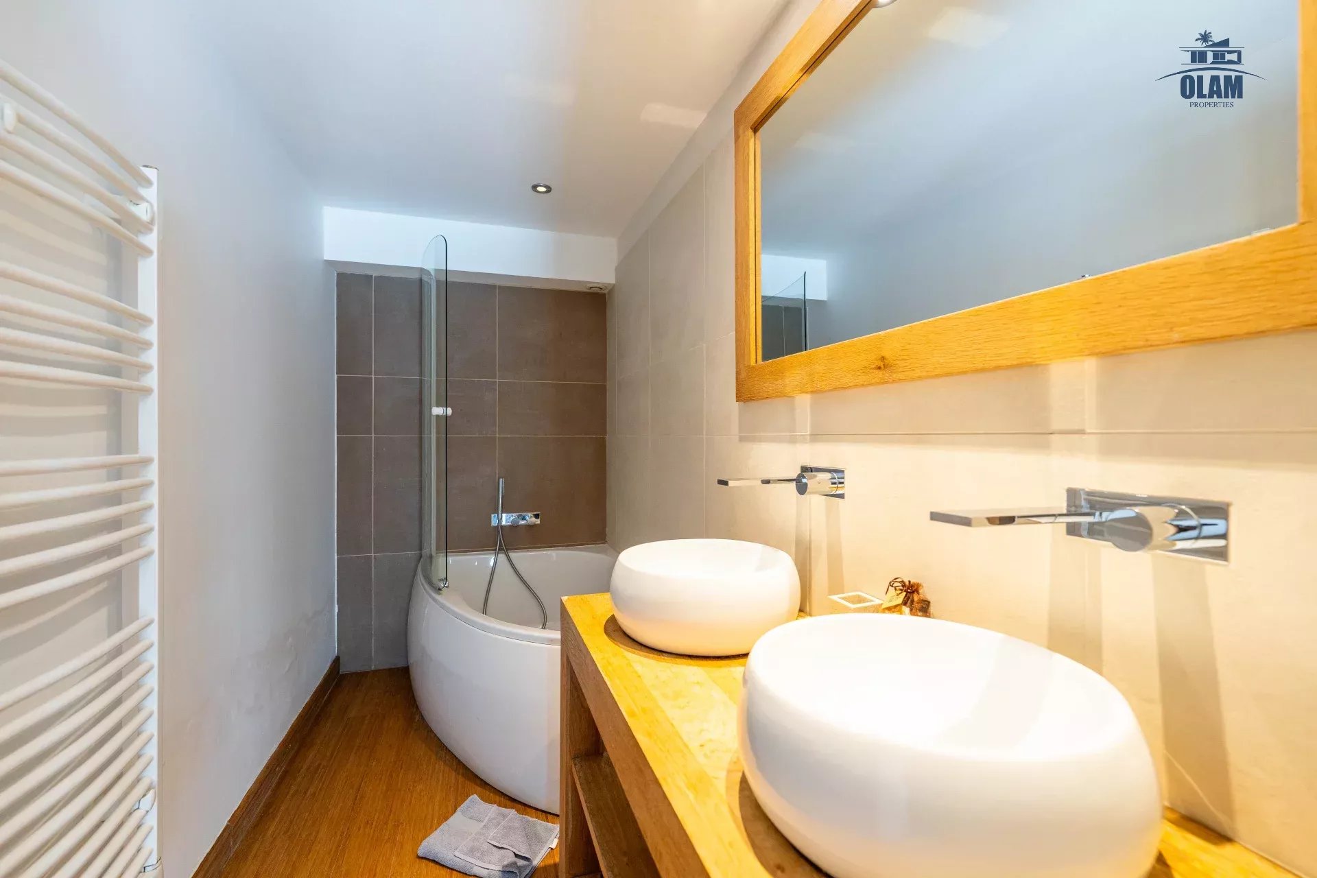Level 0 : Large living room, Us kitchen fully equipped, dinning space, guest toilets, junior bedroom #1 (2 single beds) with bathroom (bathtub), junior bedroom #2 with double bed (180cm) with bathroom (bathtub), master bedroom #3 with double bed (180cm) with bathroom (bathtub & shower).