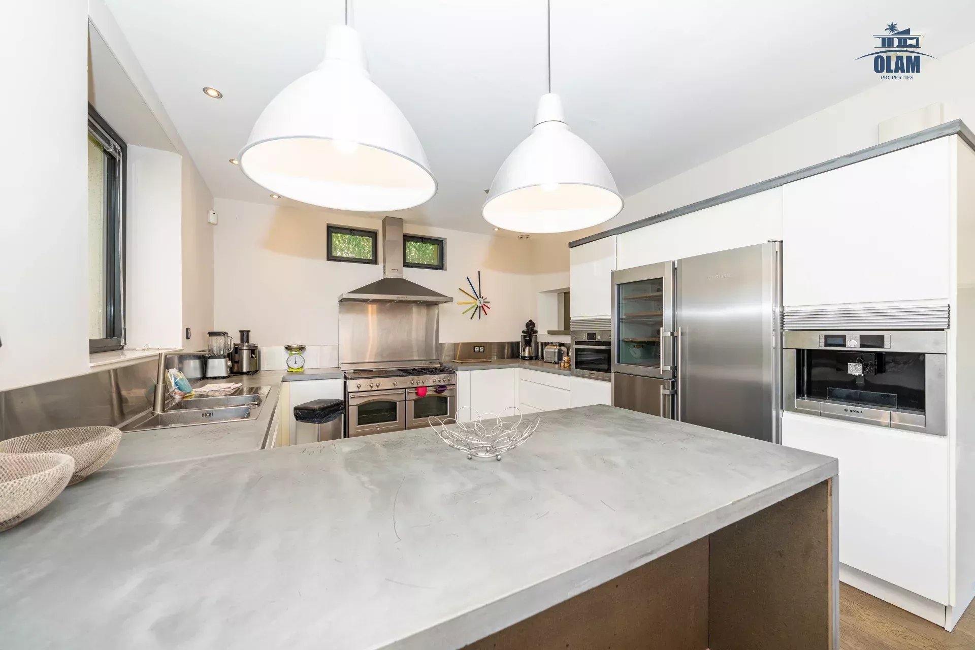 Luxury villa of 300sq meters, including 6 bedrooms, 5 bathrooms, living room, guest toilets, fully equipped US kitchen (oven, microwaves, dish washer,US fridge,...), laundry with washing machine, dryer, cinema room (TV, DVD), big terrace with furnitures, private pool.