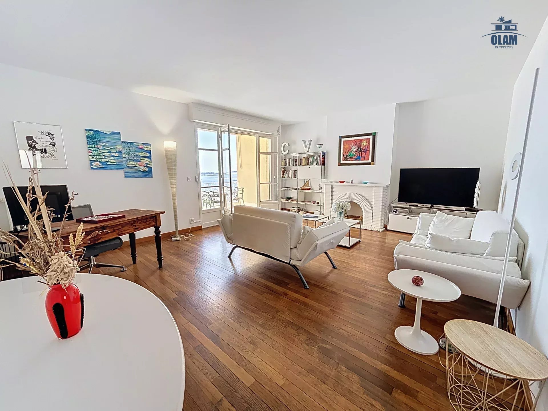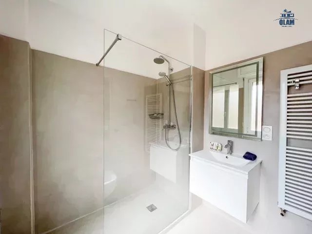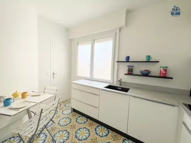 L'appartement fait partie d'une jolie résidence dans le quartier historique de Cannes avec un accès proche de la plage. L'appartement est composé d'une grande pièce de vie lumineuse pièce avec salon, cuisine séparée entièrement équipée avec de l'électroménager high tech, de deux chambres, de deux salles de douche et wc. Une magnifique terrasse avec vue mer complète le logement.