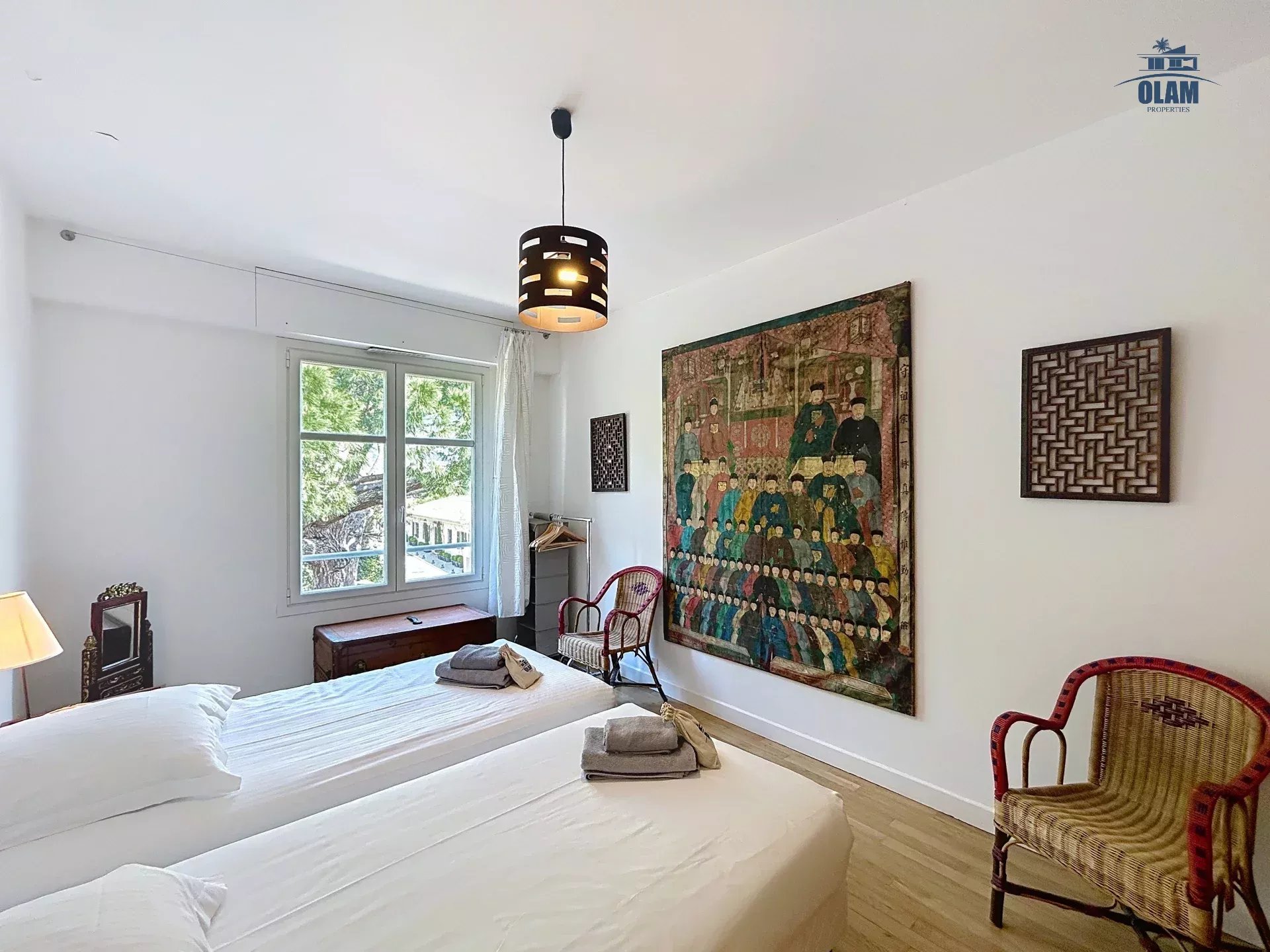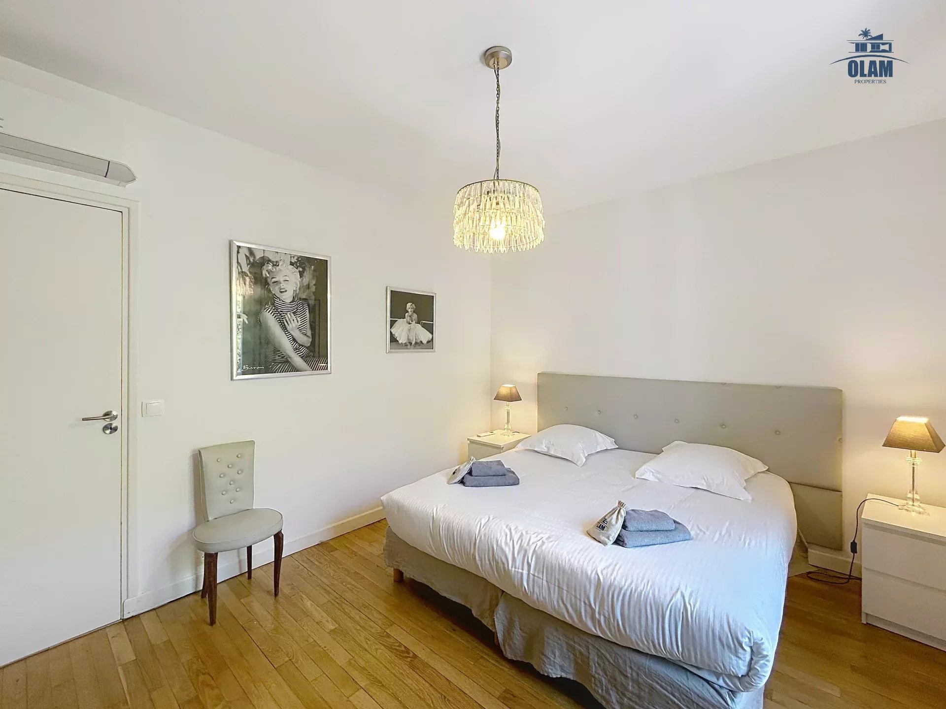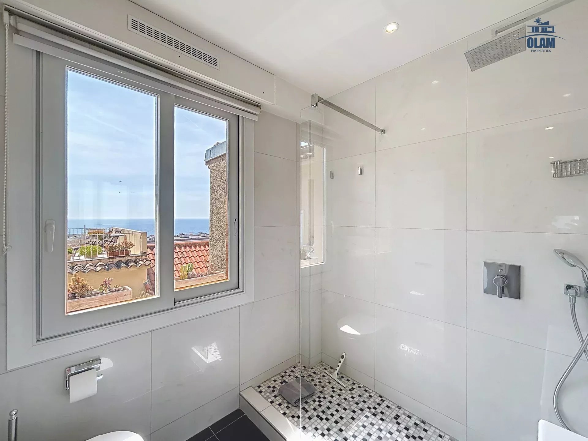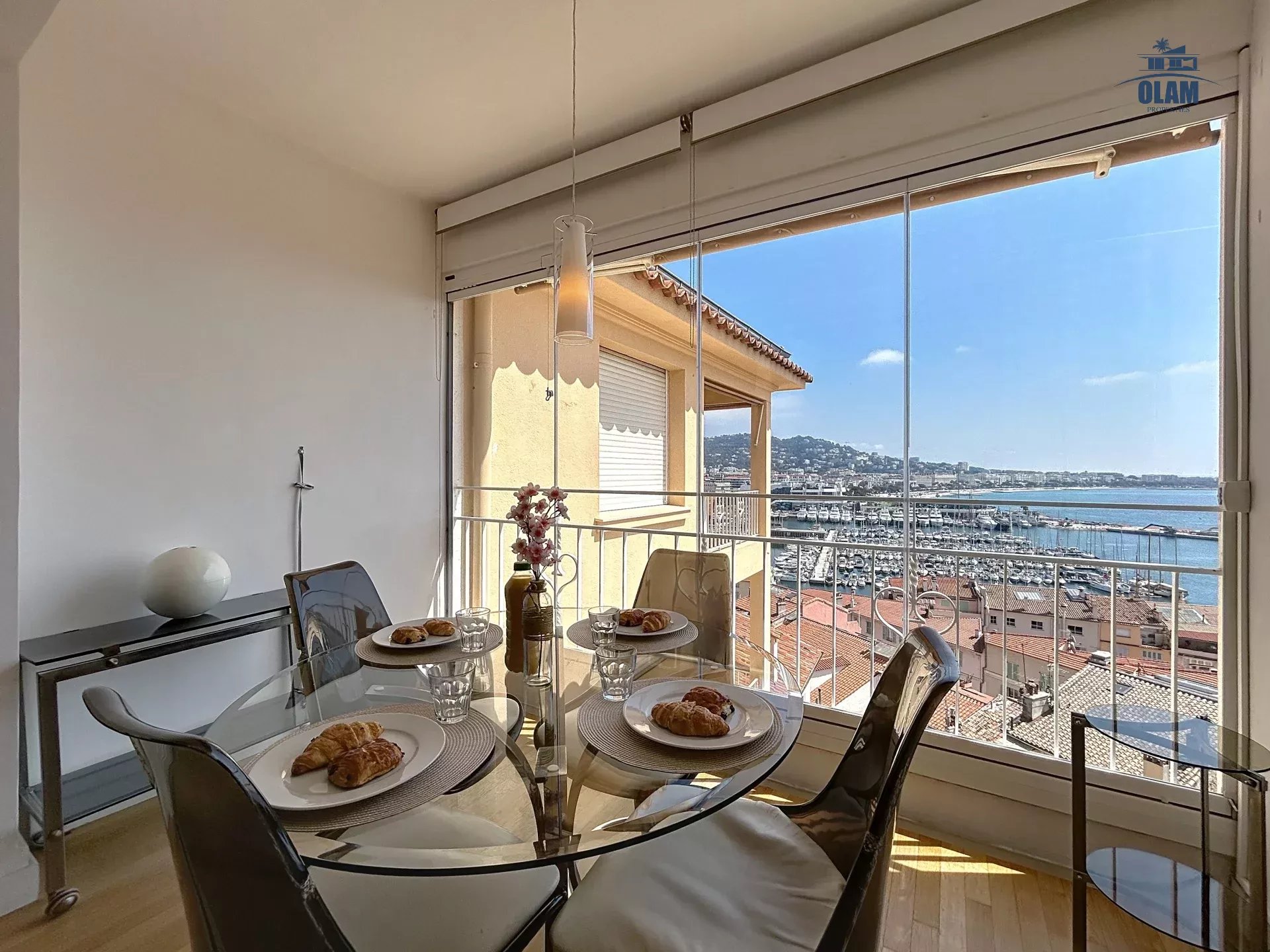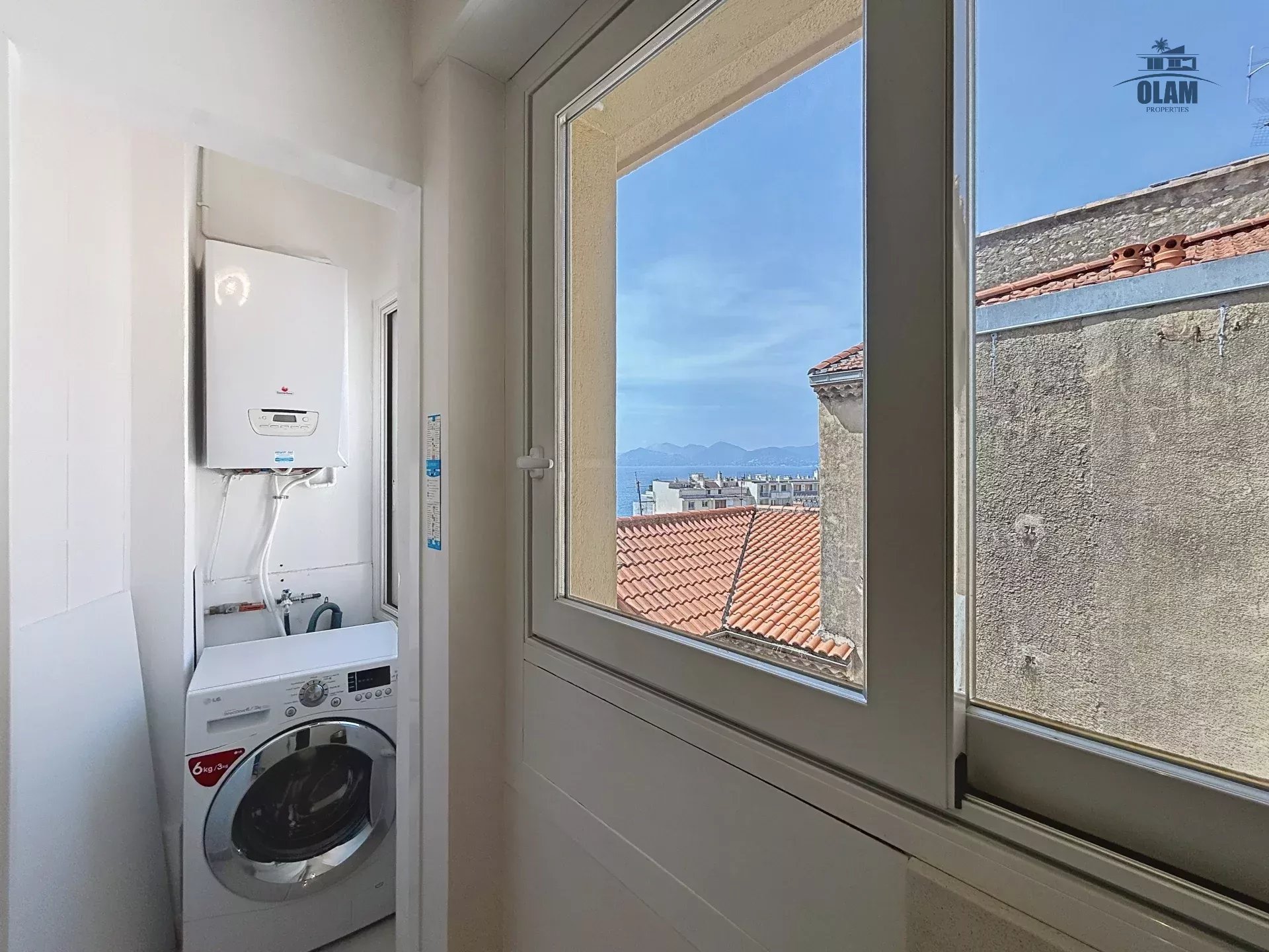 L'appartement fait partie d'une jolie petite résidence dans le quartier historique de Cannes avec un accès proche de la plage. L'appartement est composé d'une grande pièce de vie lumineuse pièce avec salon, d'une salle à manger, cuisine ouverte entièrement équipée avec de l'électroménager high tech, d'un wc invités, de deux chambres, de deux salles de douche et wc. Une magnifique terrasse avec vue mer complète le logement.