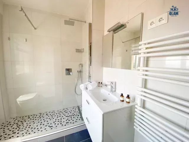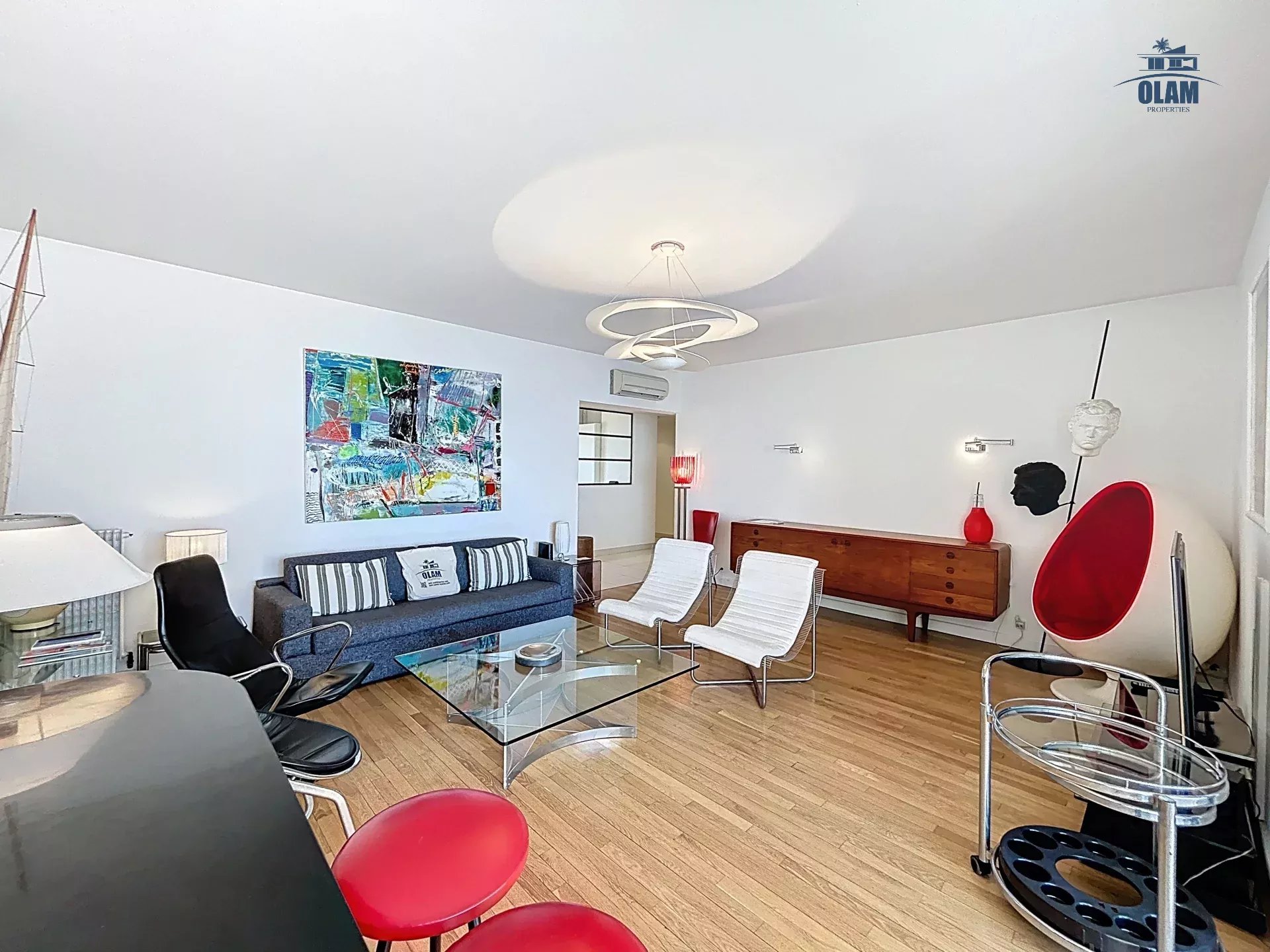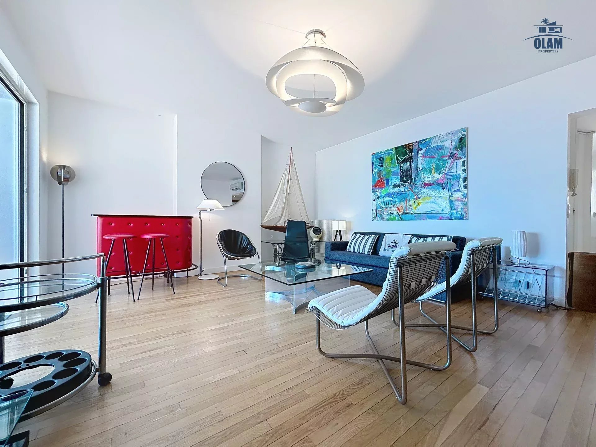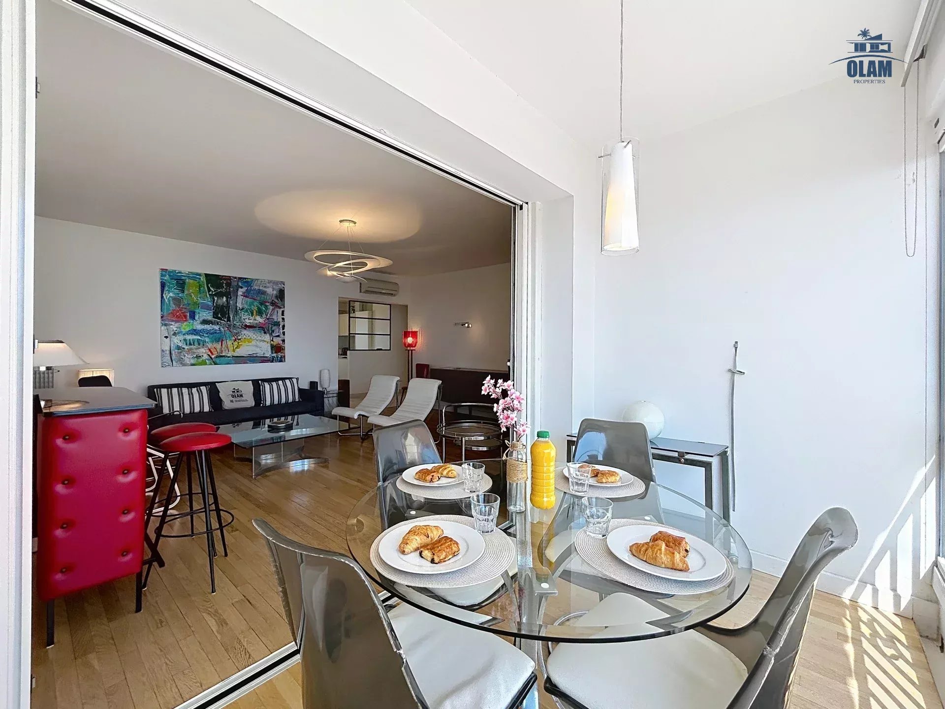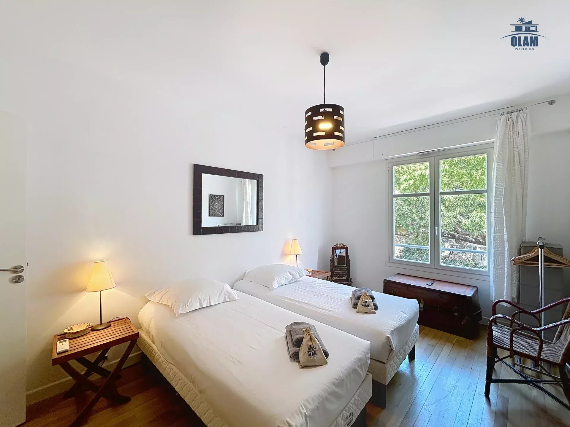 L'appartement fait partie d'une jolie petite résidence dans le quartier historique de Cannes avec un accès proche de la plage. L'appartement est composé d'une grande pièce de vie lumineuse pièce avec salon, d'une salle à manger, cuisine ouverte entièrement équipée avec de l'électroménager high tech, d'un wc invités, de deux chambres, de deux salles de douche et wc. Une magnifique terrasse avec vue mer complète le logement.