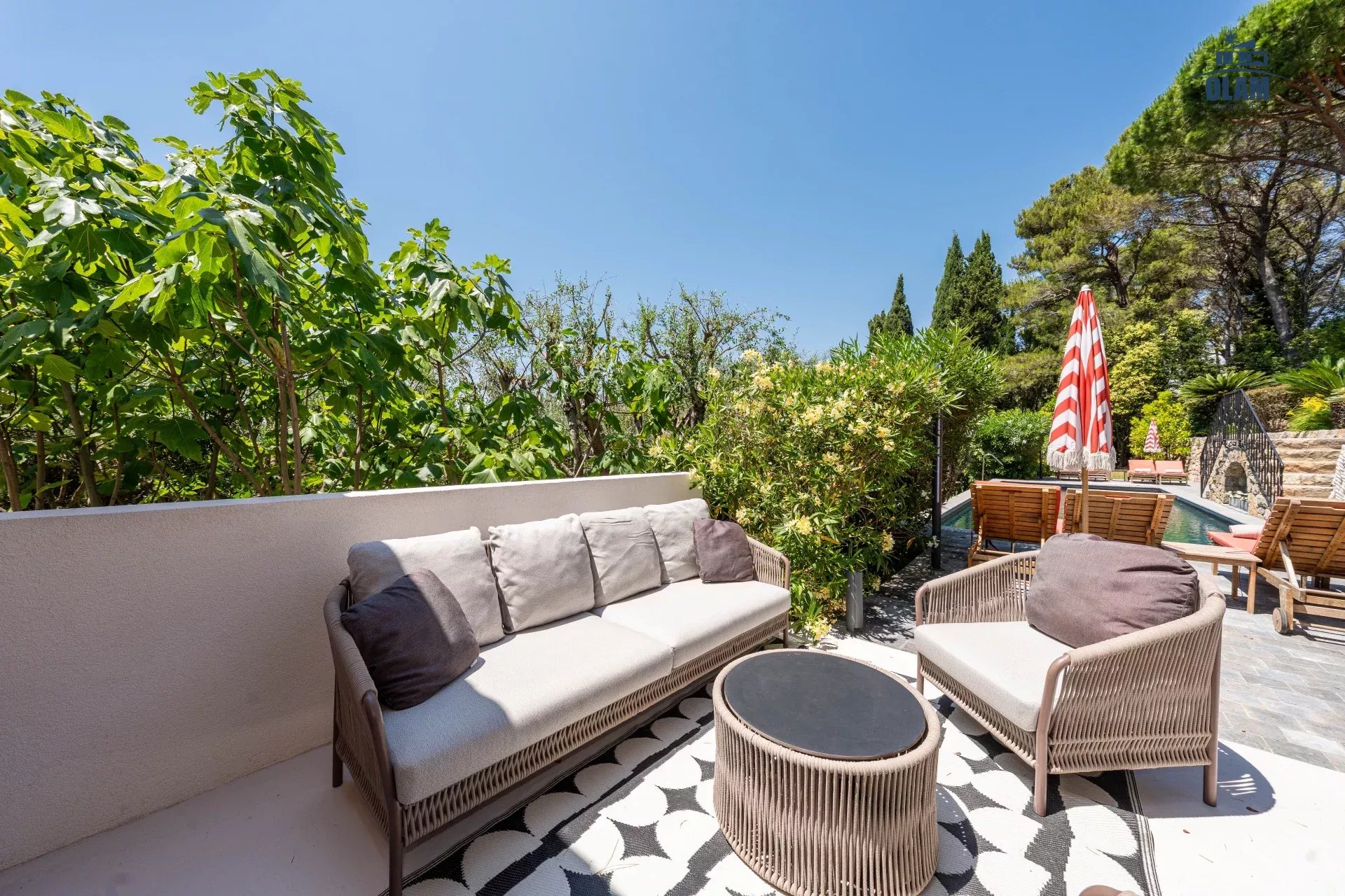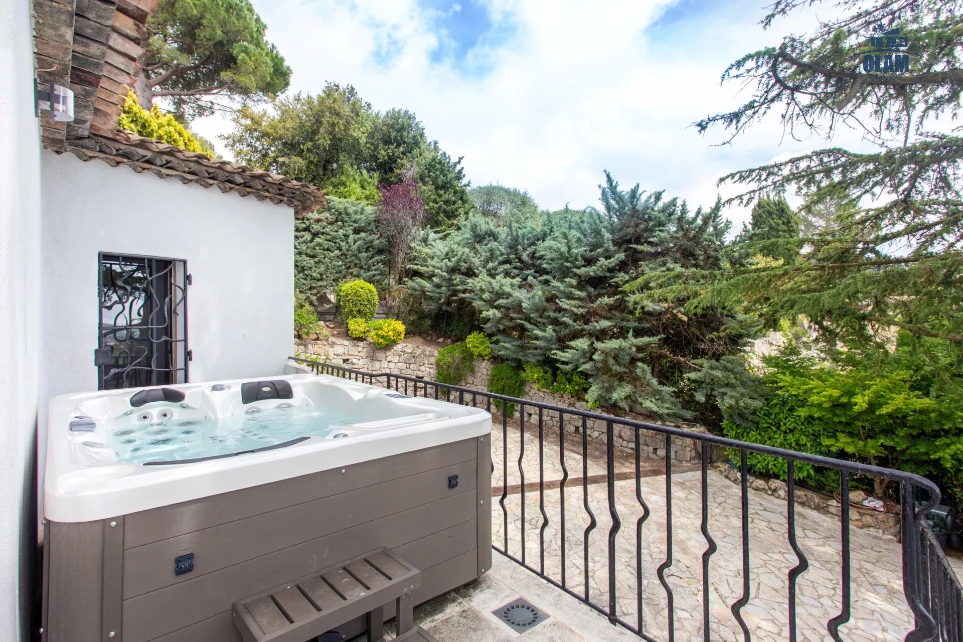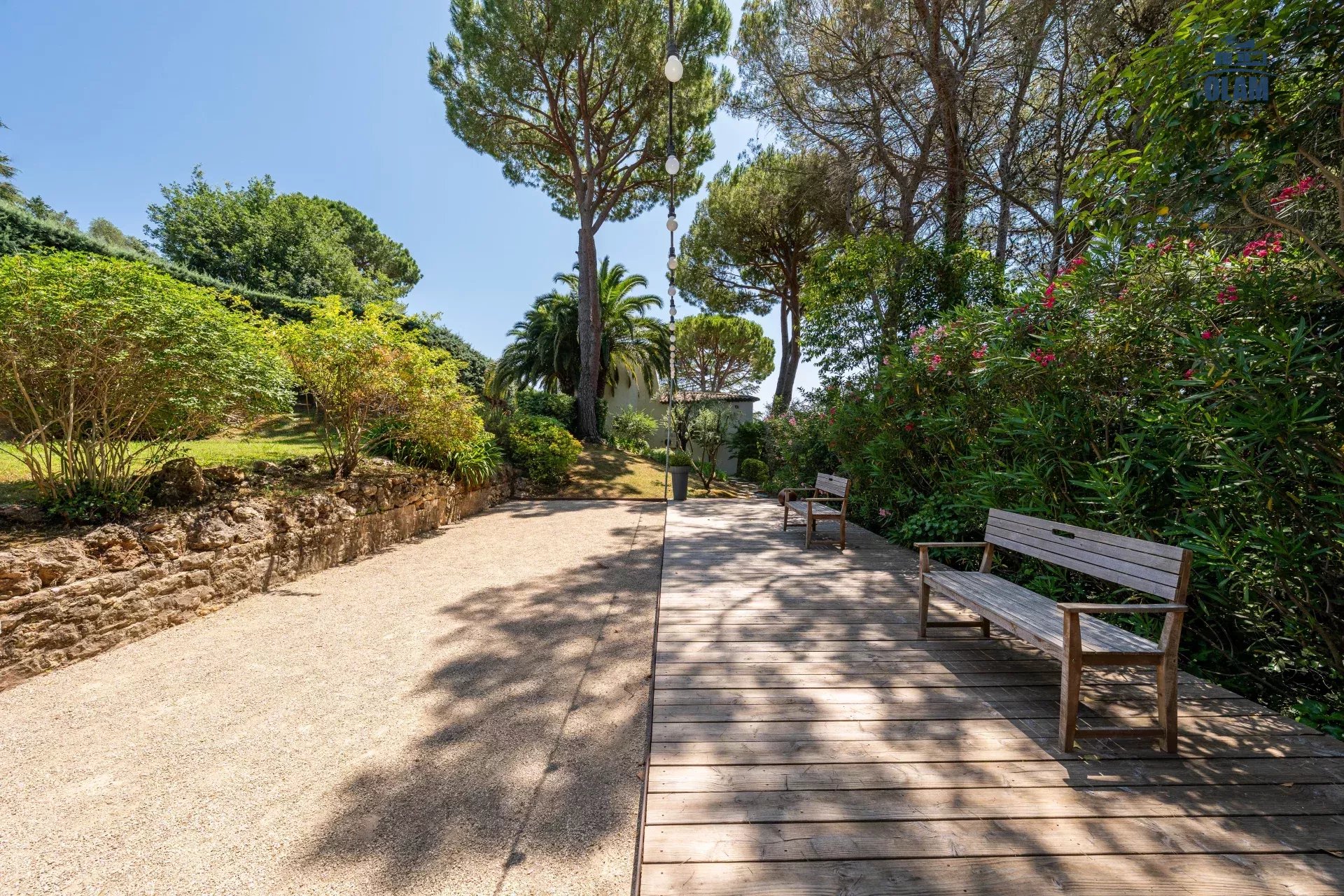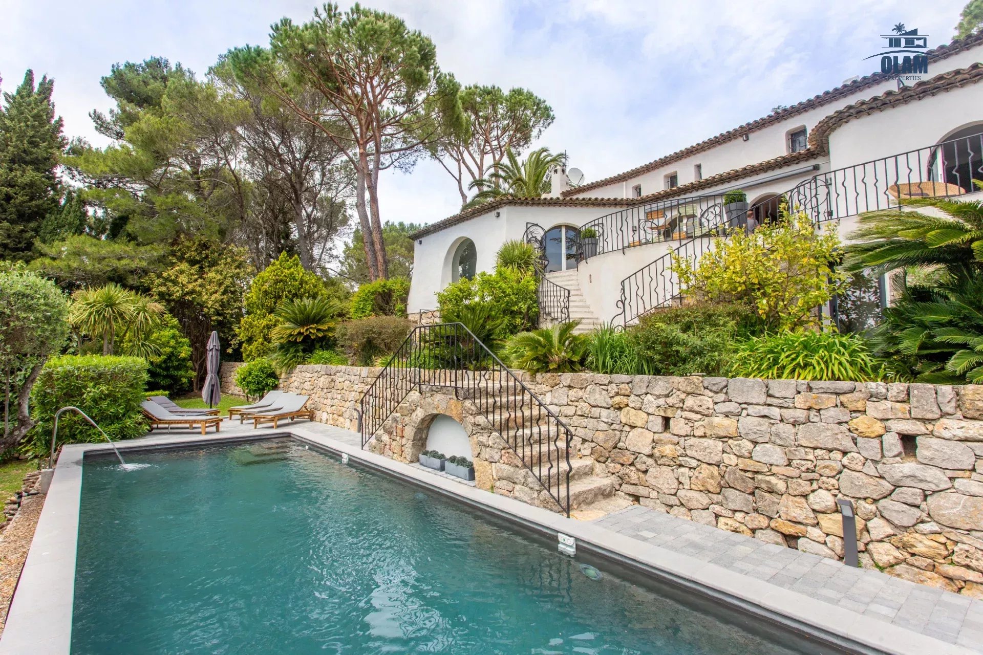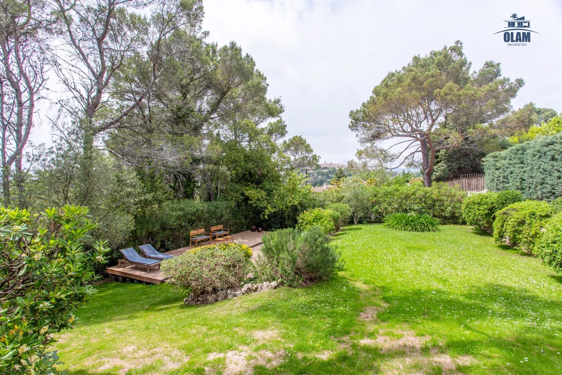 Dans un domaine privé, à proximité du village de Mougins (3mn en voiture), villa d’environ 250m2 composée comme suit :