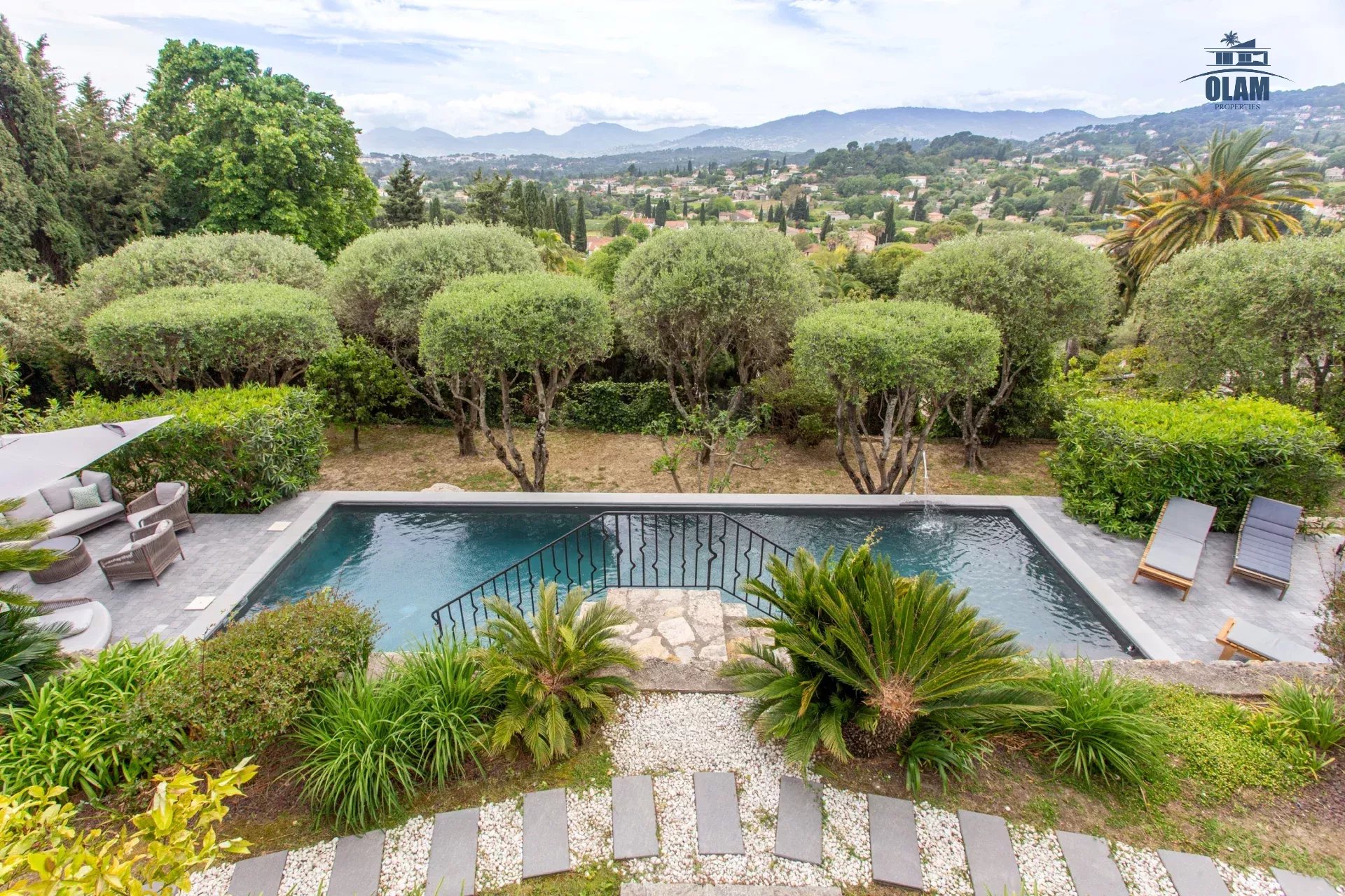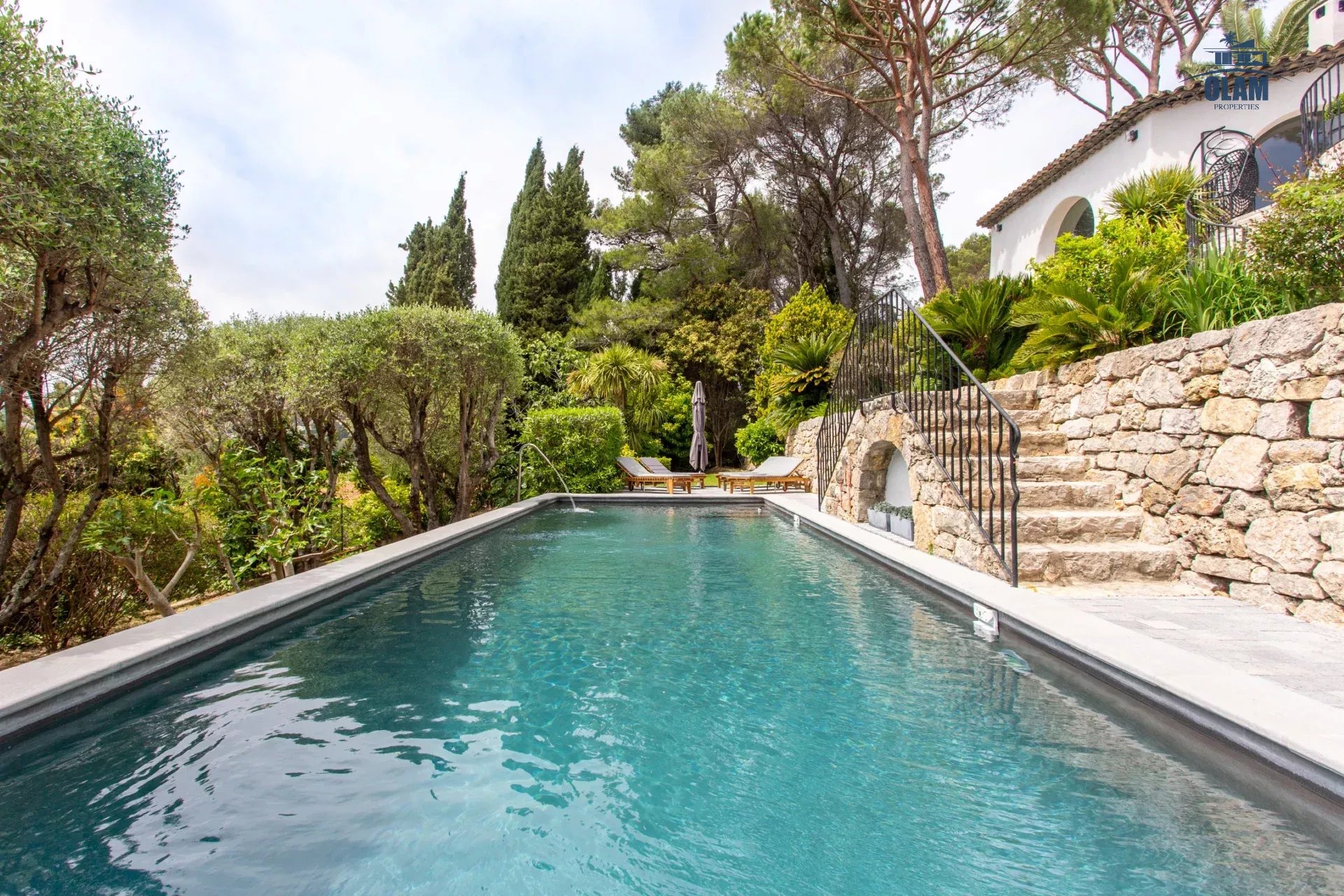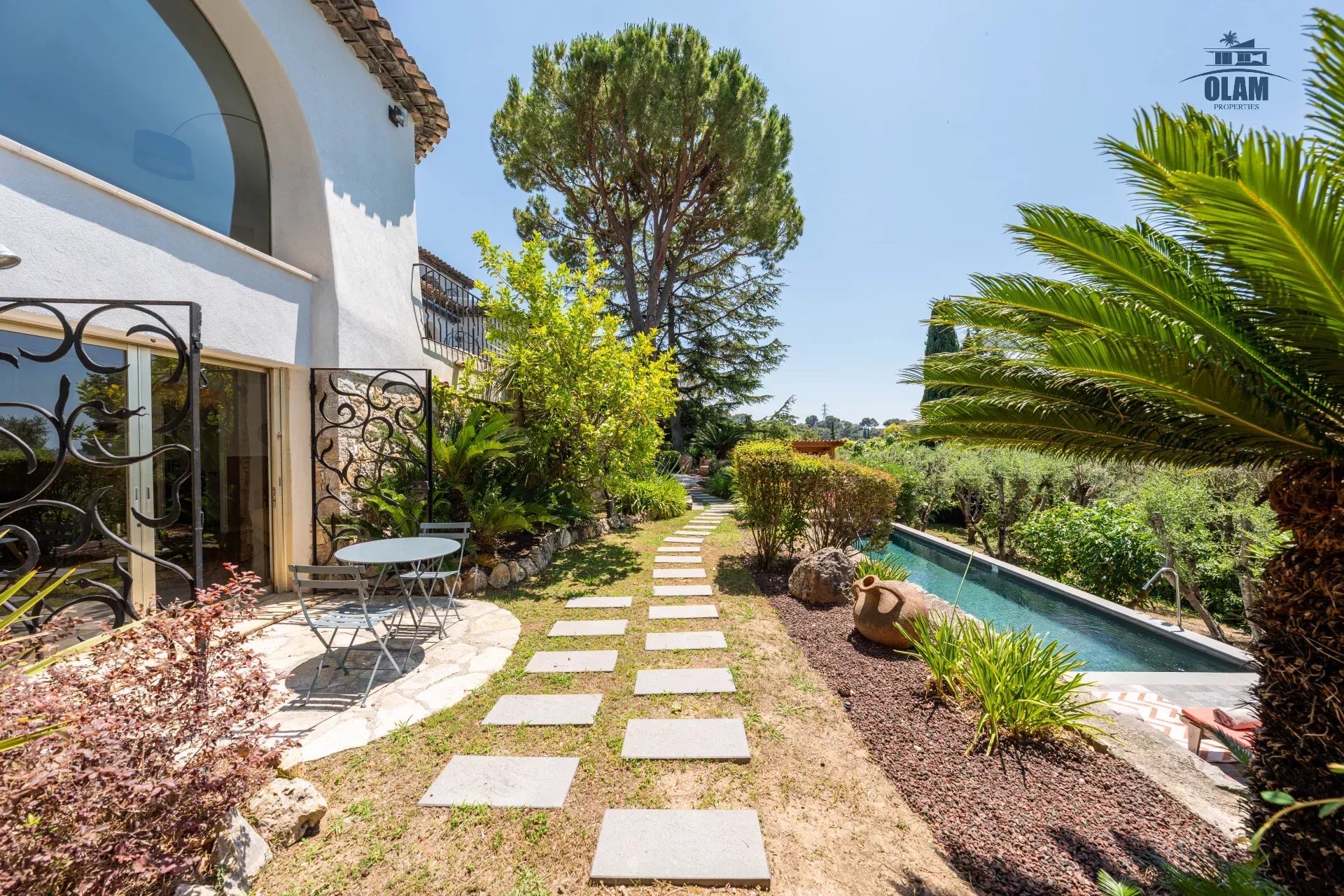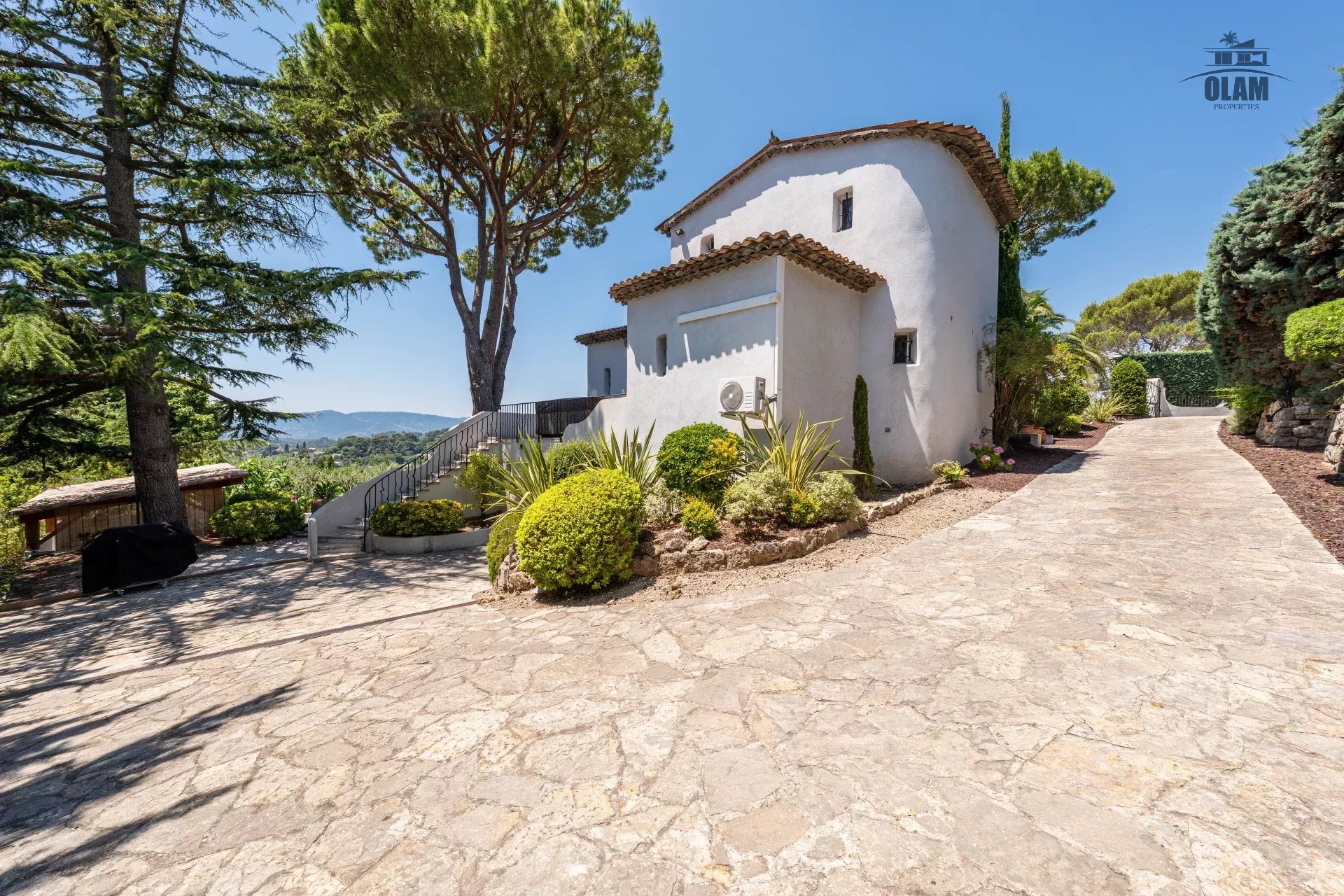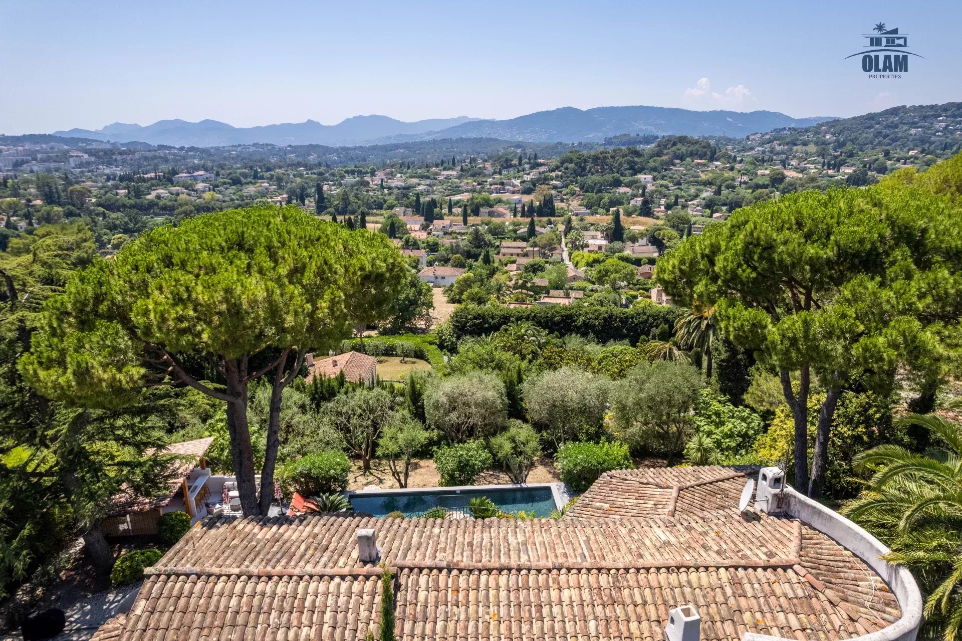 Dans un domaine privé, à proximité du village de Mougins (3mn en voiture), villa d’environ 250m2 composée comme suit :