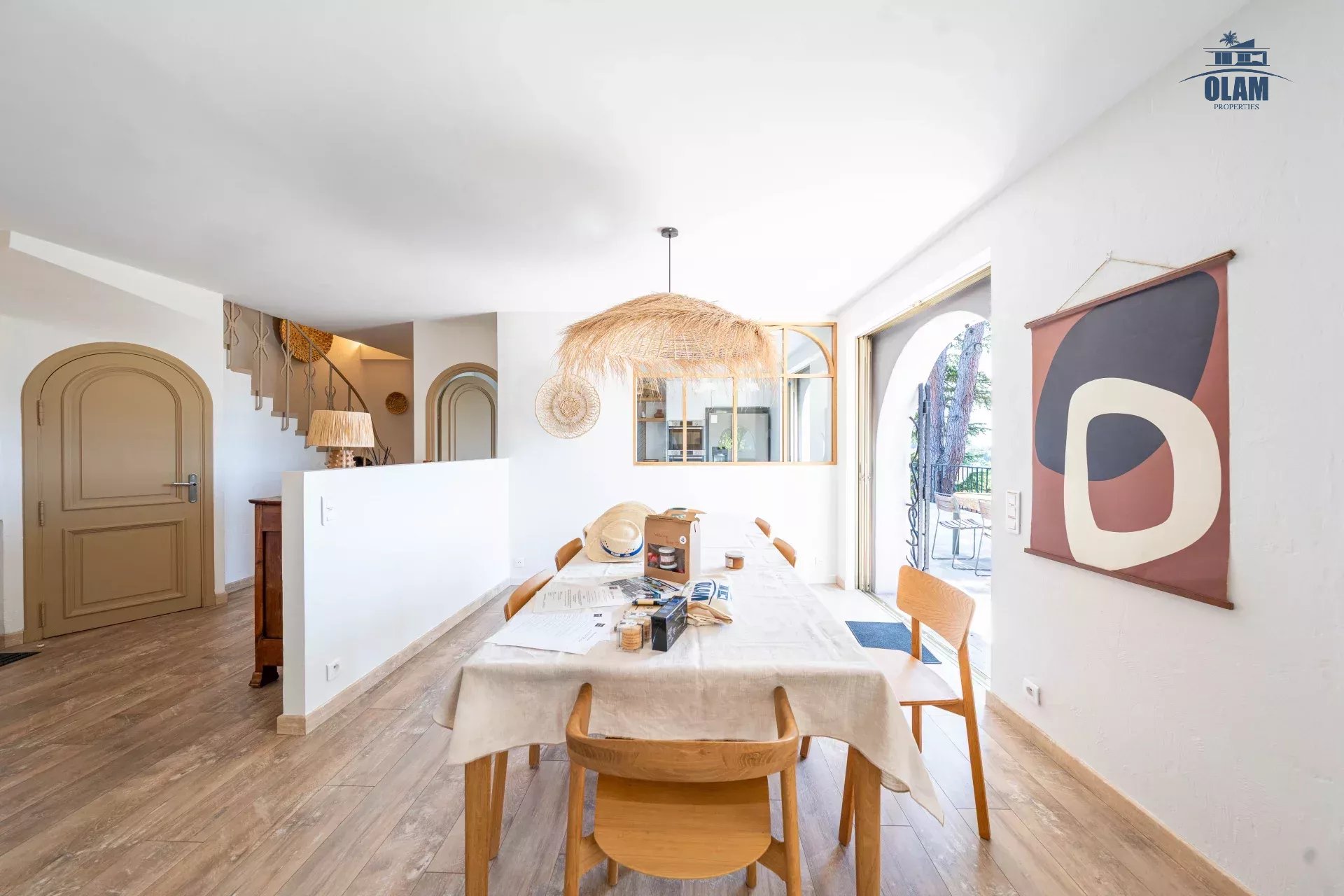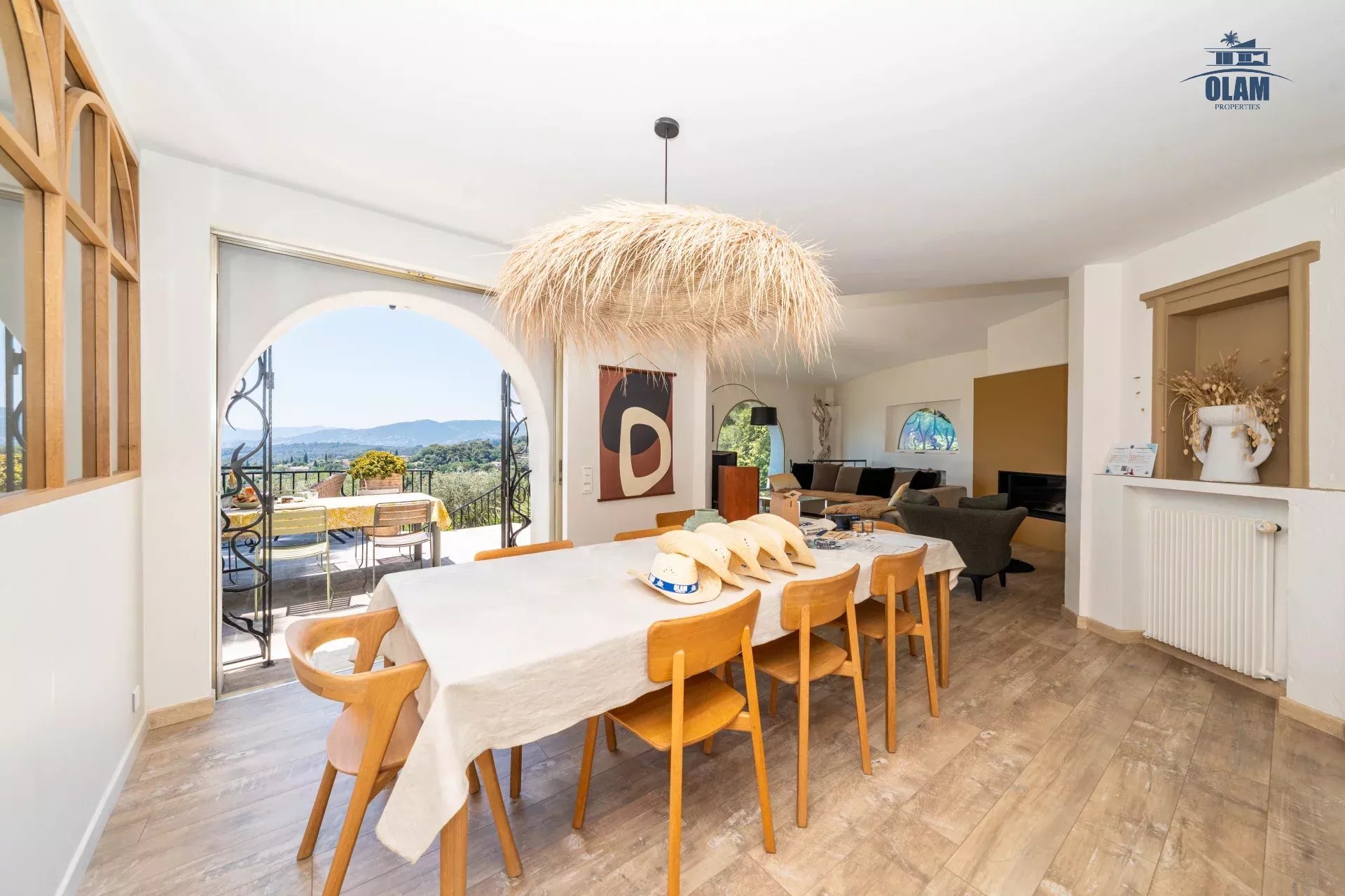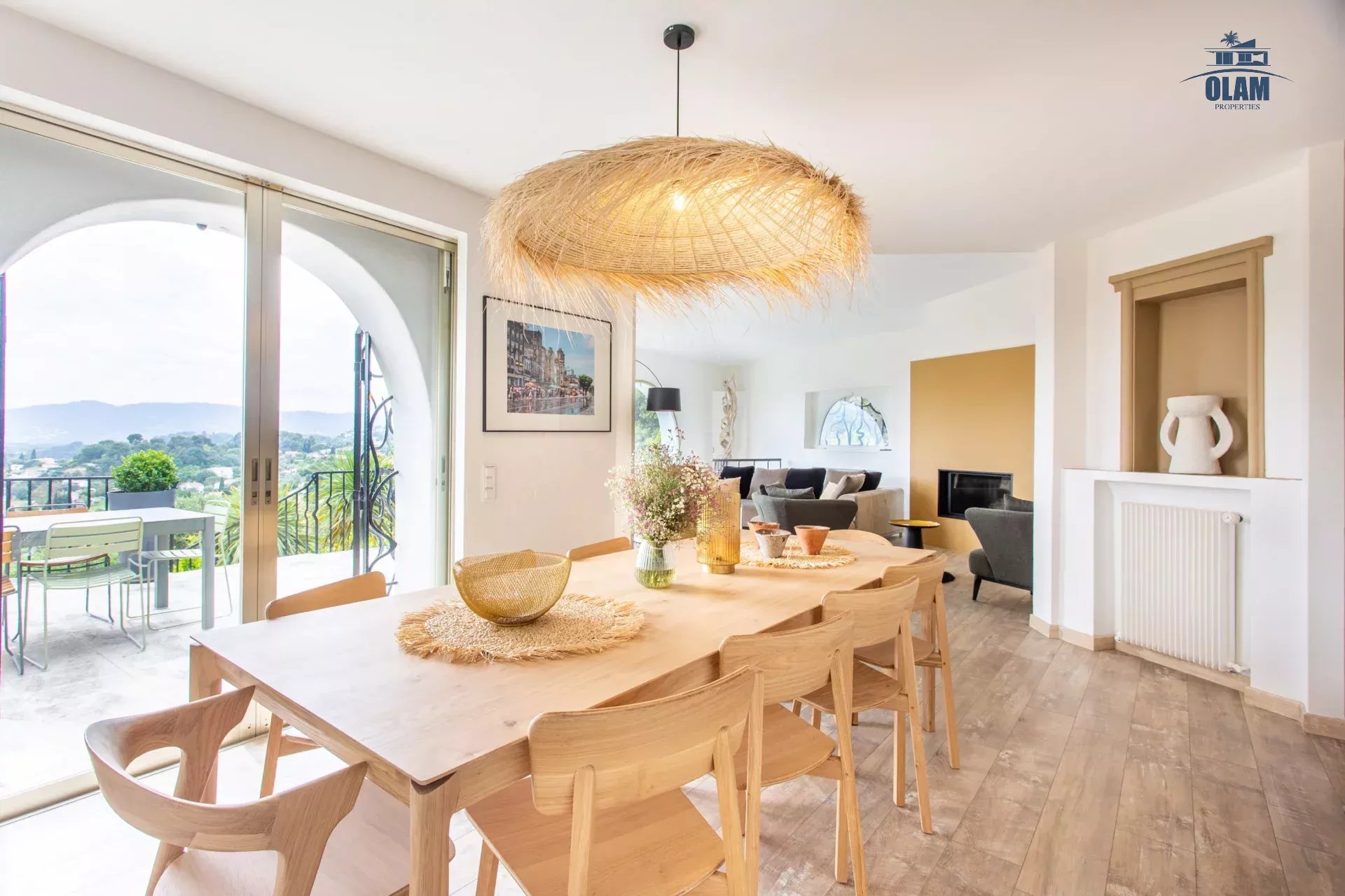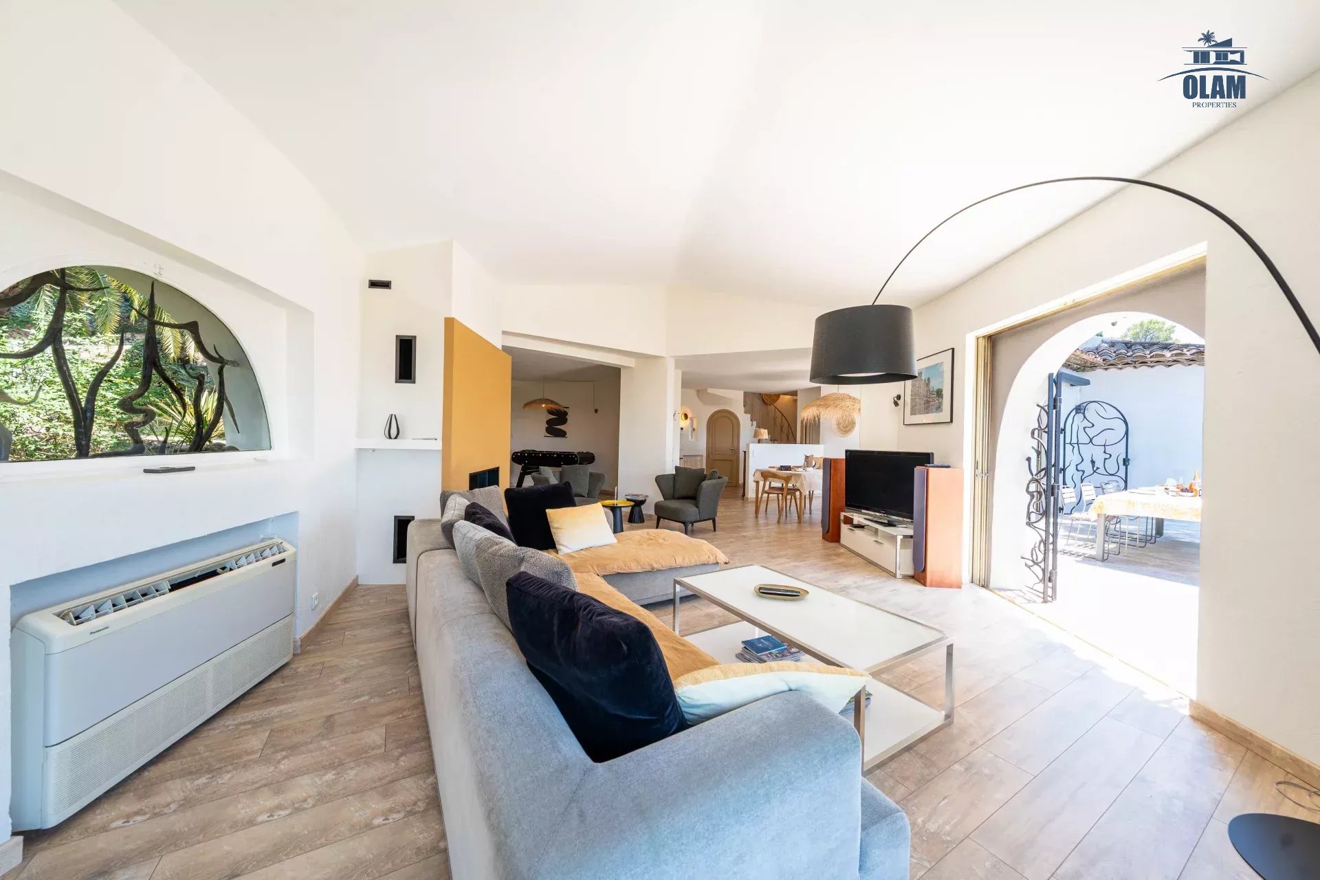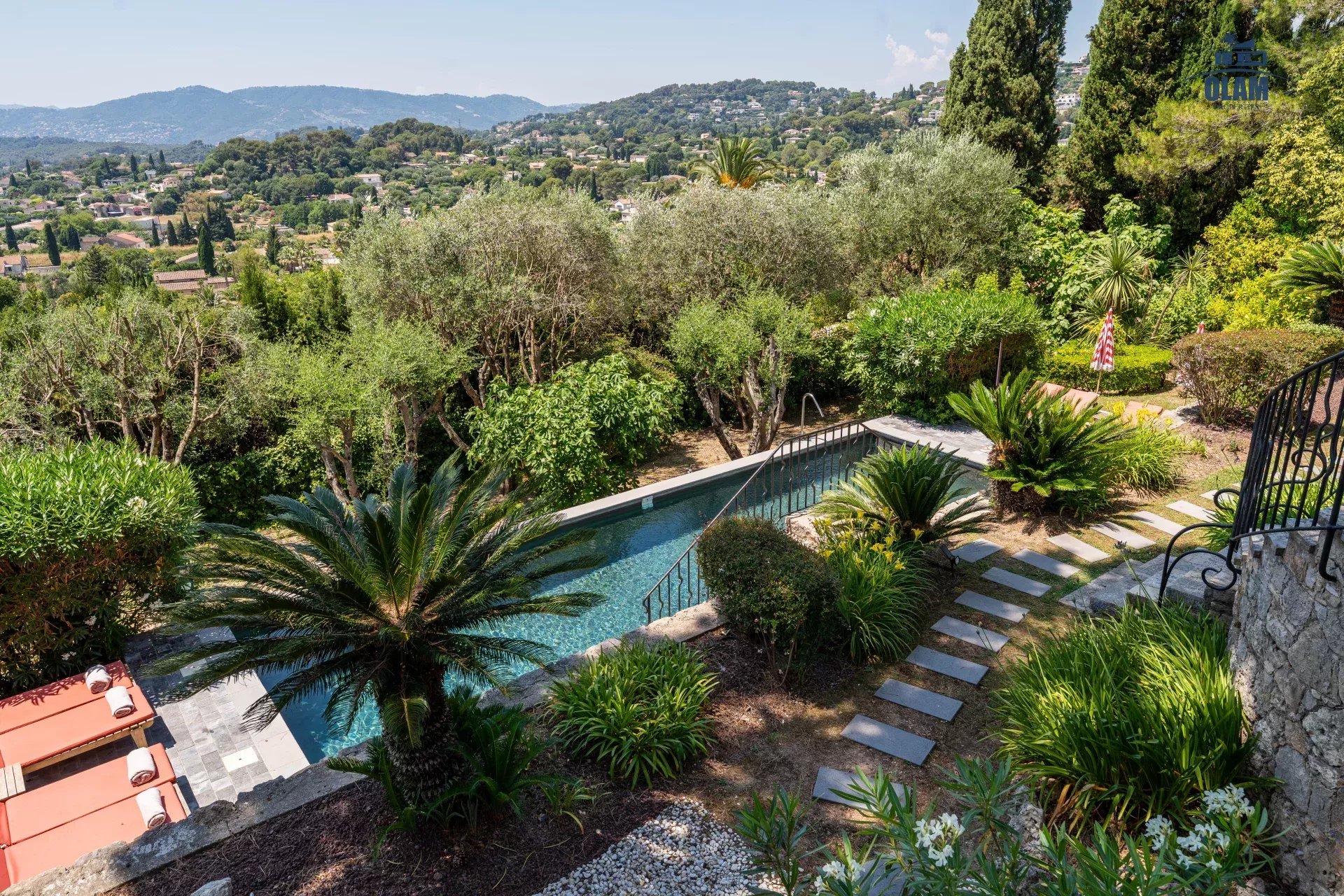 Dans un domaine privé, à proximité du village de Mougins (3mn en voiture), villa d’environ 250m2 composée comme suit :