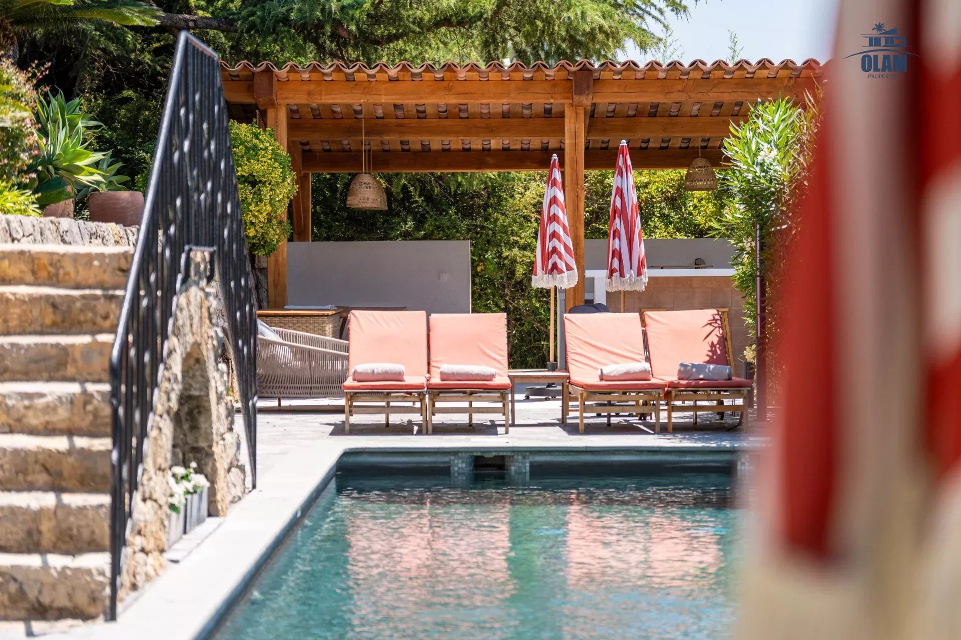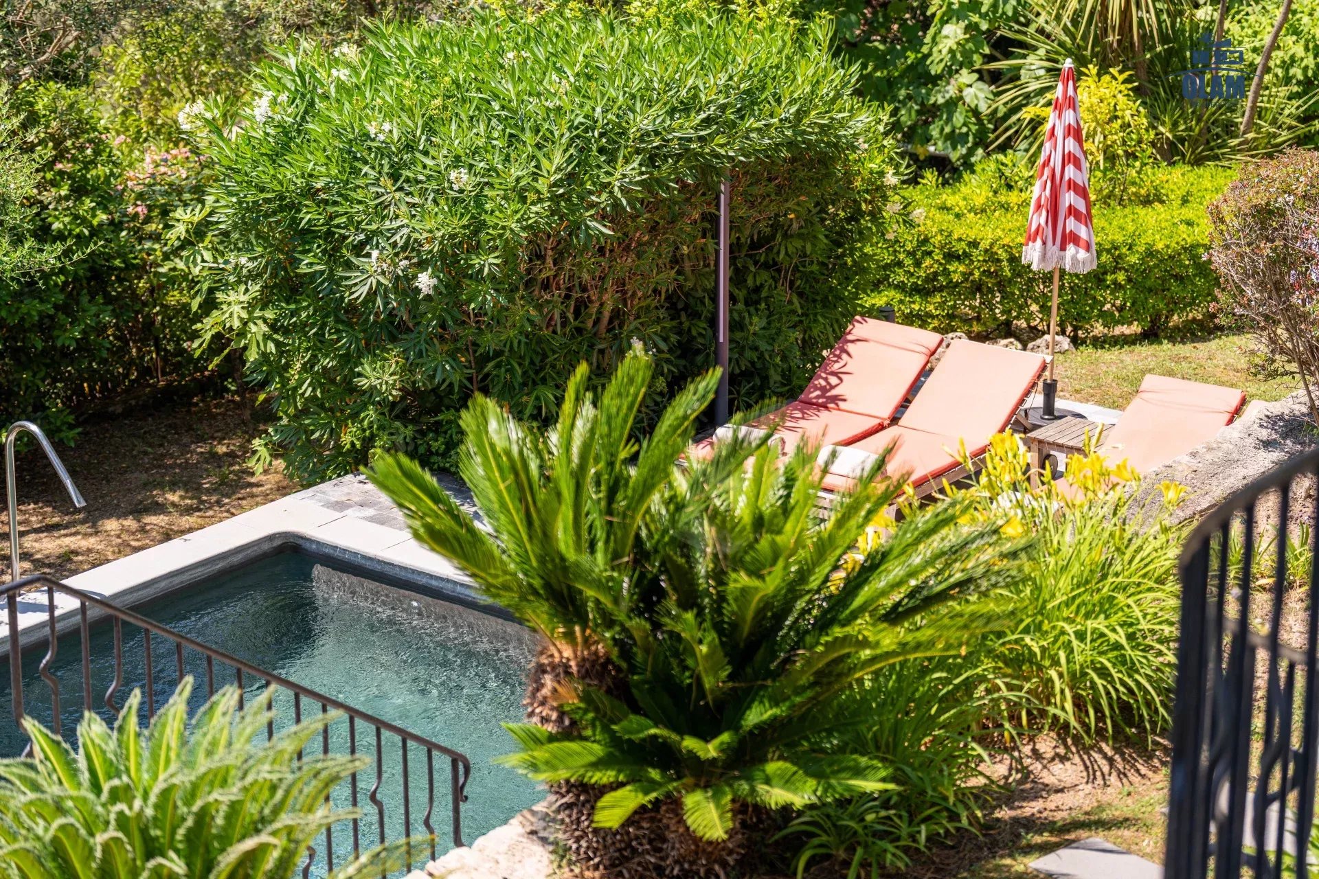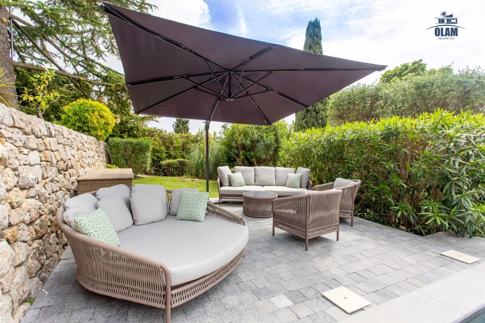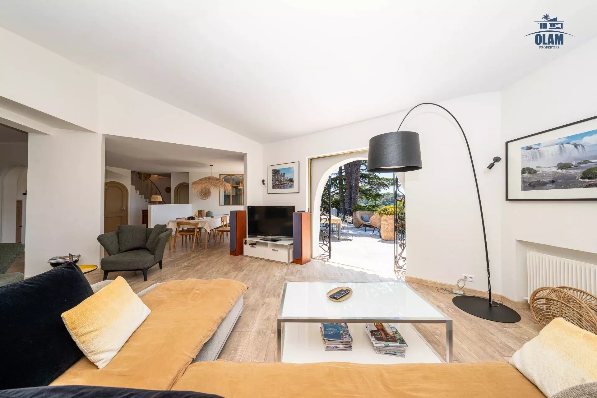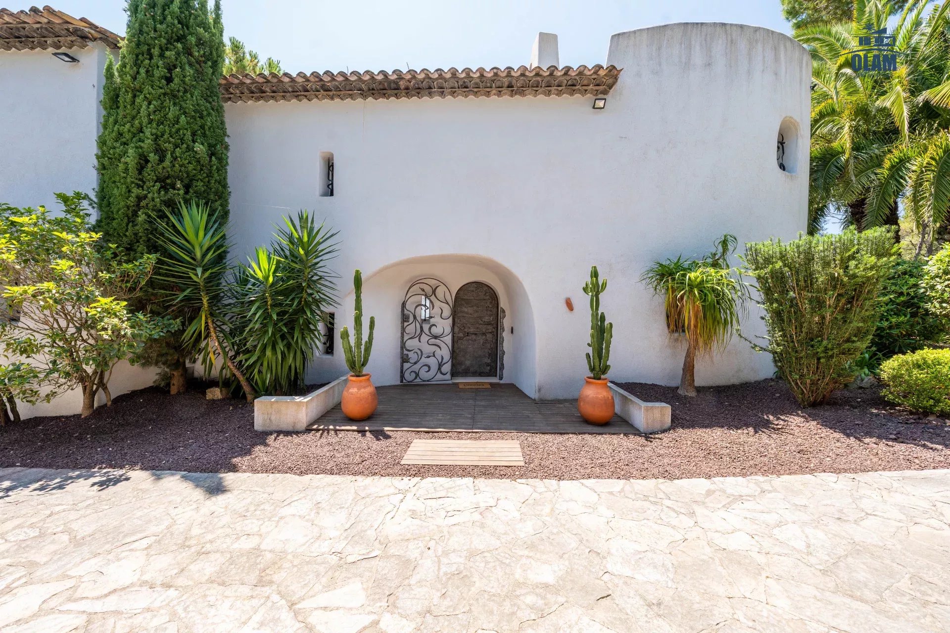 Dans un domaine privé, à proximité du village de Mougins (3mn en voiture), villa d’environ 250m2 composée comme suit :