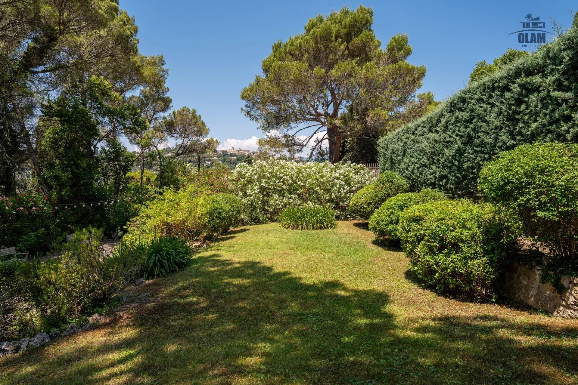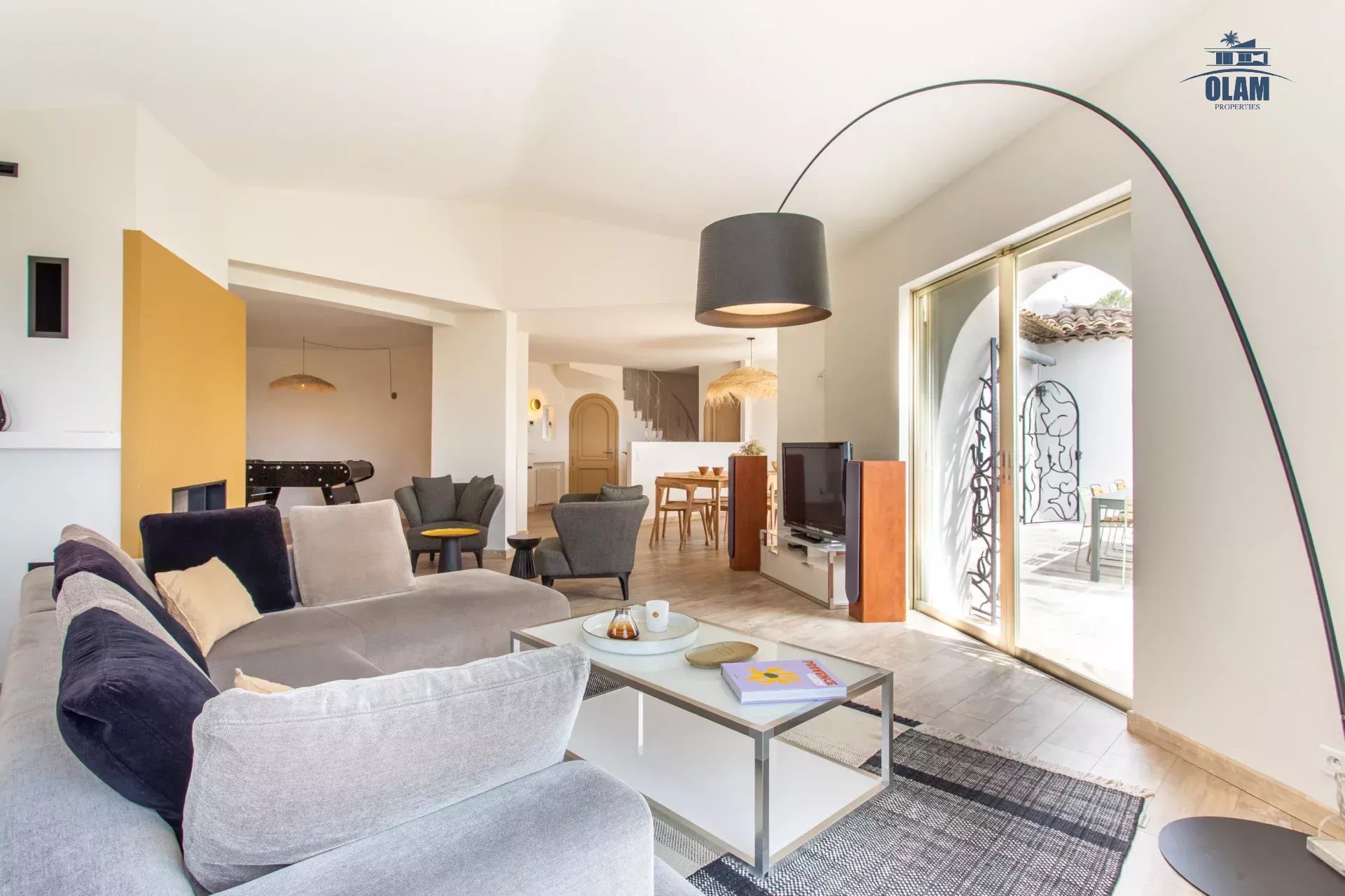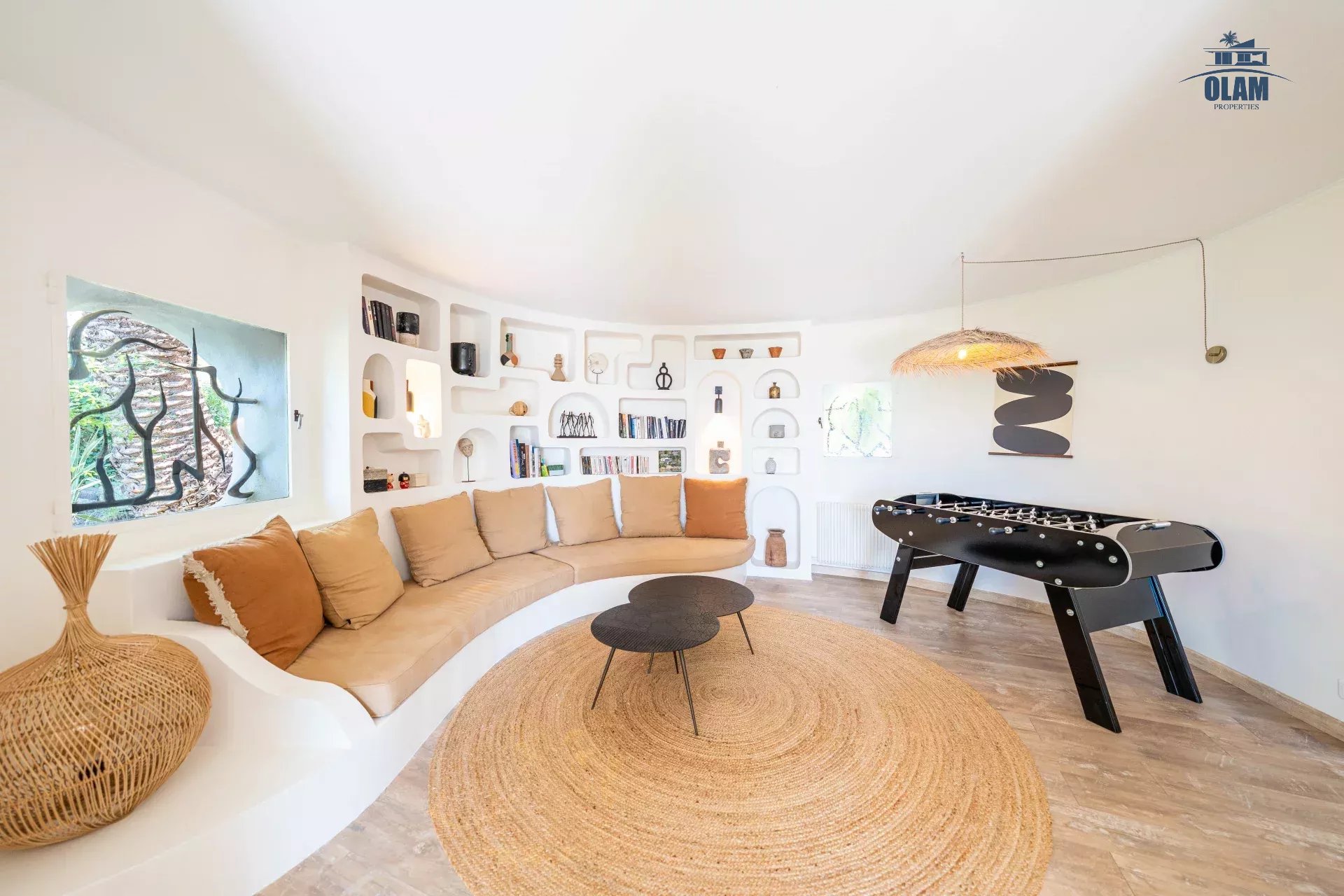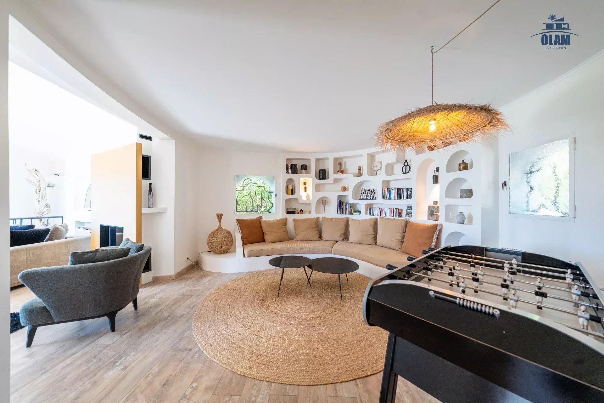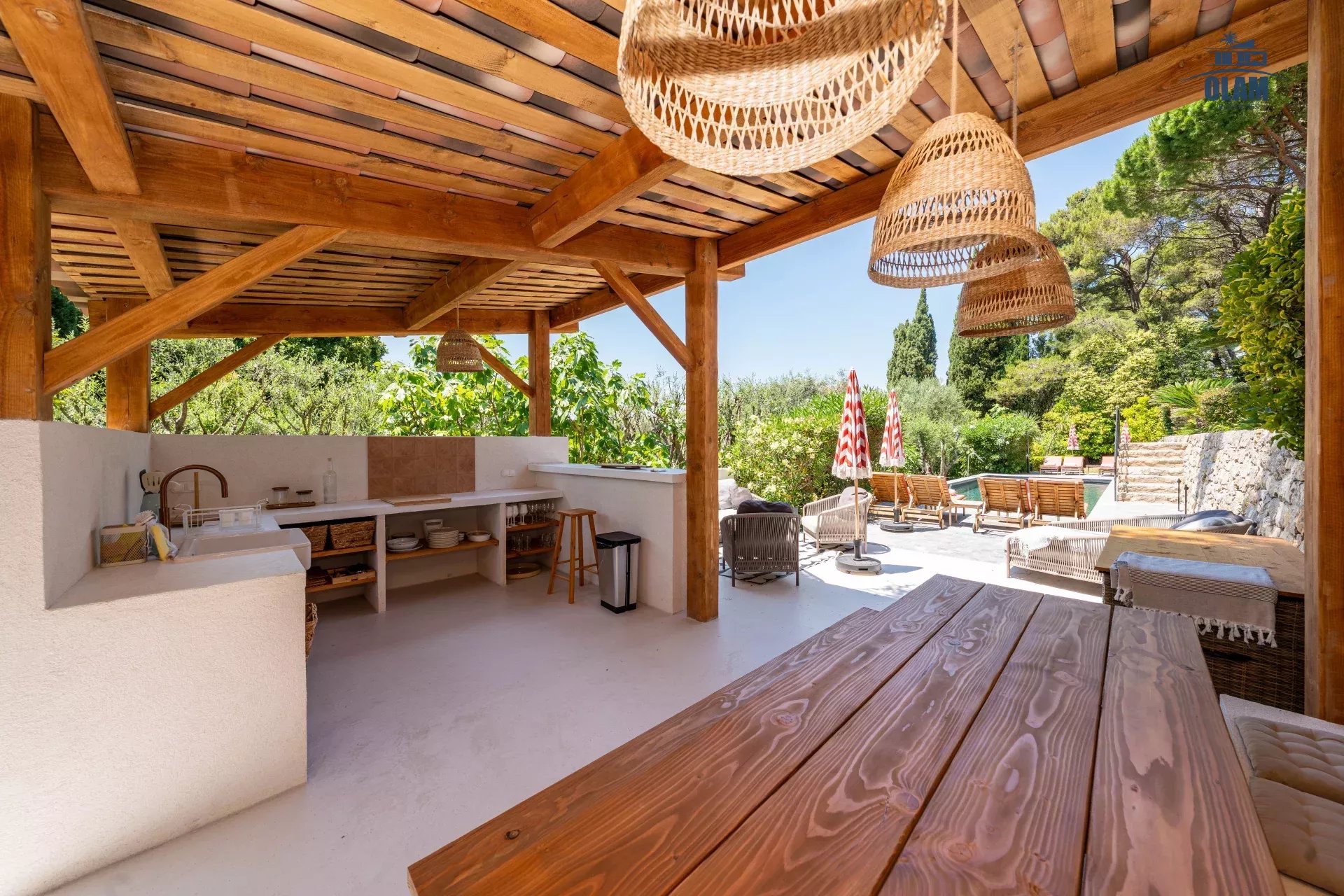 Dans un domaine privé, à proximité du village de Mougins (3mn en voiture), villa d’environ 250m2 composée comme suit :